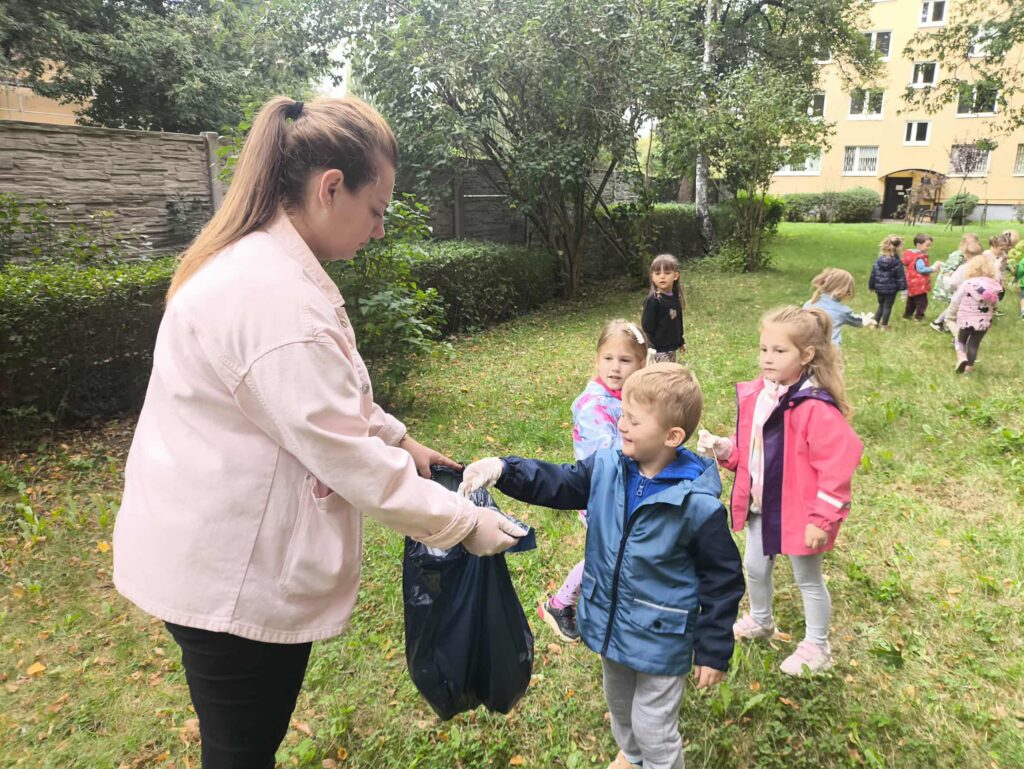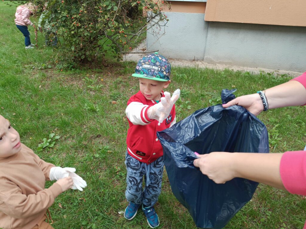 22 września dzieci z naszego przedszkola już po raz kolejny wzięły udział w Akcji Sprzątanie świata – Polska! W tym roku sprzątaliśmy po hasłem: ,,W NATURĘ Z KULTURĄ”. Lecz zanim wyruszyliśmy na sprzątanie, wszystkie dzieci miały do wykonania zadania specjalne. Każda grupa z zadaniami poradziła sobie znakomicie. Przedszkolaki zaopatrzeni w jednorazowe rękawiczki, worki na śmieci i pozytywnie zmotywowani, wyruszyli spod budynku przedszkola i zajęli się oczyszczaniem przydzielonego im terenu.