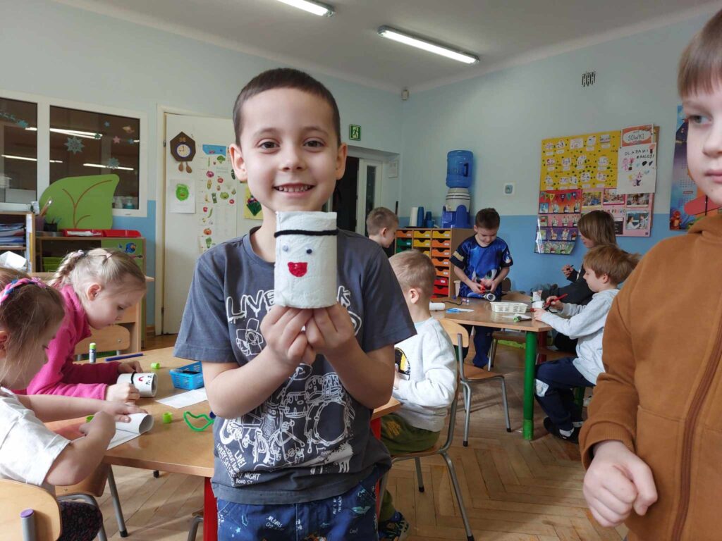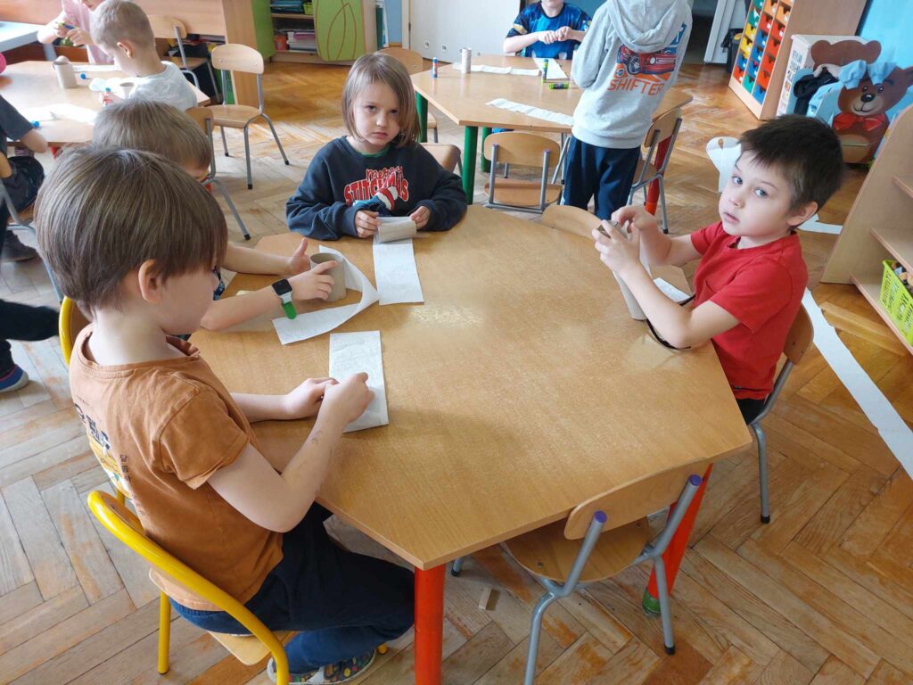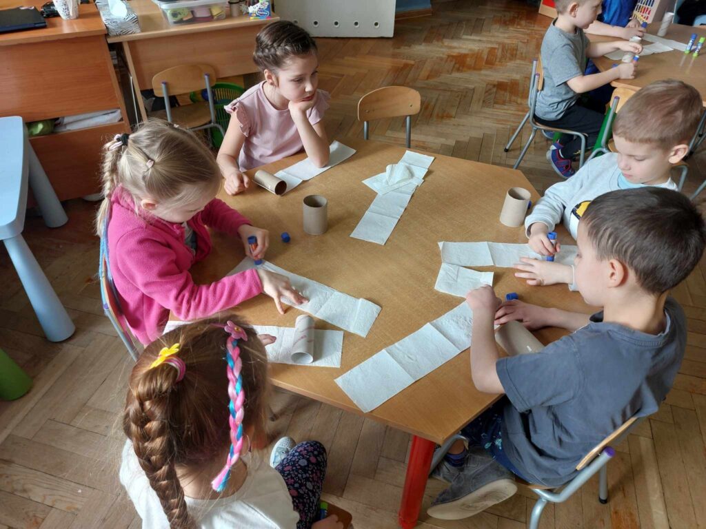 W lutym zrealizowaliśmy kolejne zagadnienie z projektu Czyściochowa Akademia. Tym razem rozmawialiśmy o zasadach korzystania z toalety. Podczas zajęć słuchaliśmy opowiadania o Papirusie II, który pojawił się, gdy Kot Pupić wrzucił do toalety zbyt dużo papieru toaletowego. Następnie sprawdzaliśmy, jak długa jest rolka papieru. Rozwinęliśmy ją całą i okazało się, że dotarliśmy aż do grupy Misiów. Na koniec wykonaliśmy Papirusa – kolejnego bohatera z Czyściochowej Akademii. Małgorzata Reksulak Małgorzata Witkowska