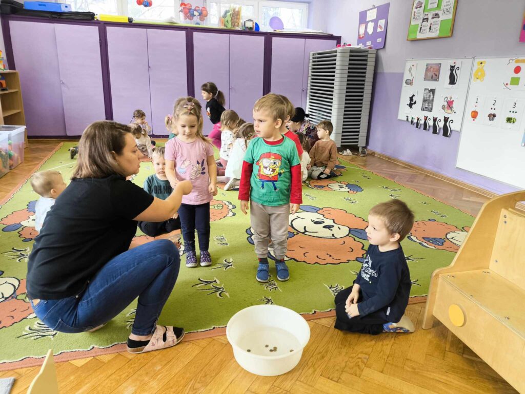 W listopadzie sala przedszkolna zamieniła się w magiczne miejsce wróżb i przepowiedni. Dzieci z grupy misiów i żabek bawili się wspólnie z okazji Andrzejek. Podczas zabaw towarzyszyło nam magiczne zaklęcie: „Hokus-pokus, czary-mary, niech się spełnią andrzejkowe czary.” Ten dzień był dniem radosnych zabaw i wróżb, w których dzieci mogły poznać swoją bliższą i dalszą przyszłość. Nie zabrakło ustawiania bucików, przekłuwania serduszek z imionami, losowanie rekwizytów i wiele innych wróżb związanych z tym świętem Wróżby przeplatane były tańcami oraz zabawami przy skocznej muzyce. Dzień ten dostarczył przedszkolakom wielu przeżyć i emocji, a przede wszystkim stał się okazją do rozbudzenia dziecięcej ciekawości oraz integracji z innymi dziećmi.