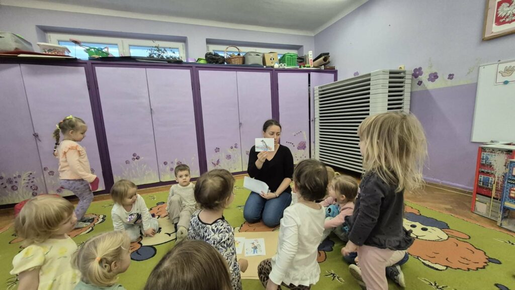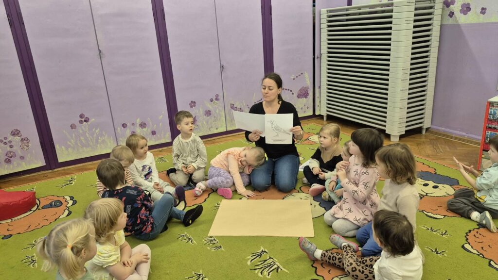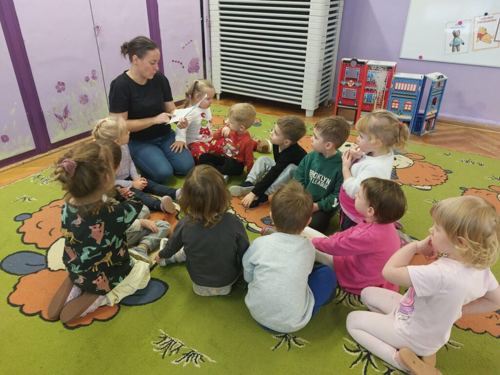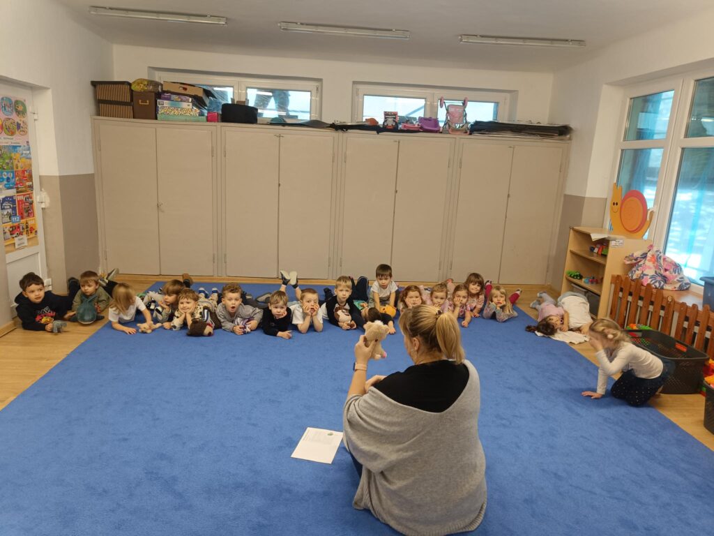 W listopadzie dzieci wysłuchały bajki Małgorzaty Strękowskiej-Zaremby „Czarna wrona” o tym, co zrobić gdy dziecko się zgubi. Bajka była znakomitym wstępem do rozmowy o tym, jak dzieci powinny się zachowywać w miejscach, gdzie jest dużo ludzi, o czym powinny pamiętać oraz do kogo zwrócić się o pomoc, gdy się zgubią. Kolejną opowieścią, którą wysłuchały przedszkolaki, była bajka o samoludnym lwie, który nie od razu rozumiał, dlaczego warto dzielić się z innymi.