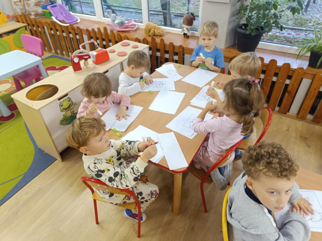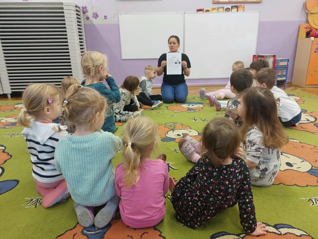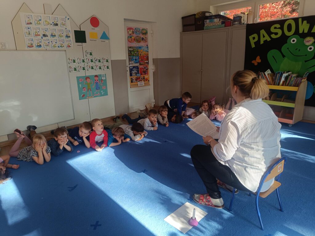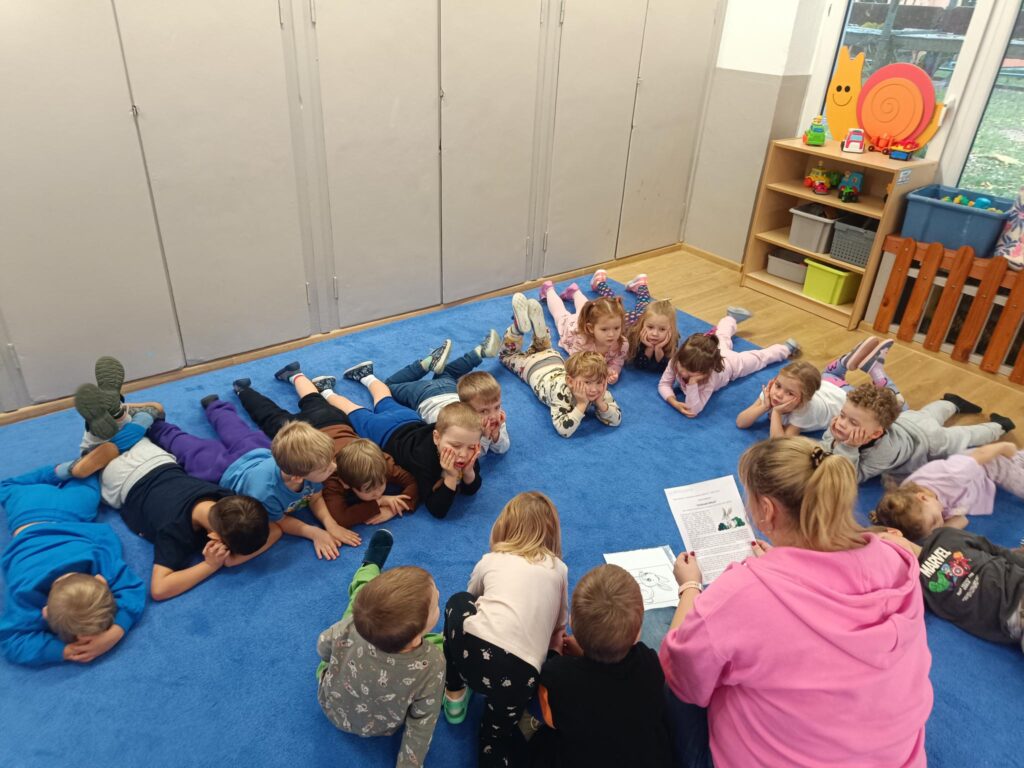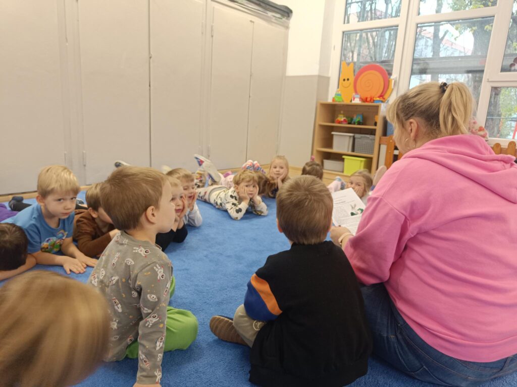 W październiku dzieci wysłuchały dwóch kolejnych bajek. Pierwszą z nich była ,,Nina nie chce spać w swoim pokoju” , Przepiękna historia o tym , jak ułatwić dzieciom zasypianie . Drugą bajką wysłuchaną przez dzieci była opowieść o ,,Króliczku Mikusiu” i sposobie rozwiązywania konfliktów rówieśniczych.
