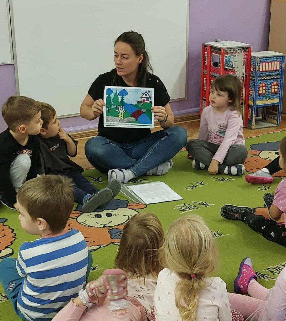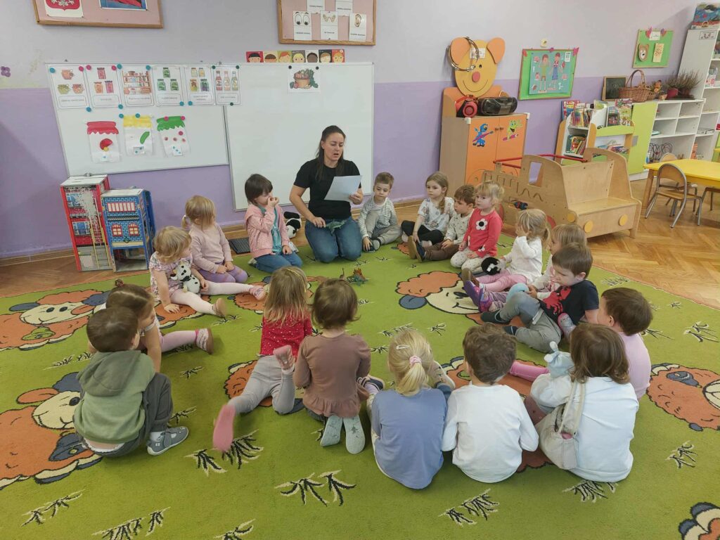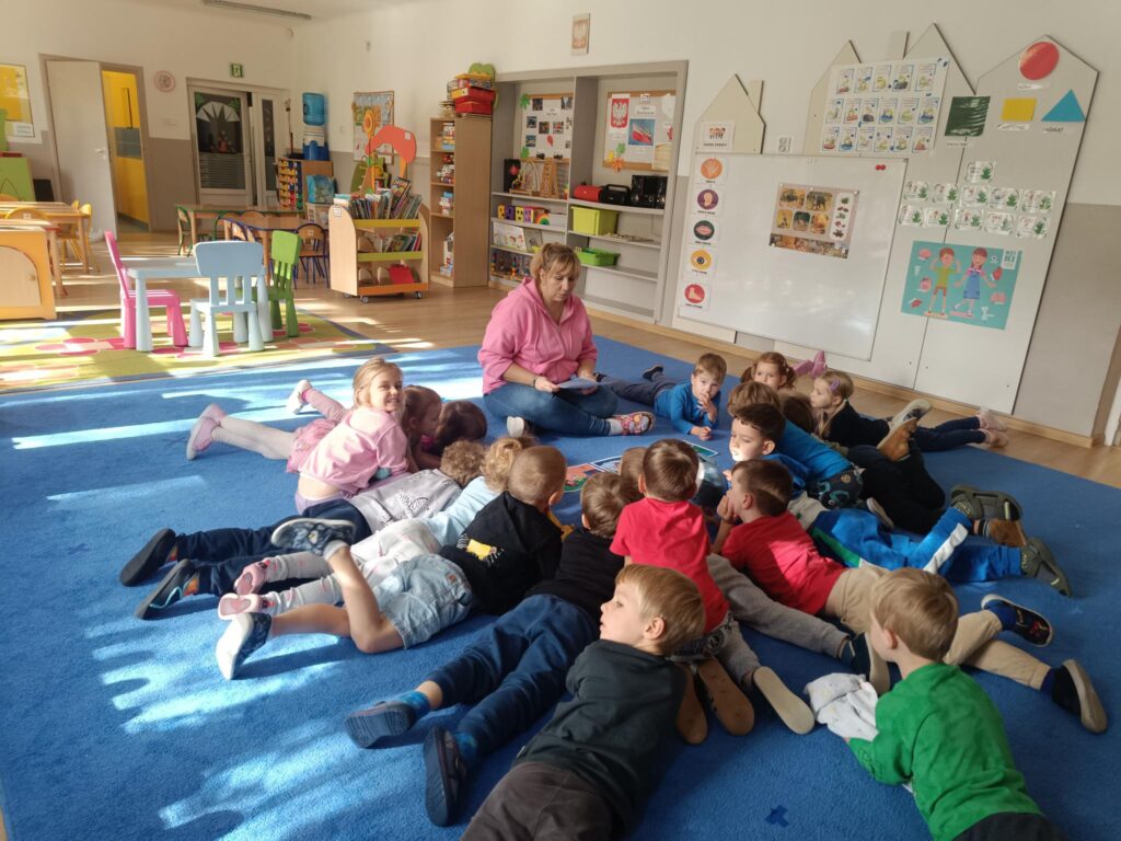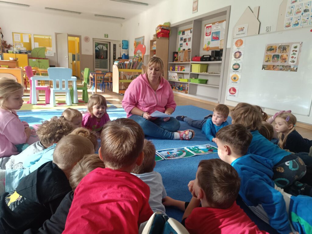 We wrześniu dzieci z grupy Misiów i Żabek rozpoczęły realizację zadań z projektu ,,Bajki-pomagajki”. Przedszkolaki wysłuchały bajki o ,,Kocicy złośnicy, która woła: ja nie chcę do przedszkola”. Bajka ta skierowana jest w szczególności do dzieci, które boją się pójść pierwszy raz do przedszkola. Przedszkolaki dowiedziały się, jak radzić sobie z lękiem przed przedszkolem. Drugą bajką, którą dzieci wysłuchały to ,,Franek na konkursie ryków”. Bajka o dinozaurach – opowieść o jednym i do tego nieśmiałym dinozaurze Franku i jego występie w konkursie na najgroźniejszy ryk.
