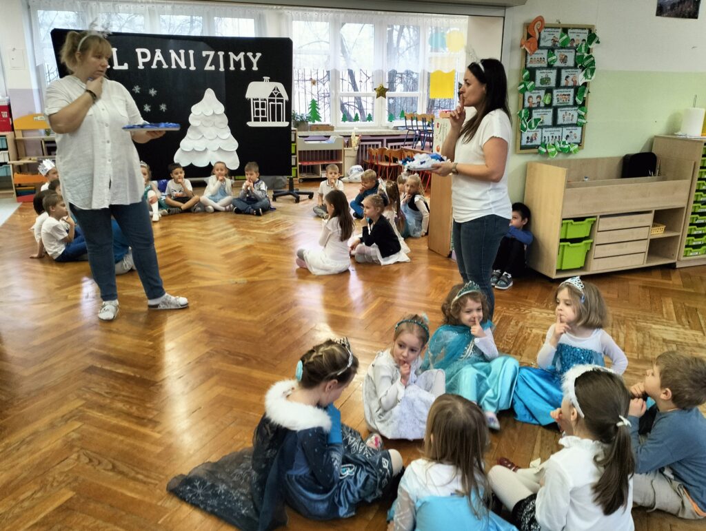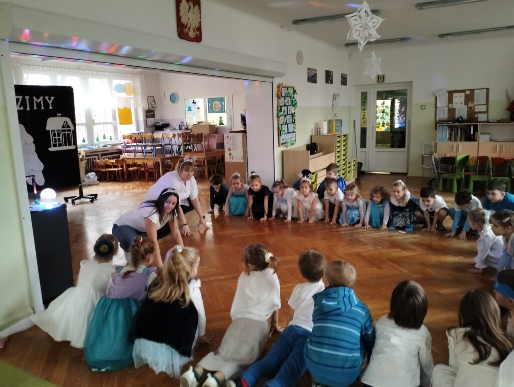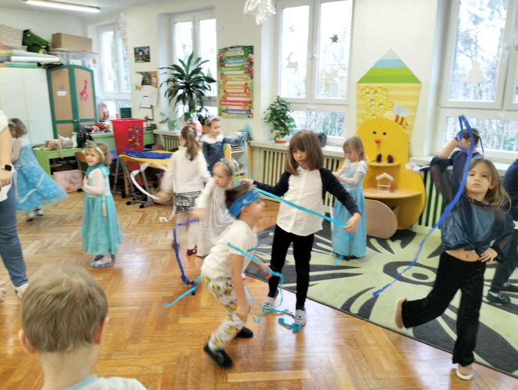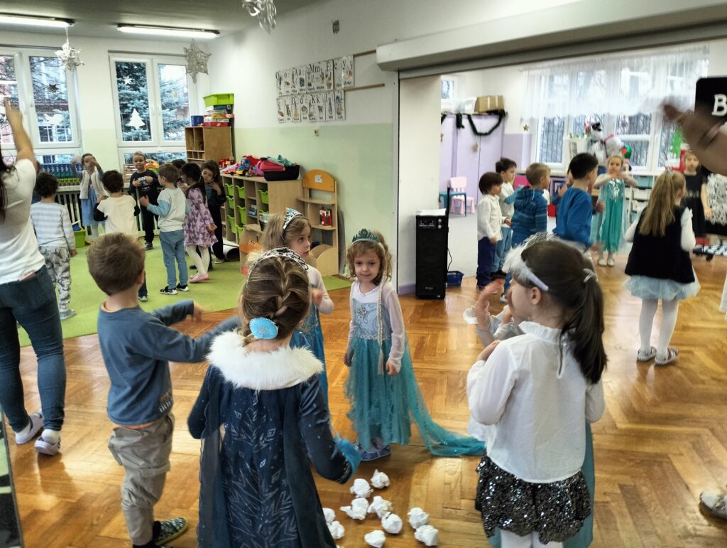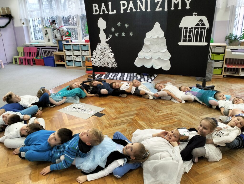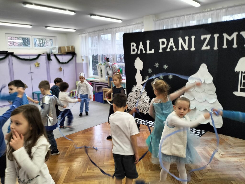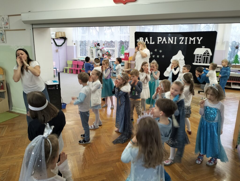 10 stycznia odbył się w naszym przedszkolu Bal Zimy. Pogoda tego dnia była wyjątkowo zimowa. W trakcie balu za oknem zaczął padać śnieg. Wszystkie dzieci przyszły tego dnia ubrane na biało. Na początku odsłuchaliśmy wiadomość od Pani Zimy, która przygotowała specjalnie na tę okazję wspaniałe zabawy i konkursy. Przedszkolaki poradziły sobie ze wszystkimi zadaniami znakomicie. Podczas spotkania wspólnie śpiewaliśmy zimowe piosenki, jeździliśmy kuligiem, rzucaliśmy się śnieżkami, czyli wesoło się bawiliśmy.