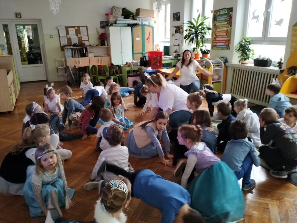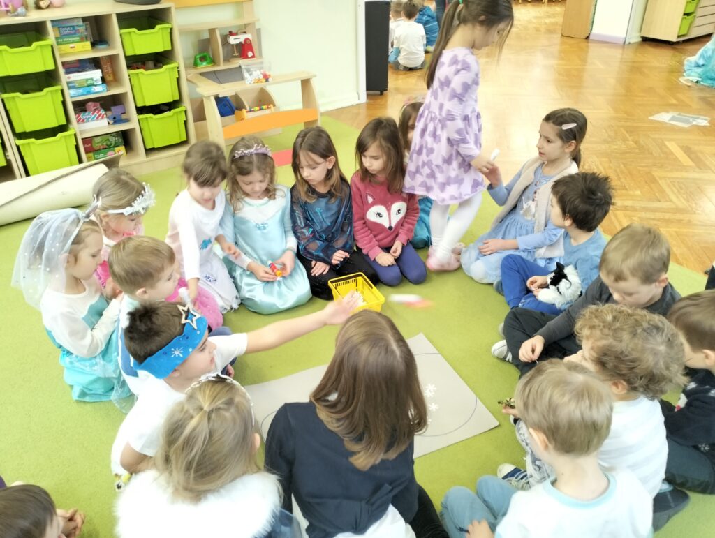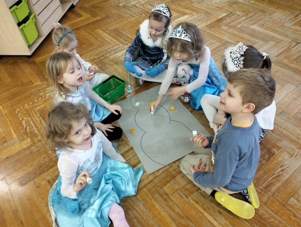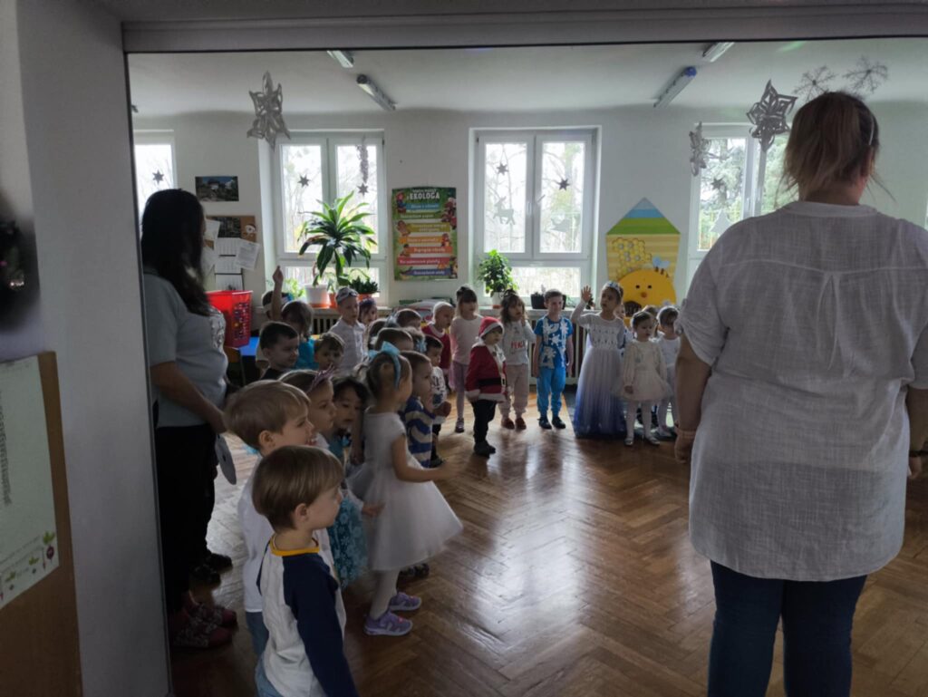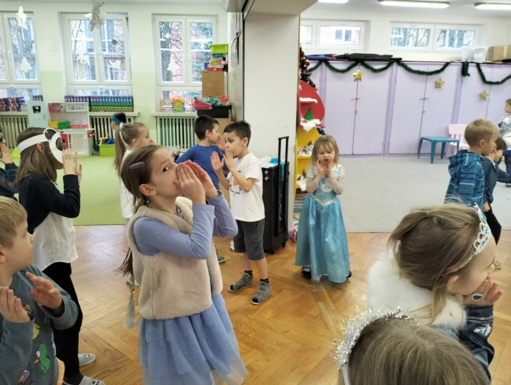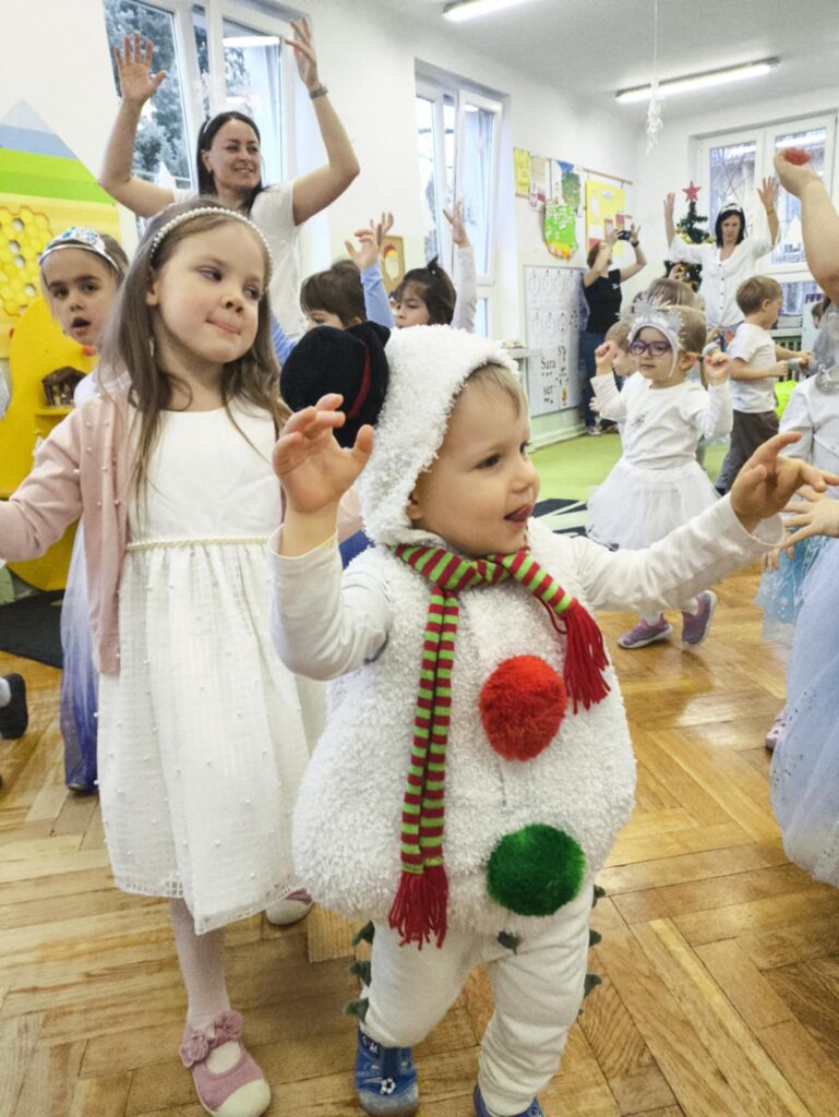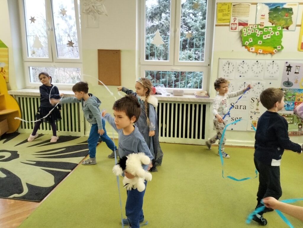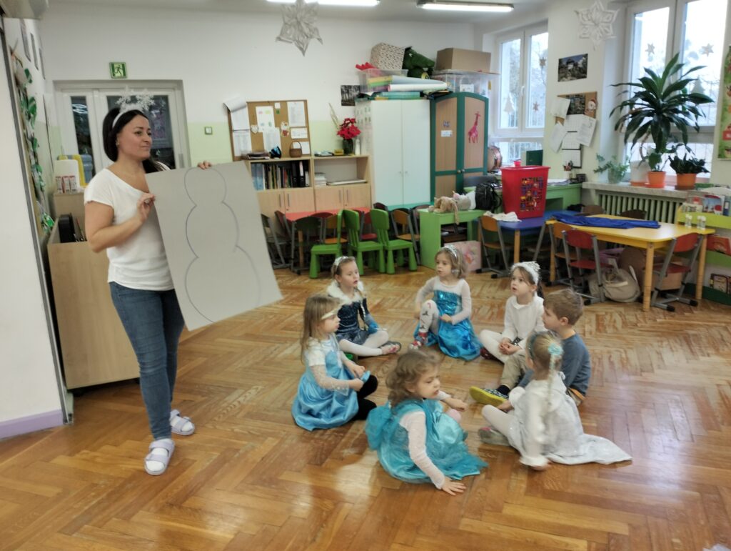 10 stycznia odbył się w naszym przedszkolu Bal Zimy. Pogoda tego dnia była wyjątkowo zimowa. W trakcie balu za oknem zaczął padać śnieg. Wszystkie dzieci przyszły tego dnia ubrane na biało. Na początku odsłuchaliśmy wiadomość od Pani Zimy, która przygotowała specjalnie na tę okazję wspaniałe zabawy i konkursy. Przedszkolaki poradziły sobie ze wszystkimi zadaniami znakomicie. Podczas spotkania wspólnie śpiewaliśmy zimowe piosenki, jeździliśmy kuligiem, rzucaliśmy się śnieżkami, czyli wesoło się bawiliśmy.