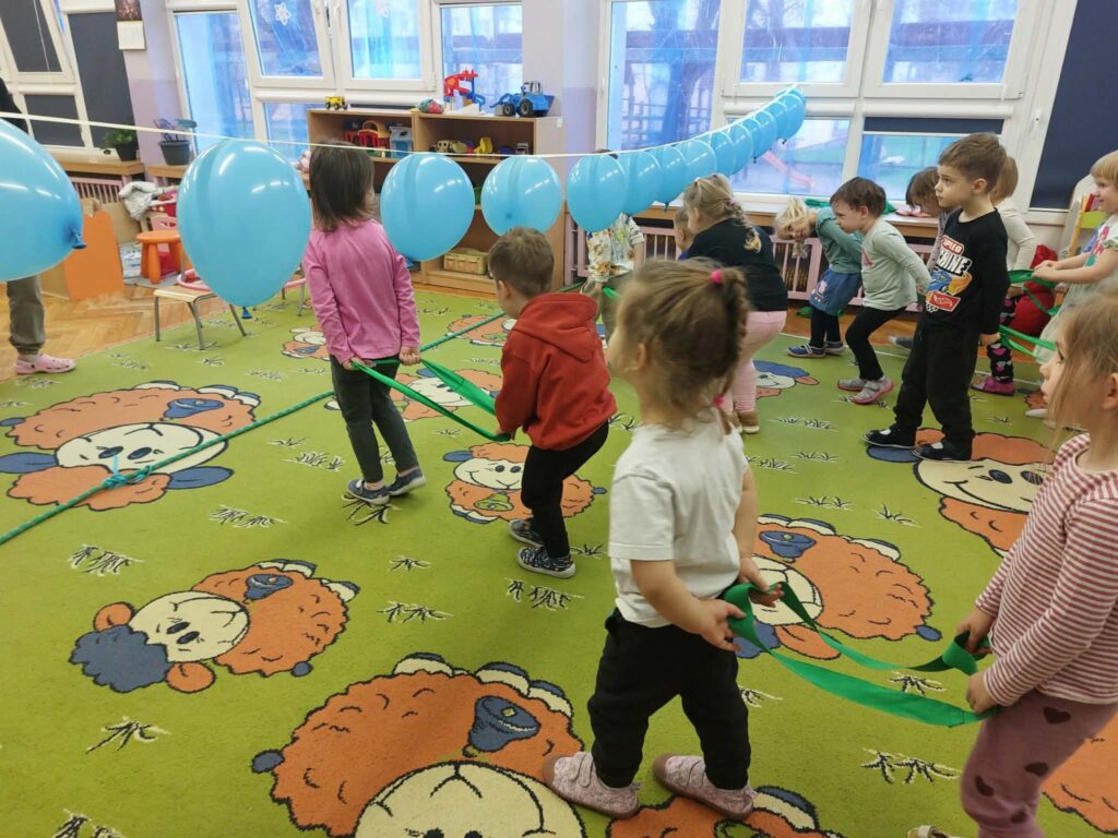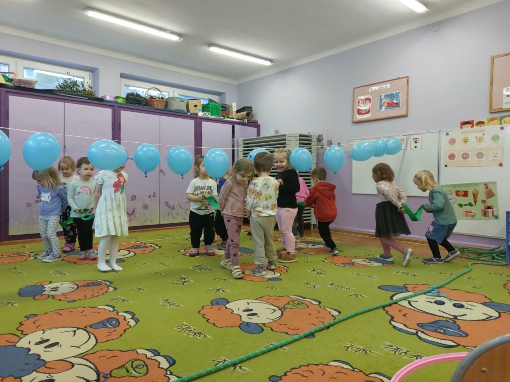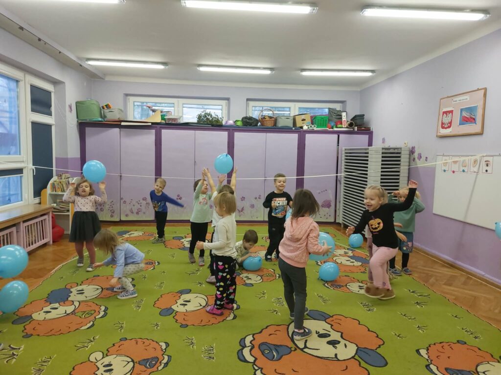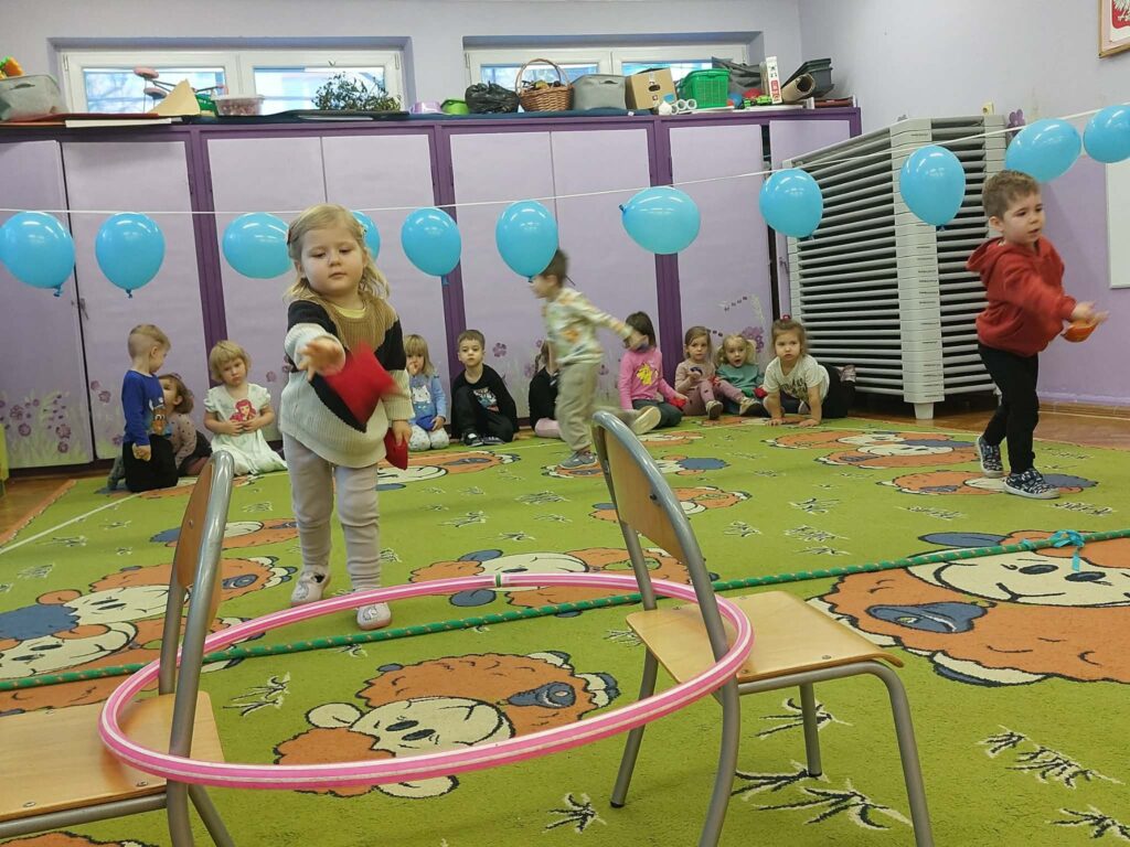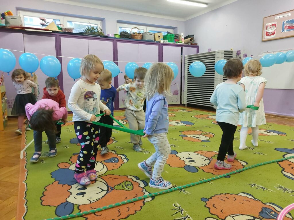 Dzieci z najmłodszej grupy wiedzą, że każda okazja jest dobra, by rozwijać swoją sprawność fizyczną. Podczas zabaw z balonami, rozwijaliśmy zwinność, gibkość oraz celność. Radości nie było końca! Dzieci bawiły się fantastycznie.