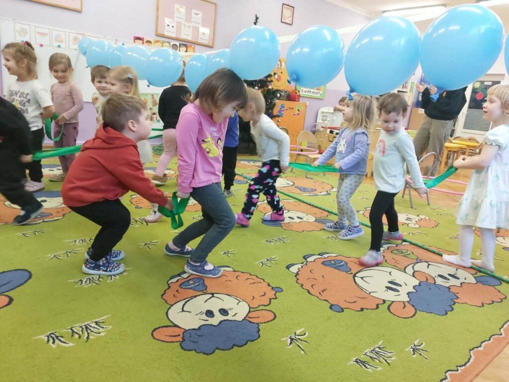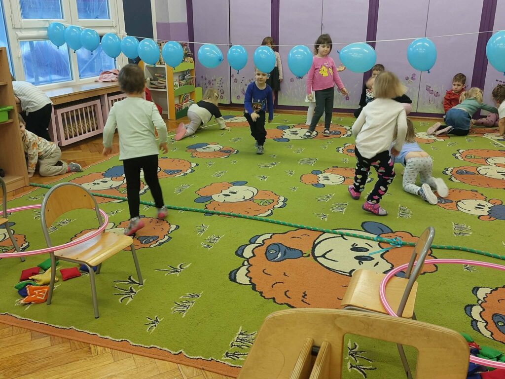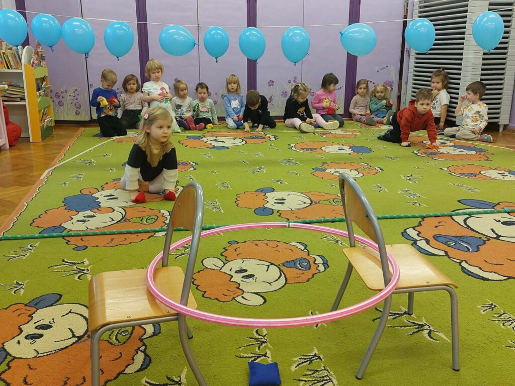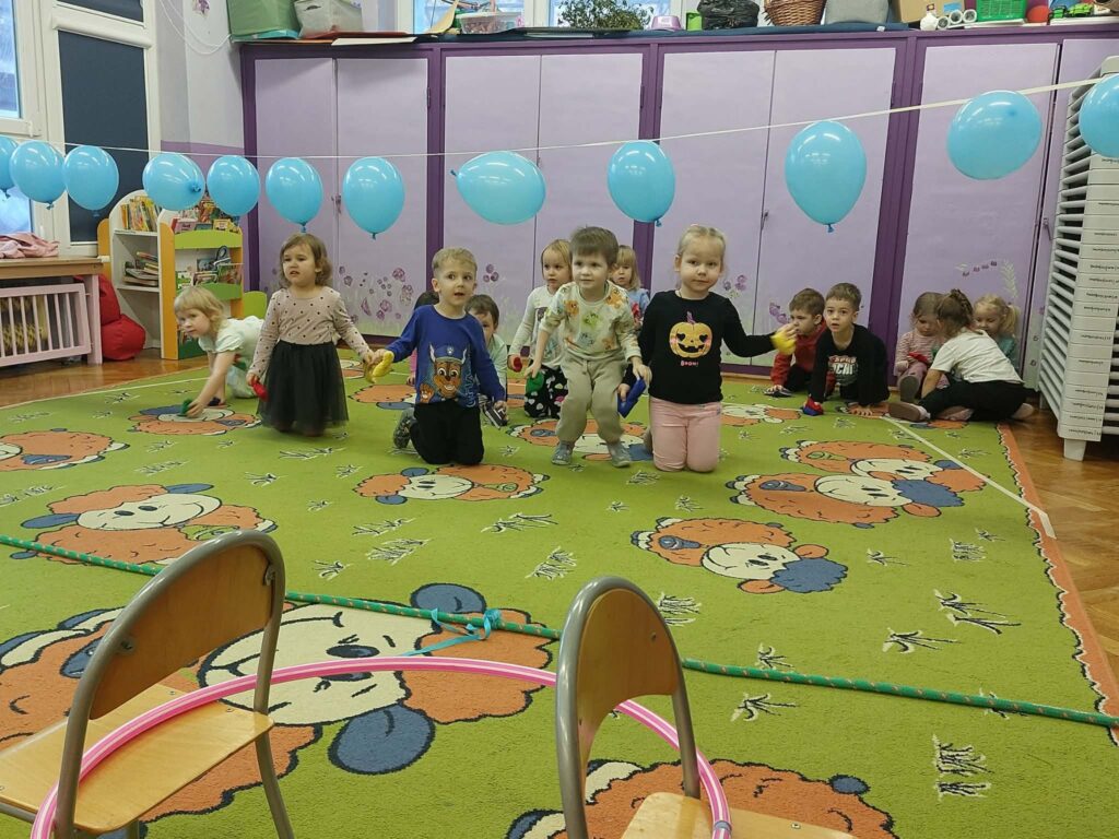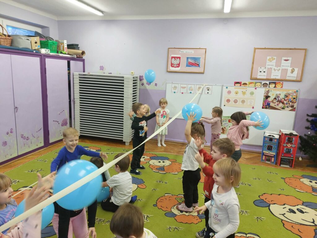 Dzieci z najmłodszej grupy wiedzą, że każda okazja jest dobra, by rozwijać swoją sprawność fizyczną. Podczas zabaw z balonami, rozwijaliśmy zwinność, gibkość oraz celność. Radości nie było końca! Dzieci bawiły się fantastycznie.