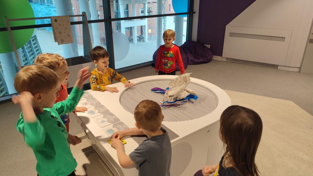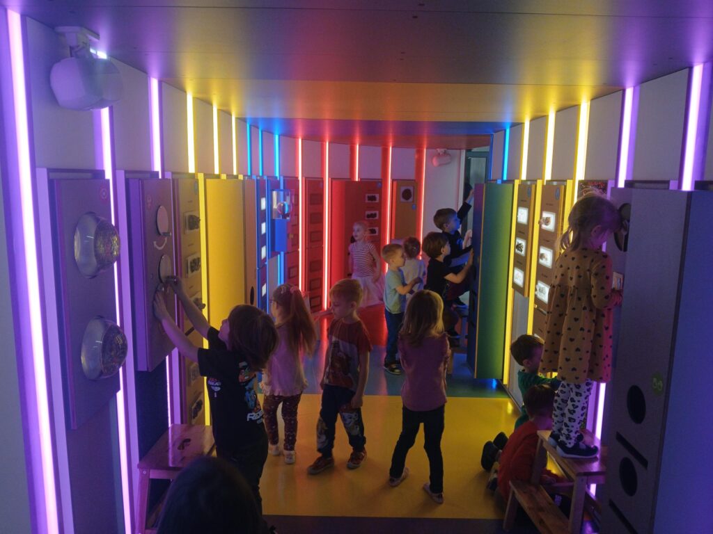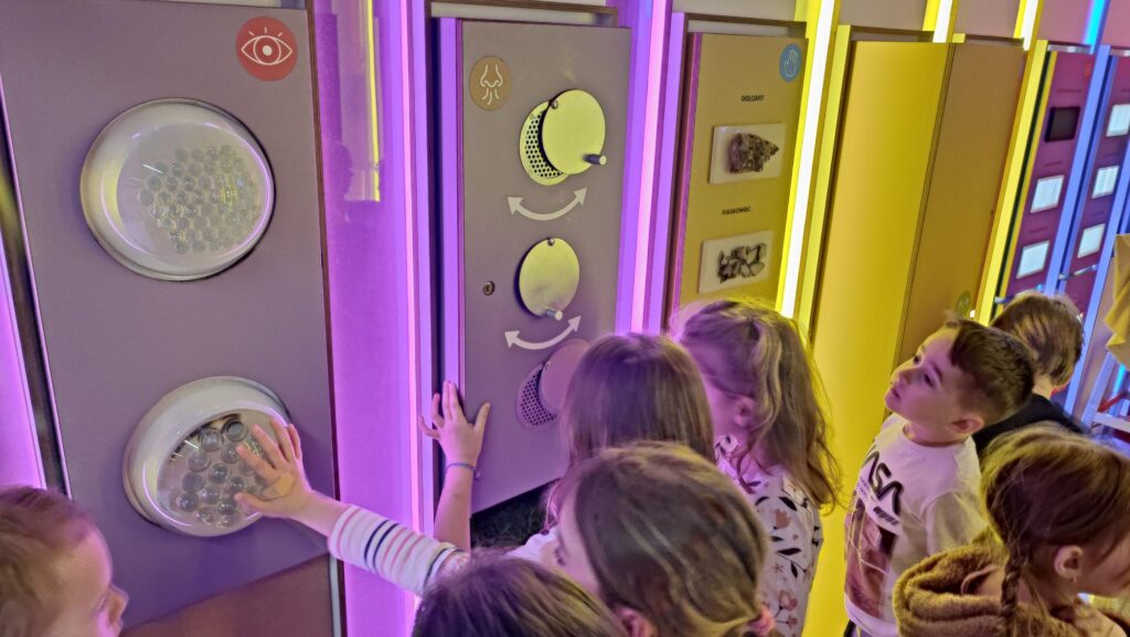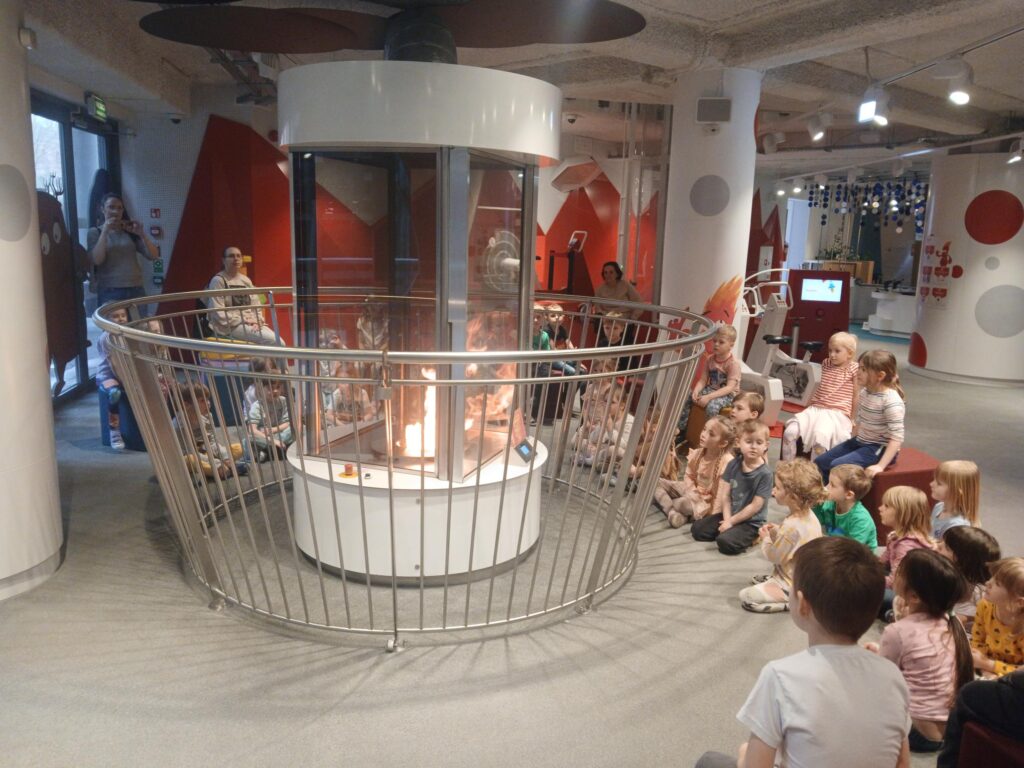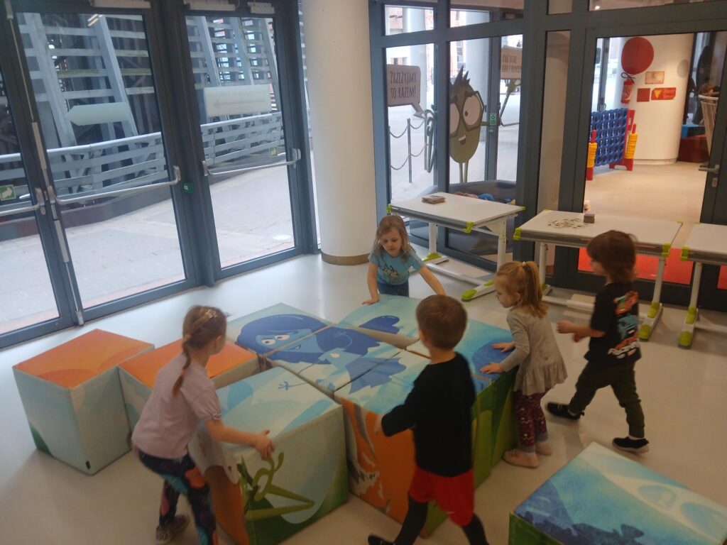 Podczas wizyty odwiedziliśmy strefy czterech żywiołów, w których przedszkolaki mogły się poruszać i odkrywać nowe rzeczy.
