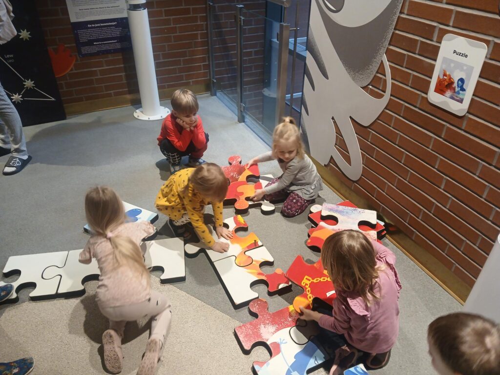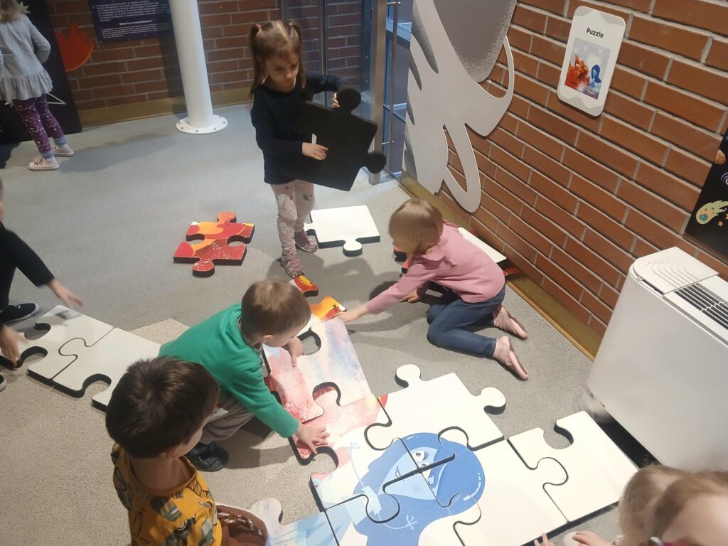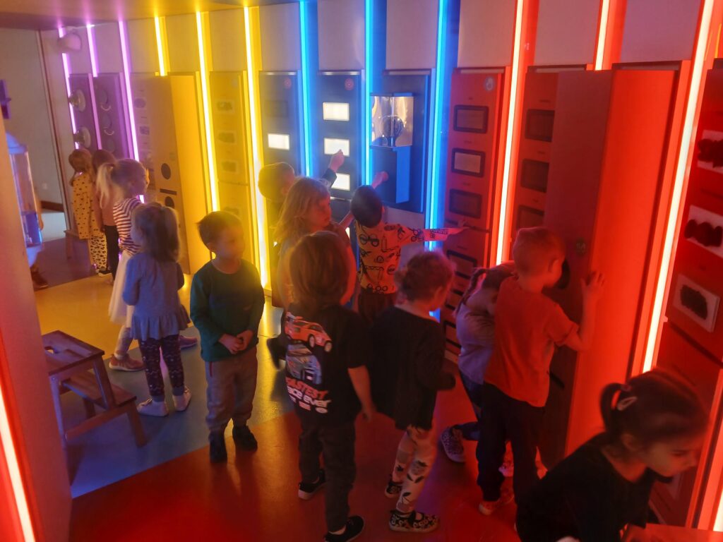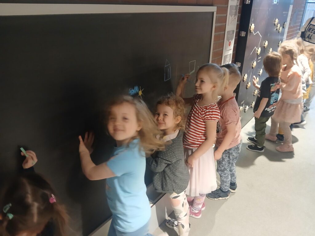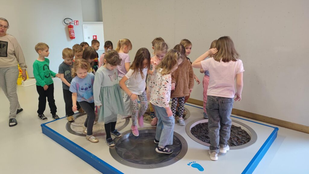 Podczas wizyty odwiedziliśmy strefy czterech żywiołów, w których przedszkolaki mogły się poruszać i odkrywać nowe rzeczy.