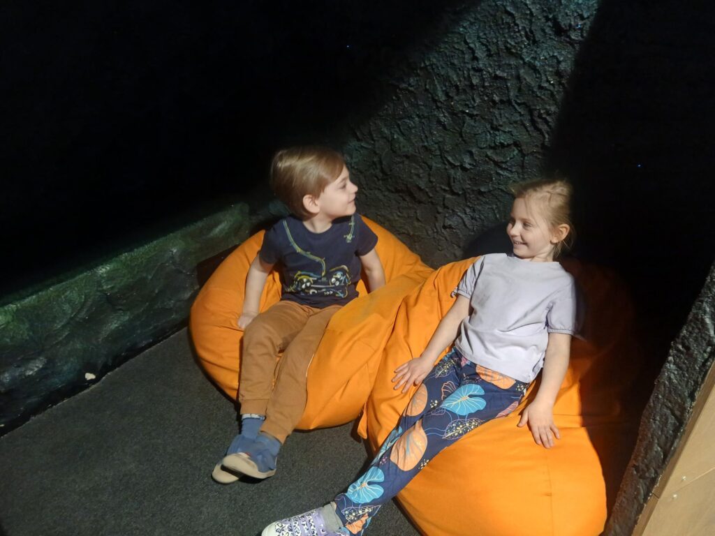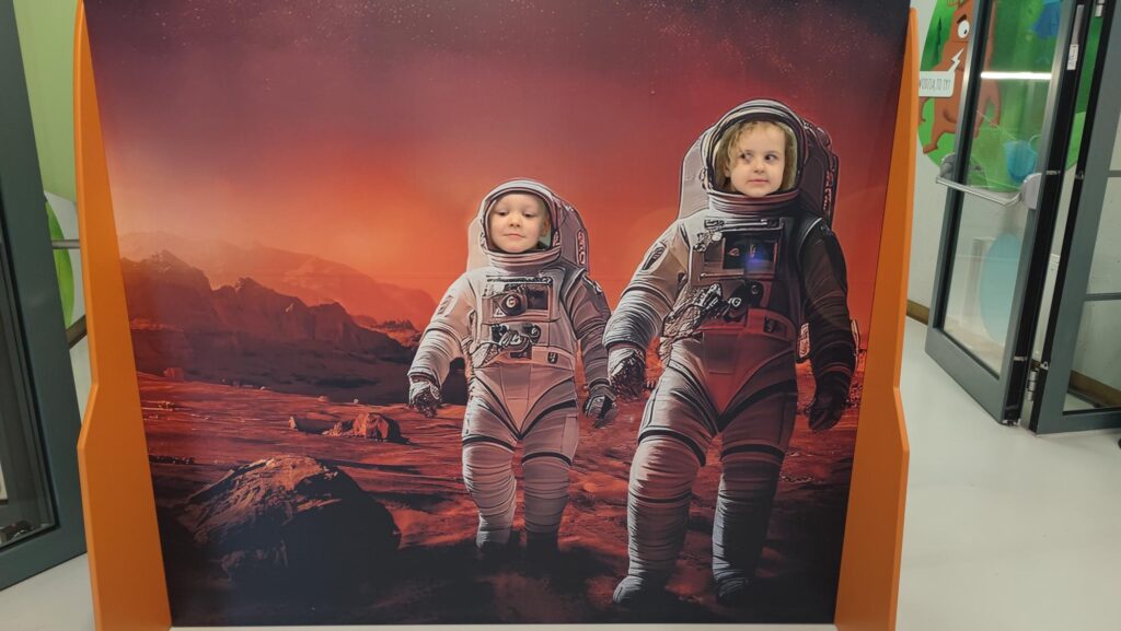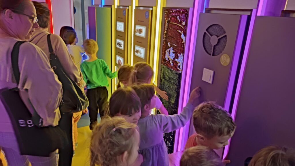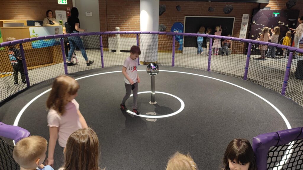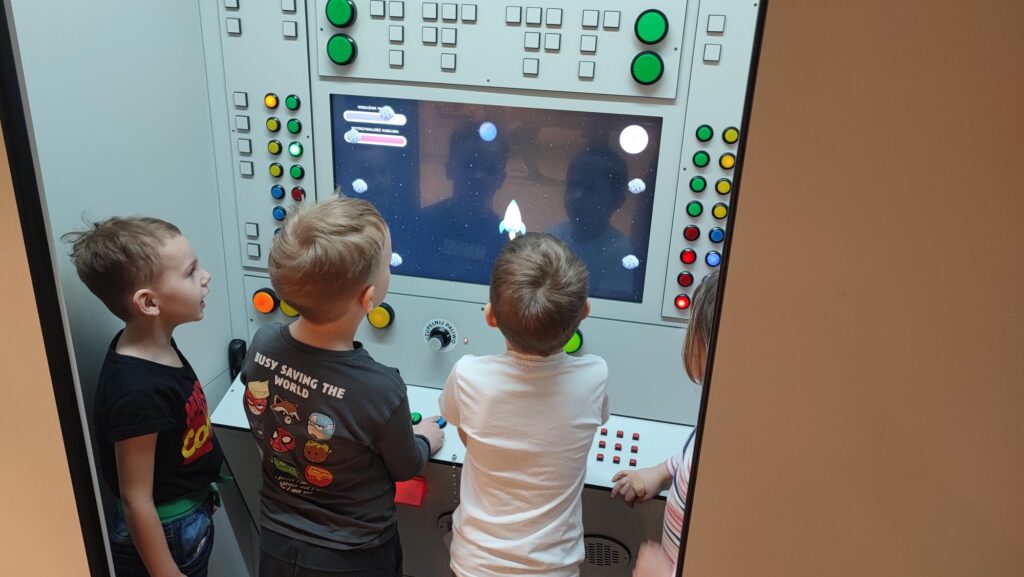 Nasza przygoda rozpoczęła się przejściem przez tunel sensoryczny, gdzie za pomocą dotyku, węchu i słuchu rozbudziliśmy nasze zmysły. Następnie znaleźliśmy się w strefie kosmicznej, gdzie mogliśmy sterować statkiem kosmicznym, poruszaliśmy po orbitach księżycy, odnajdowaliśmy gwiazdozbiory, naprawialiśmy statek w rękawicach kosmonauty oraz wiele innych. Następnie znaleźliśmy się w strefie ziemi, gdzie mogliśmy dokonywać pomiaru ciężaru oraz temperatury przedmiotów. Mogliśmy zobaczyć również świat oczami różnych zwierząt, a także zrobić sobie rentgen dłoni. Korzystaliśmy także ze ścianki wspinaczkowej, toru linowego oraz basenu z piłkami i piankami. Na koniec udaliśmy się do strefy wodnej, gdzie zamienialiśmy się w kapitanów statku. W wydzielonej części czekał nas również pokaz ognia.