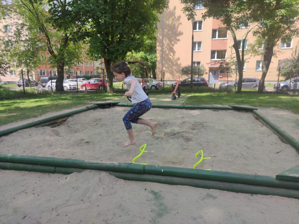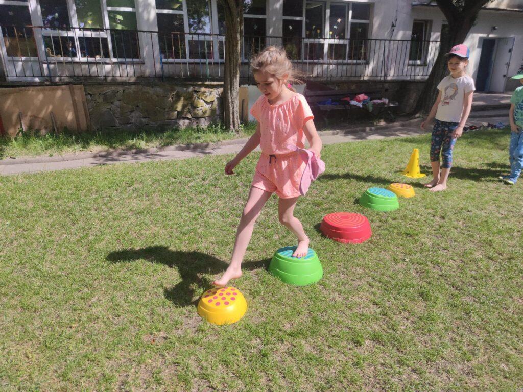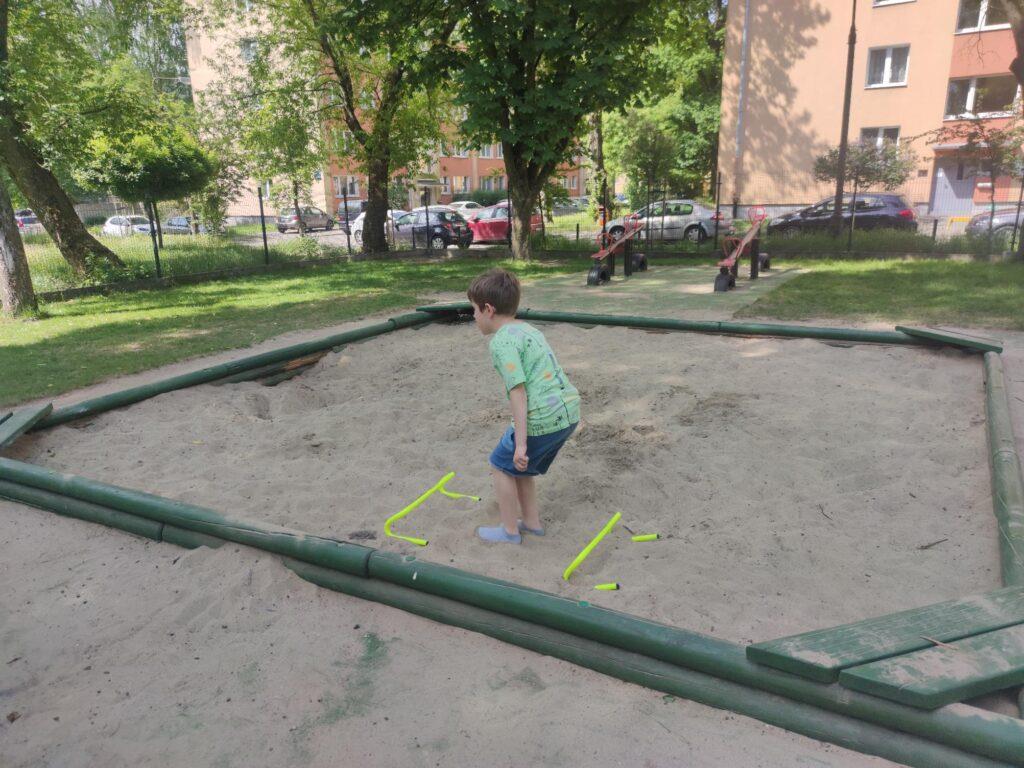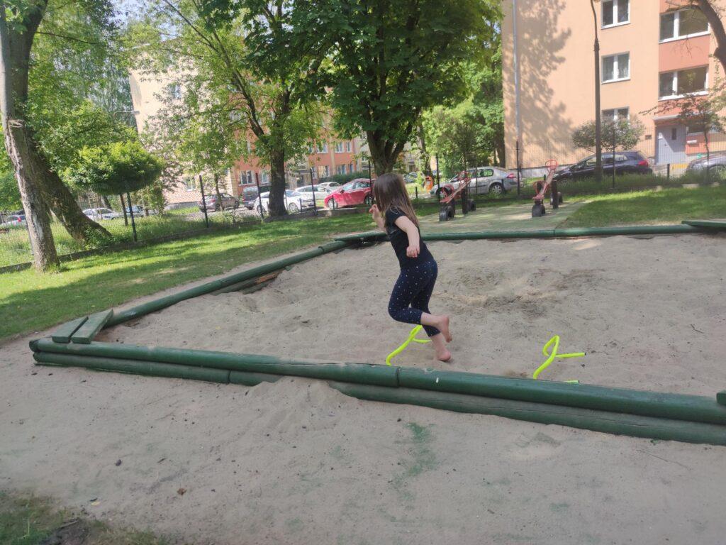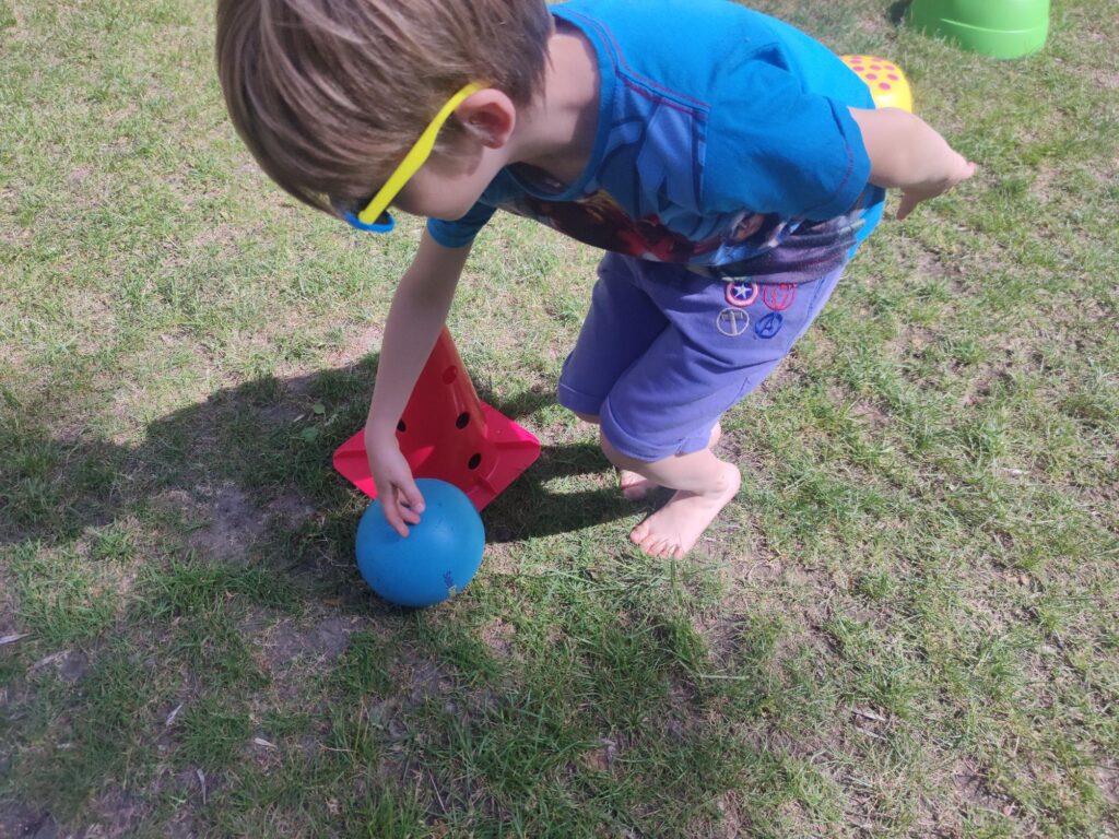 Kiedy wyjdzie słońce chce się jakoś więcej… My postanowiliśmy zrealizować zadanie pt. ,,Boso przez świat” w ogródku, przechodząc bosymi stopami tor przeszkód 🙂