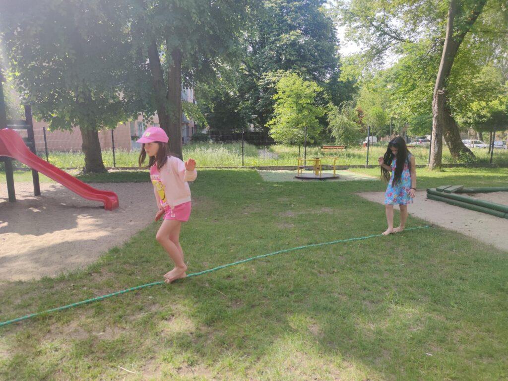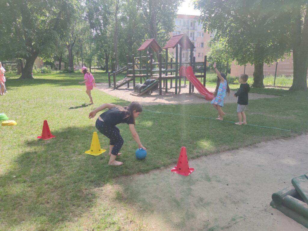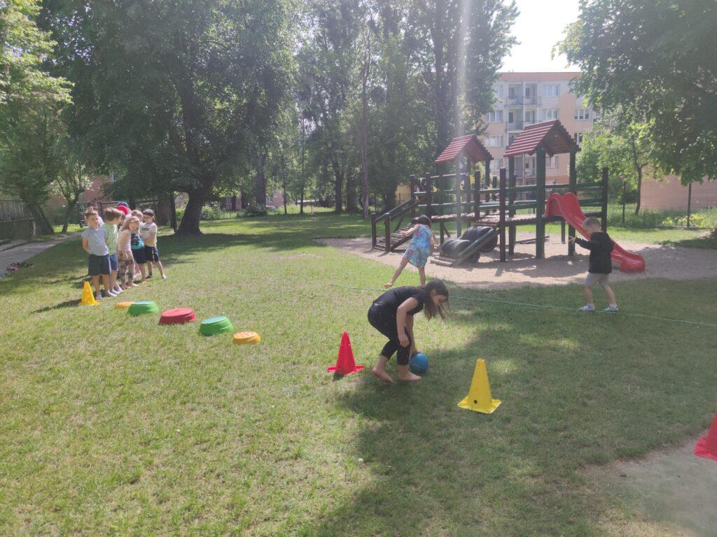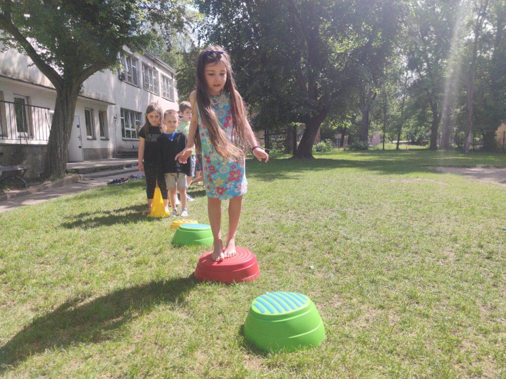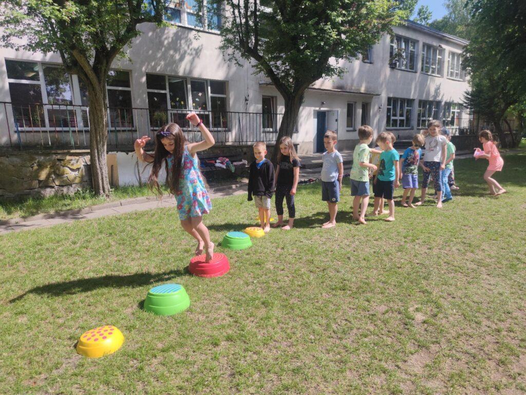 Kiedy wyjdzie słońce chce się jakoś więcej… My postanowiliśmy zrealizować zadanie pt. ,,Boso przez świat” w ogródku, przechodząc bosymi stopami tor przeszkód 🙂