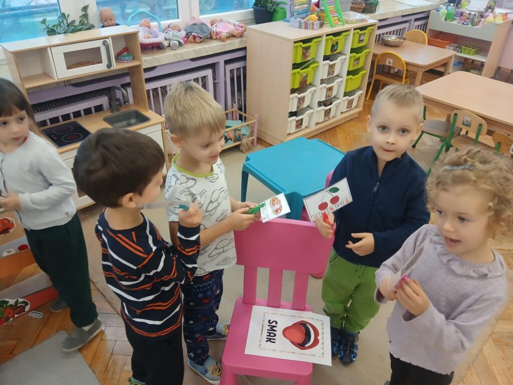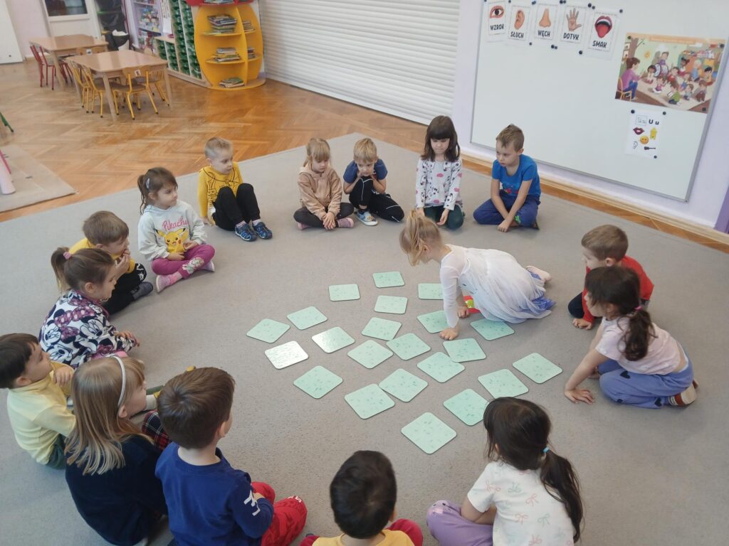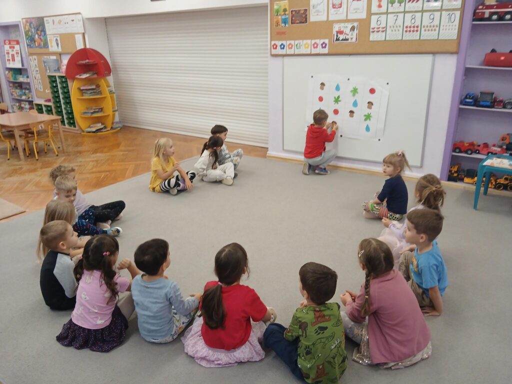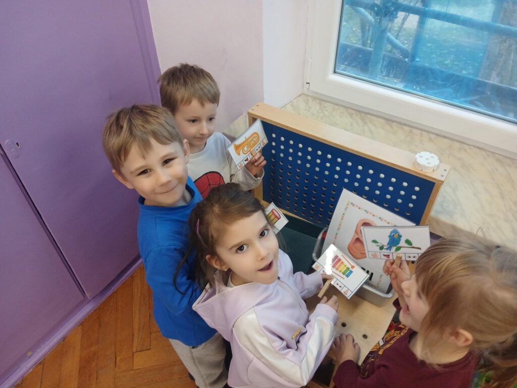 Każdego dnia uczymy się poprzez zabawę. Rozwijamy logiczne myślenie i spostrzegawczość poprzez zabawy matematyczne. Rozwijamy analizę słuchową poznając obrazy graficzne liter i wyszukując słów rozpoczynających się na daną głoskę. Rozwijamy zdolności manualne, wzmacniamy relacje koleżeńskie i rozwijamy swoje zmysły poprzez różne aktywności i zabawy.