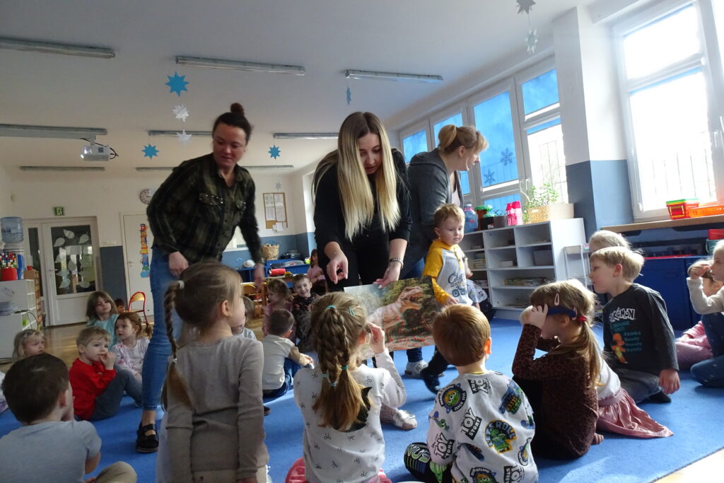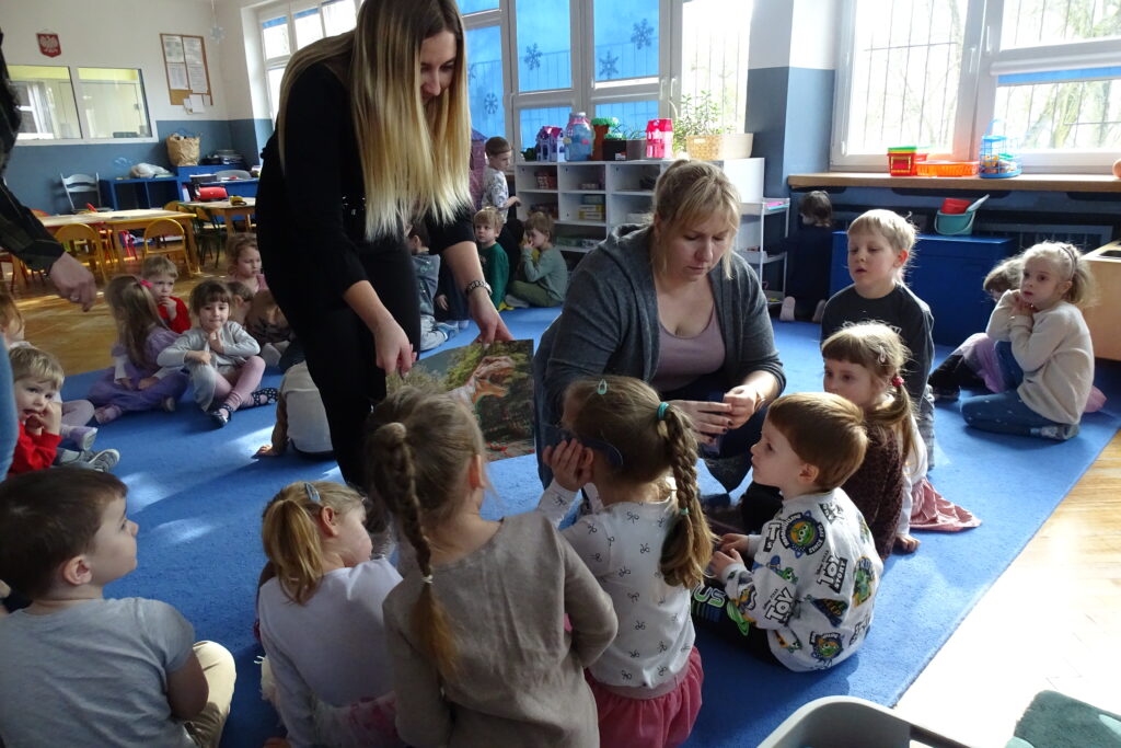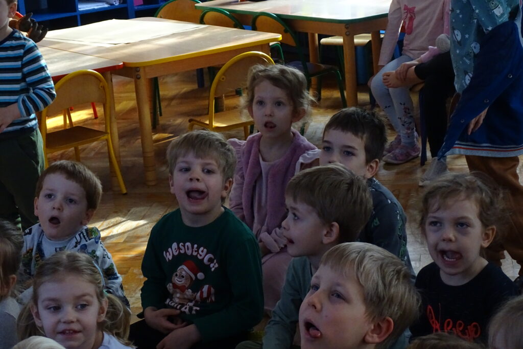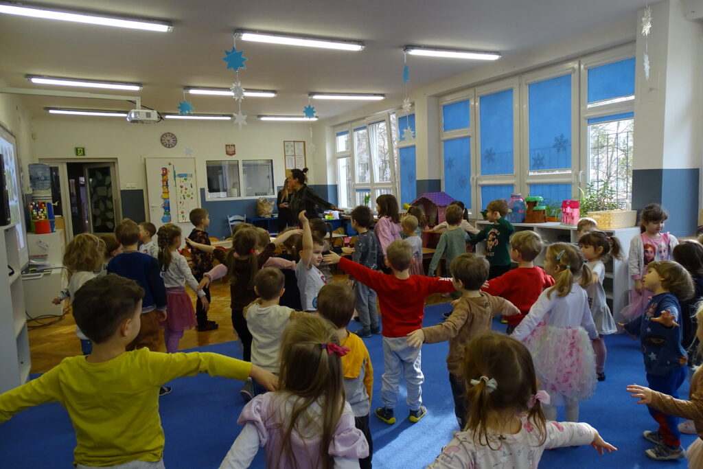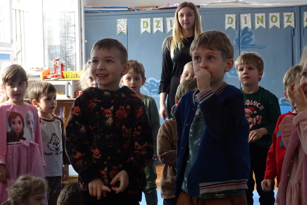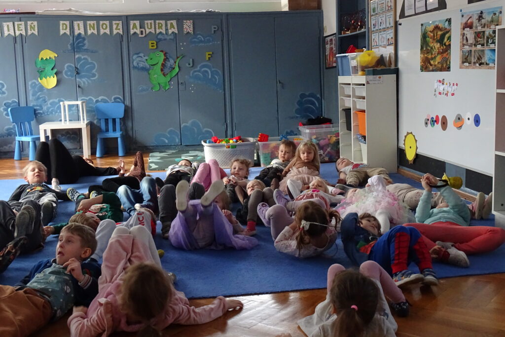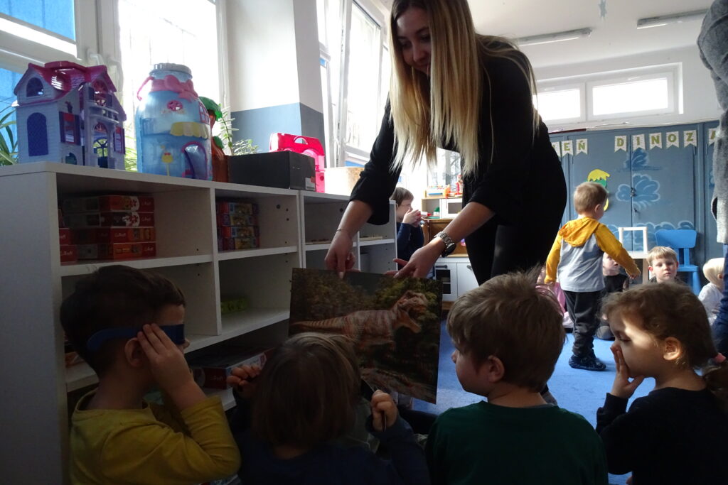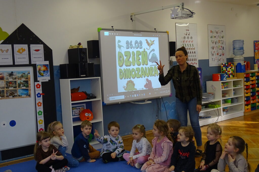 26 lutego obchodzony jest na całym świecie Dzień Dinozaura. Choć dinozaury dawno już wyginęły to nie przestają fascynować zarówno dzieci, jak i dorosłych. Z tej okazji przedszkolaki z grupy: Misiów, Zajączków i Wiewiórek odbyły niezwykłą podróż do świata tych prehistorycznych gadów. Nasze przedszkole zmieniło się w tajemniczy park jurajski po którym oprowadzał nas mały Tyranozaur. Dzieci dowiedziały się kiedy żyły, jak wyglądały i co jadły dinozaury oraz co sprawiło, że wyginęły. Przez cały ten czas świetnie się bawiliśmy tańcząc, śpiewając i naśladując dinozaury. To był bardzo udany dzień.