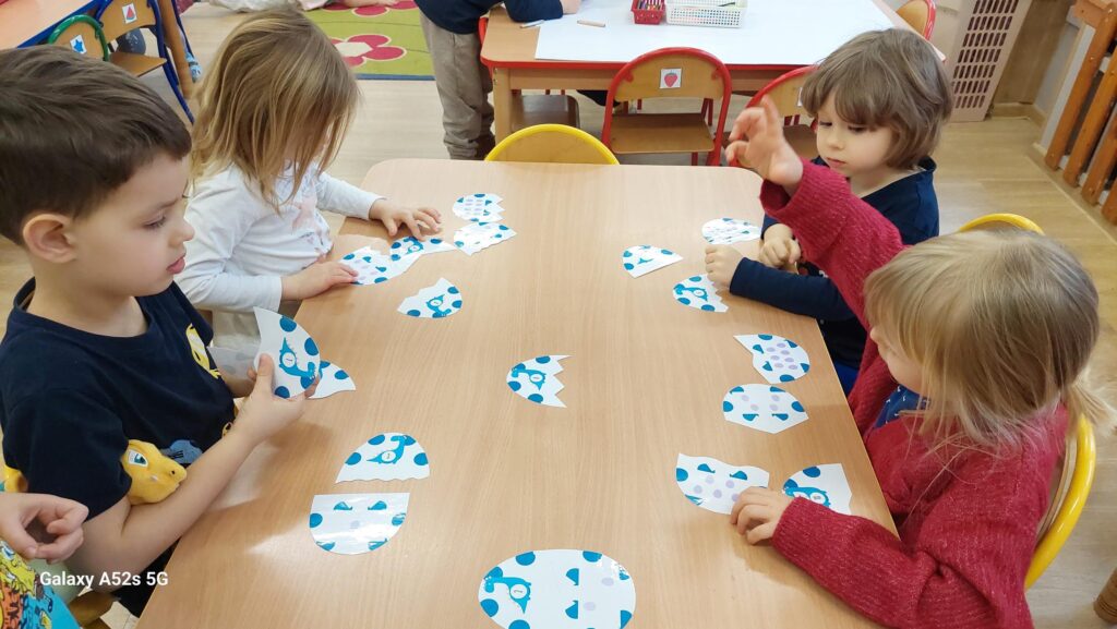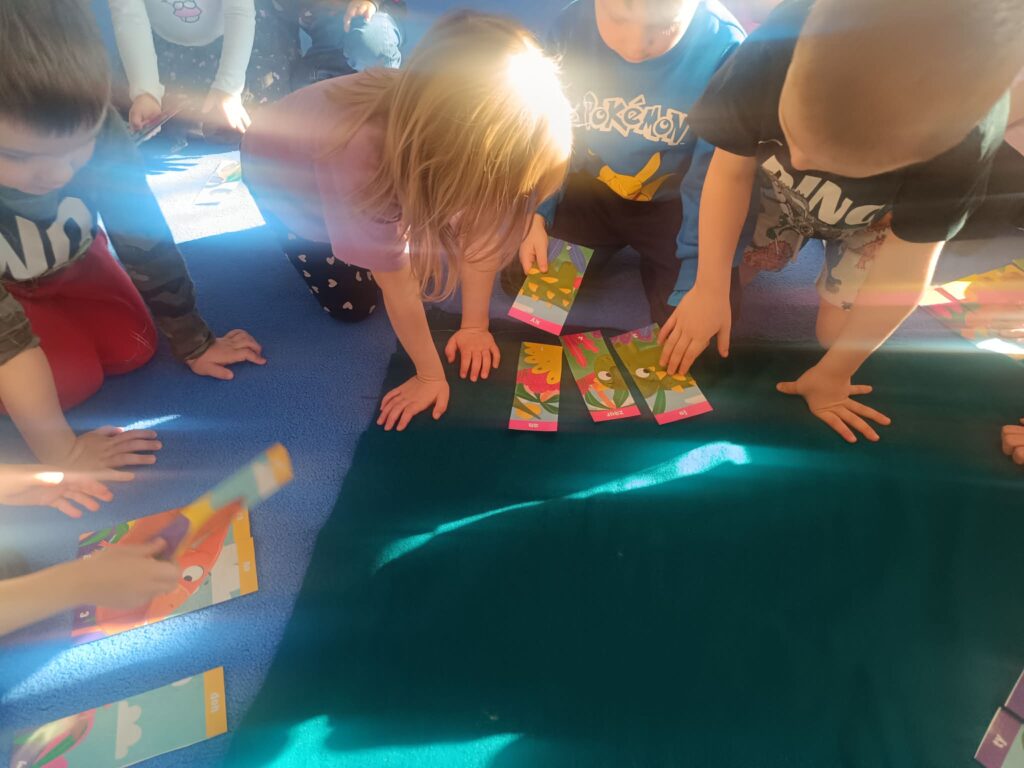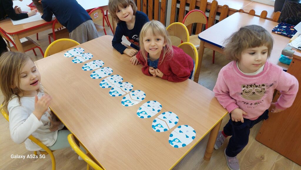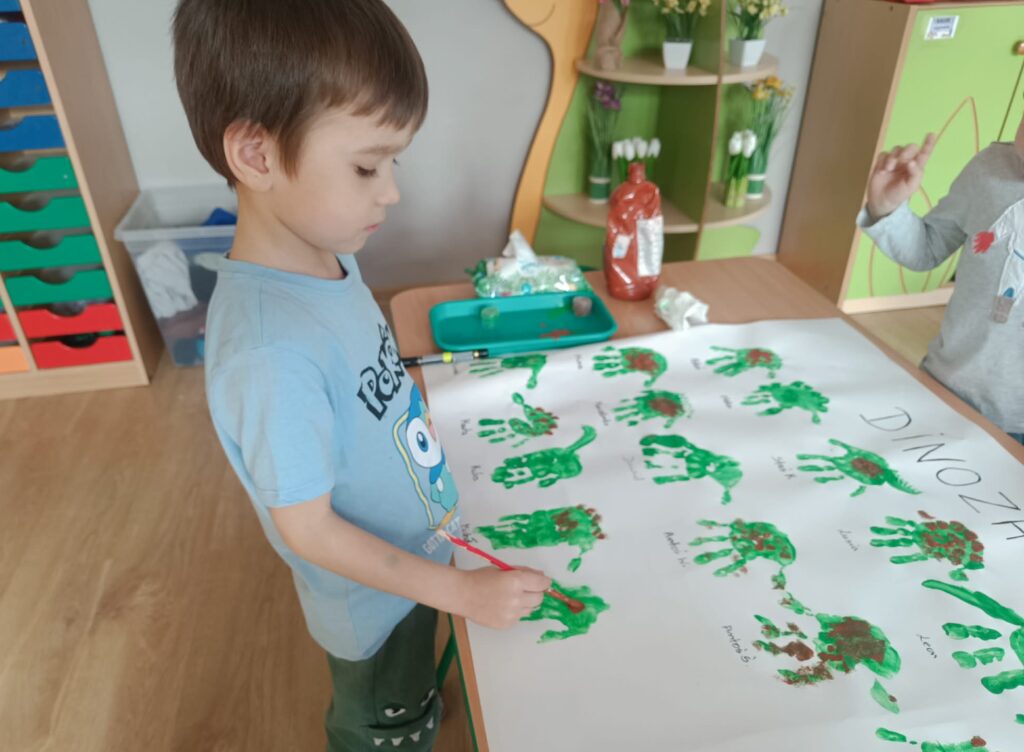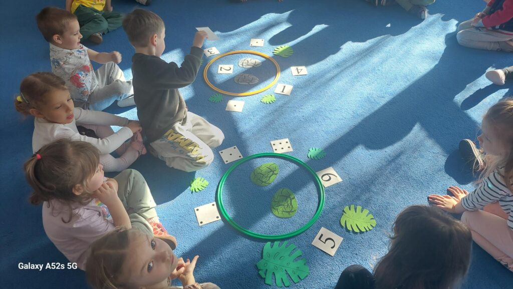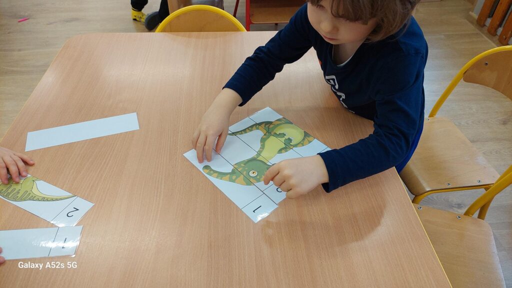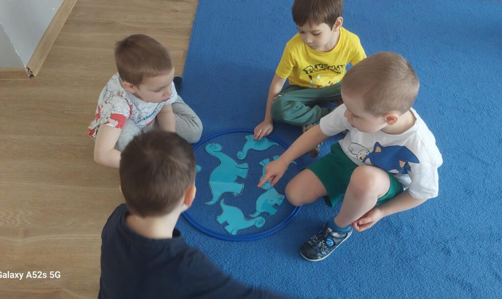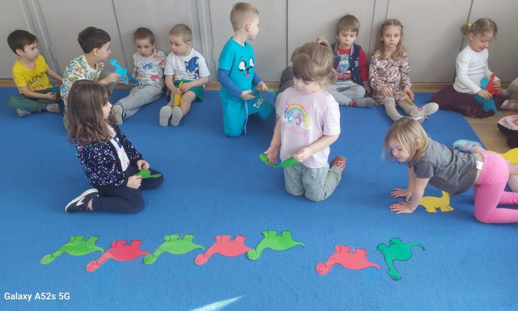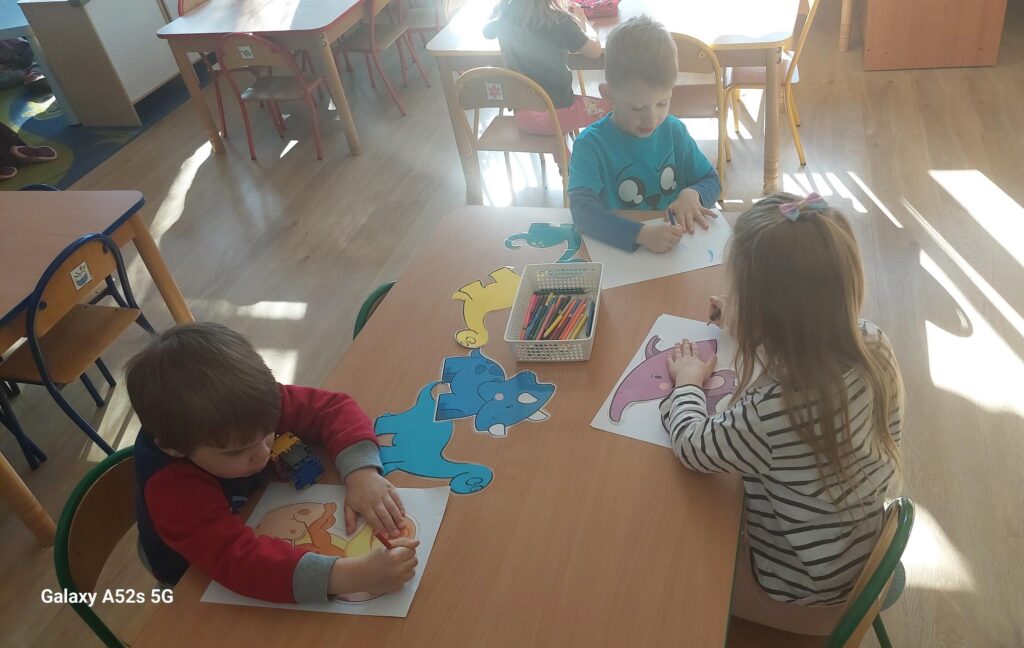 W trakcie zajęć dzieci rozwijały umiejętności liczenia, klasyfikowania oraz współpracy w grupie. Na zakończenie dnia wysłuchały opowiadania o dinozaurach i podzieliły się swoimi wrażeniami.