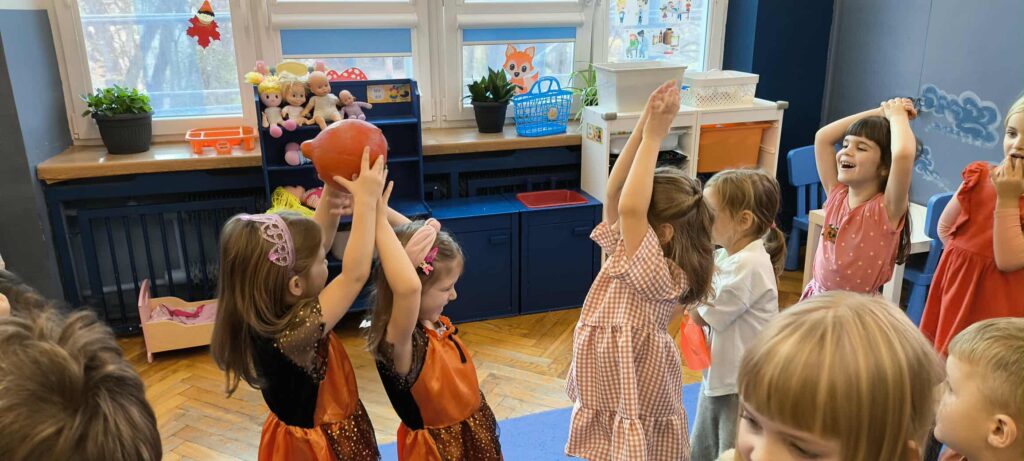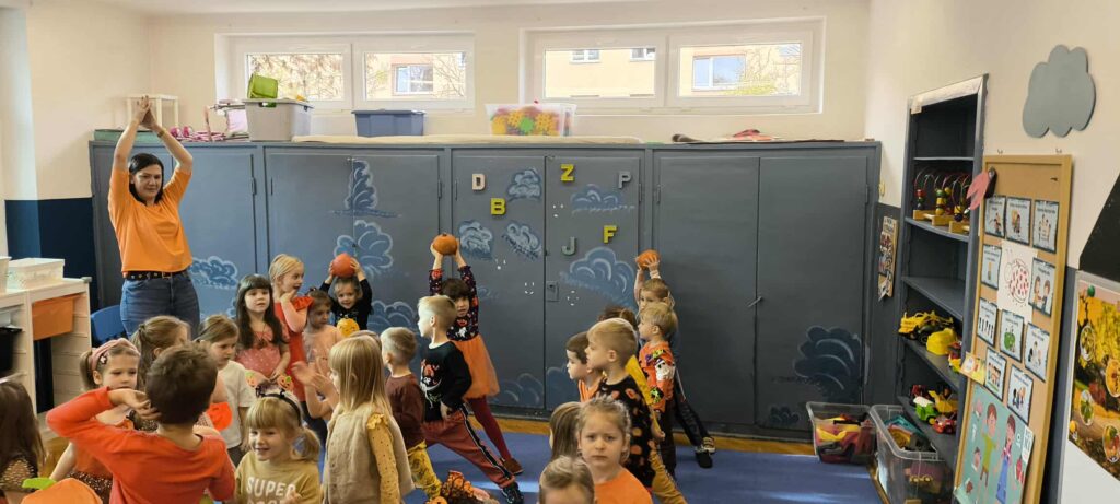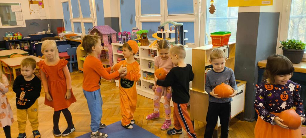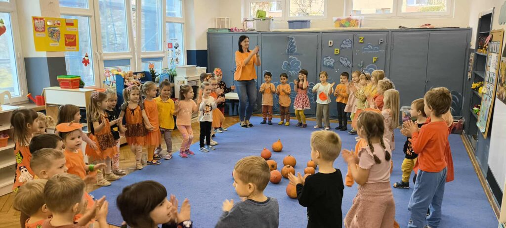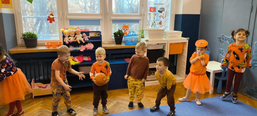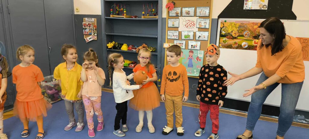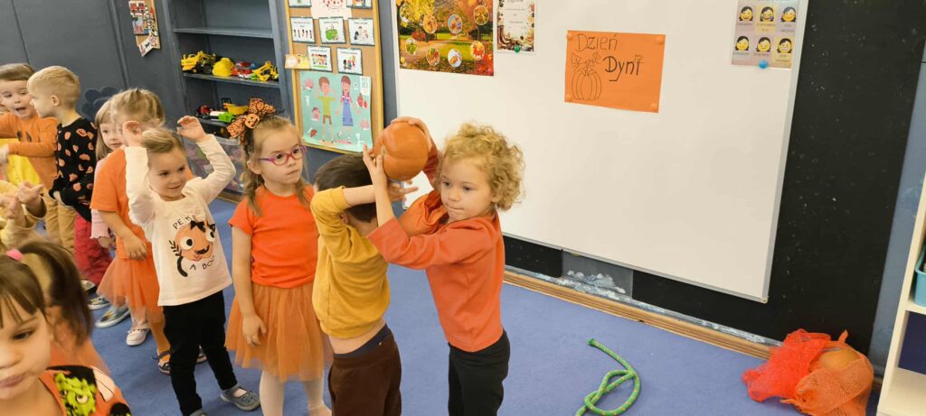 30 października obchodziliśmy dzień dyni. W tym dniu sala Biedronek zamieniła się w dyniową krainę, w której panował kolor pomarańczowy. Tego dnia wszystkie zabawy, które Panie przygotowały dla przedszkolaków były z wykorzystaniem dyni. Dzień zaczęliśmy od obejrzenia filmu o dyni, z którego zapamiętaliśmy przede wszystkim to, że dynia nie jest warzywem tylko owocem. Następnie przystąpiliśmy do zabaw, w których dynia odgrywała główną rolę – podawaliśmy sobie dynię na wiele sposobów, śpiewaliśmy piosenki o dyniach. Głównym celem spotkań Biedronek i Zajączków jest branie udziału w zawodach, dlatego i tym razem ich nie zabrakło. W czasie obchodów ,,Święta Dyni” nie mogło zabraknąć dań z dynią. Zadowolone miny dzieci, były dowodem na to, że był to wspaniały dzień 🙂 Joanna Owczarek Dagmara Rogóż Anita Ozimek