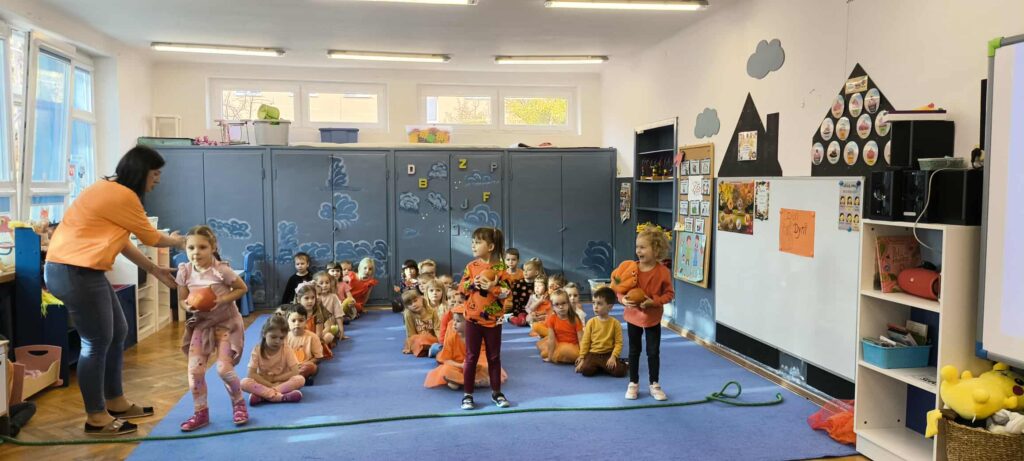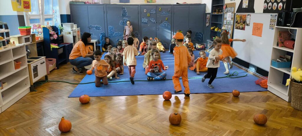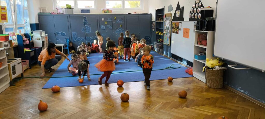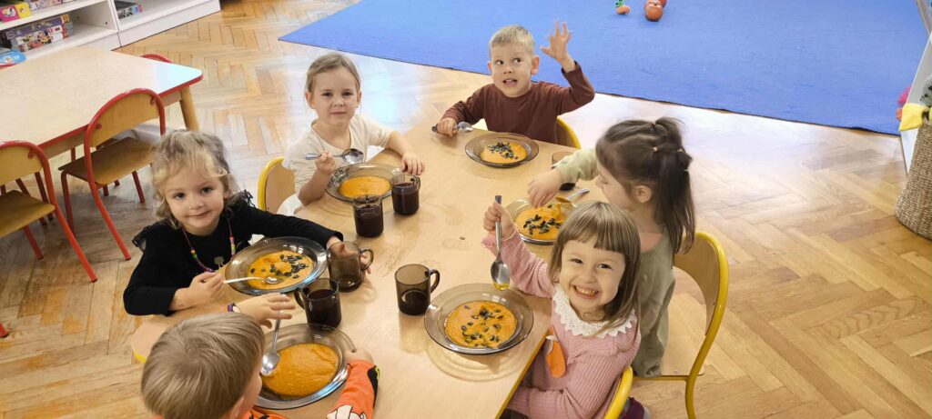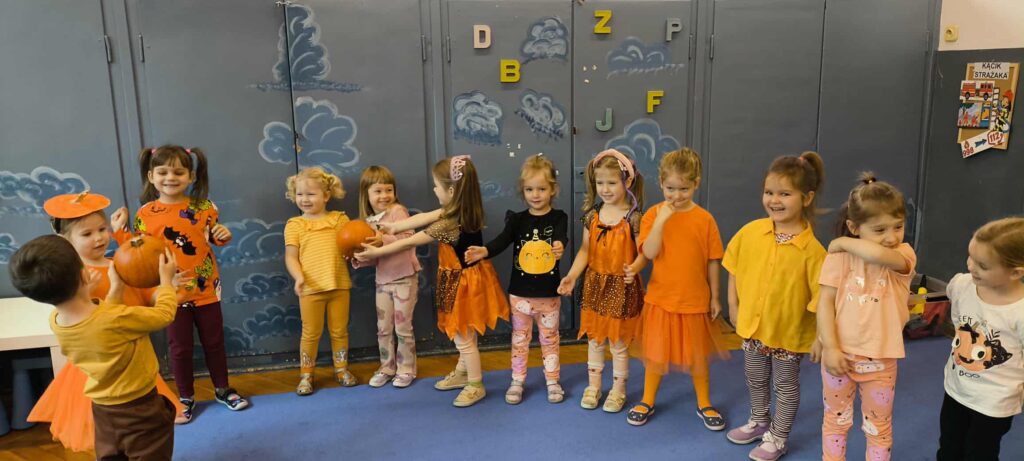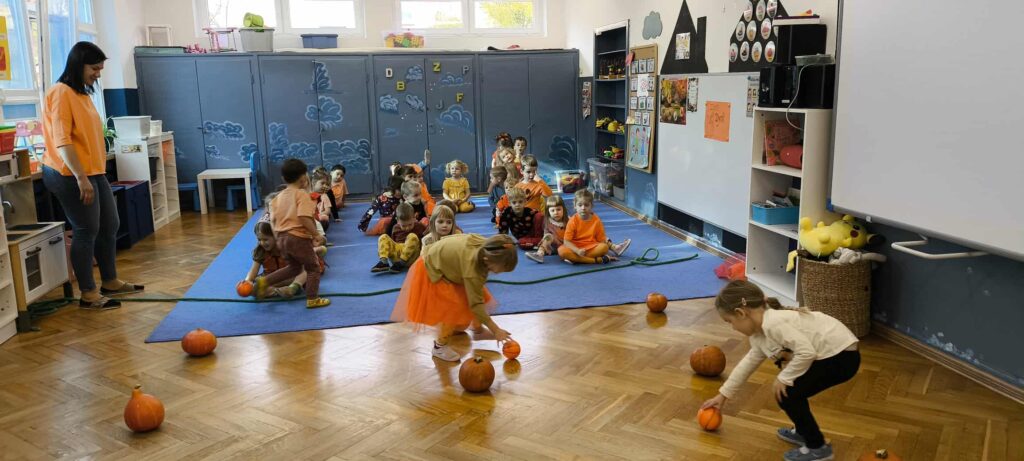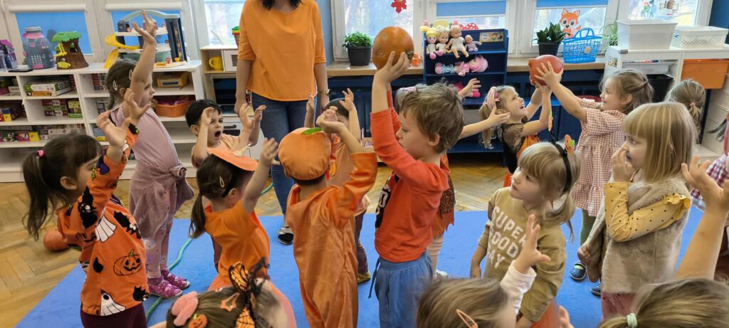 30 października obchodziliśmy dzień dyni. W tym dniu sala Biedronek zamieniła się w dyniową krainę, w której panował kolor pomarańczowy. Tego dnia wszystkie zabawy, które Panie przygotowały dla przedszkolaków były z wykorzystaniem dyni. Dzień zaczęliśmy od obejrzenia filmu o dyni, z którego zapamiętaliśmy przede wszystkim to, że dynia nie jest warzywem tylko owocem. Następnie przystąpiliśmy do zabaw, w których dynia odgrywała główną rolę – podawaliśmy sobie dynię na wiele sposobów, śpiewaliśmy piosenki o dyniach. Głównym celem spotkań Biedronek i Zajączków jest branie udziału w zawodach, dlatego i tym razem ich nie zabrakło. W czasie obchodów ,,Święta Dyni” nie mogło zabraknąć dań z dynią. Zadowolone miny dzieci, były dowodem na to, że był to wspaniały dzień 🙂 Joanna Owczarek Dagmara Rogóż Anita Ozimek