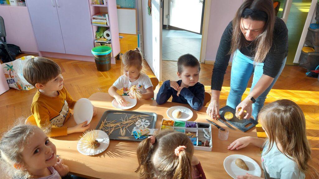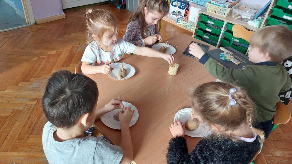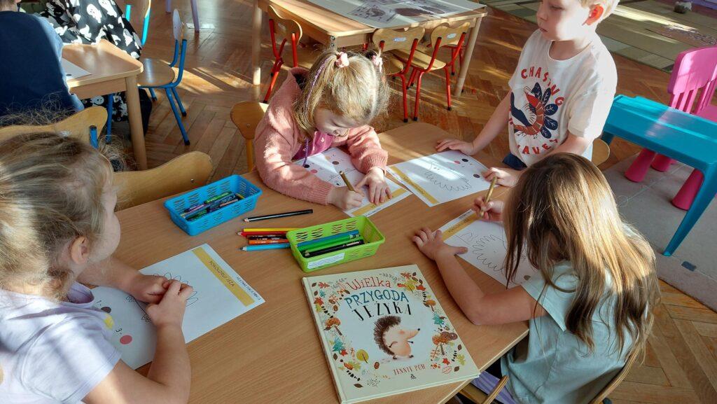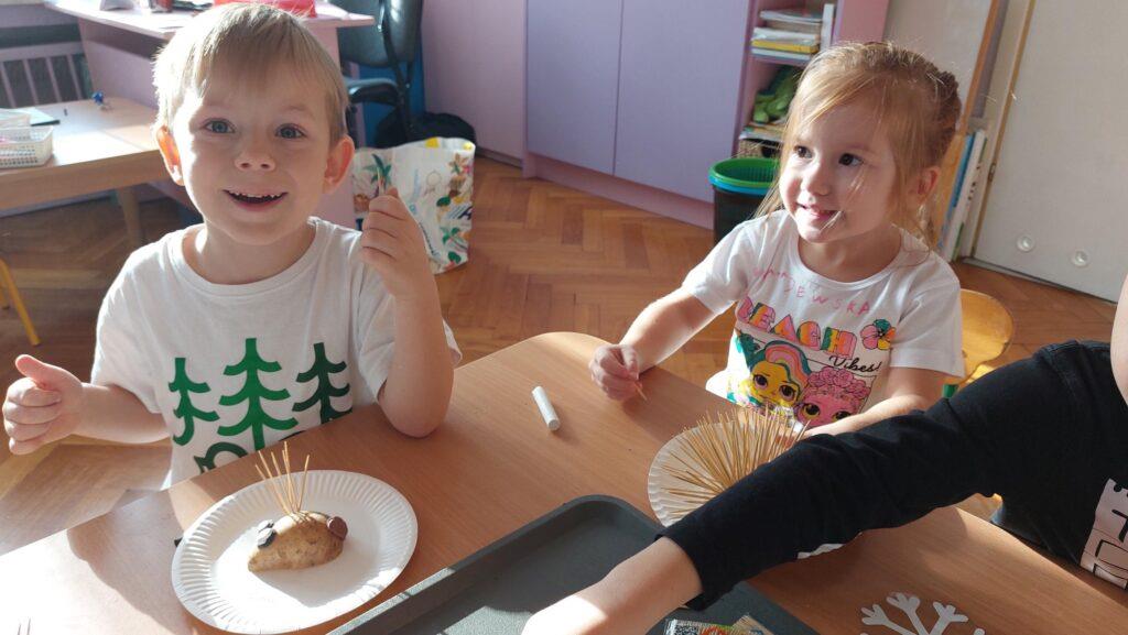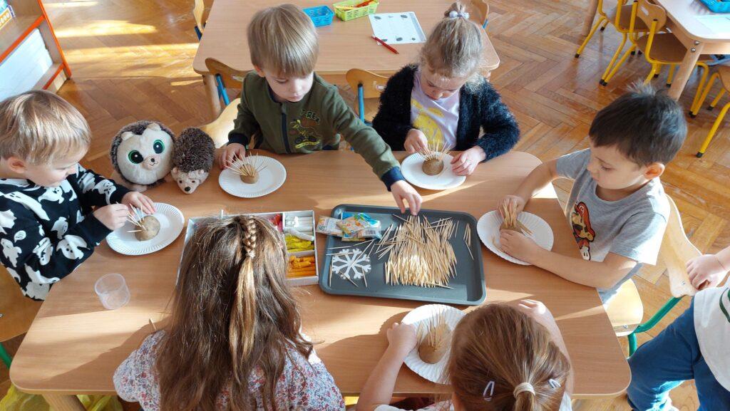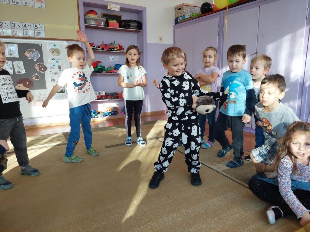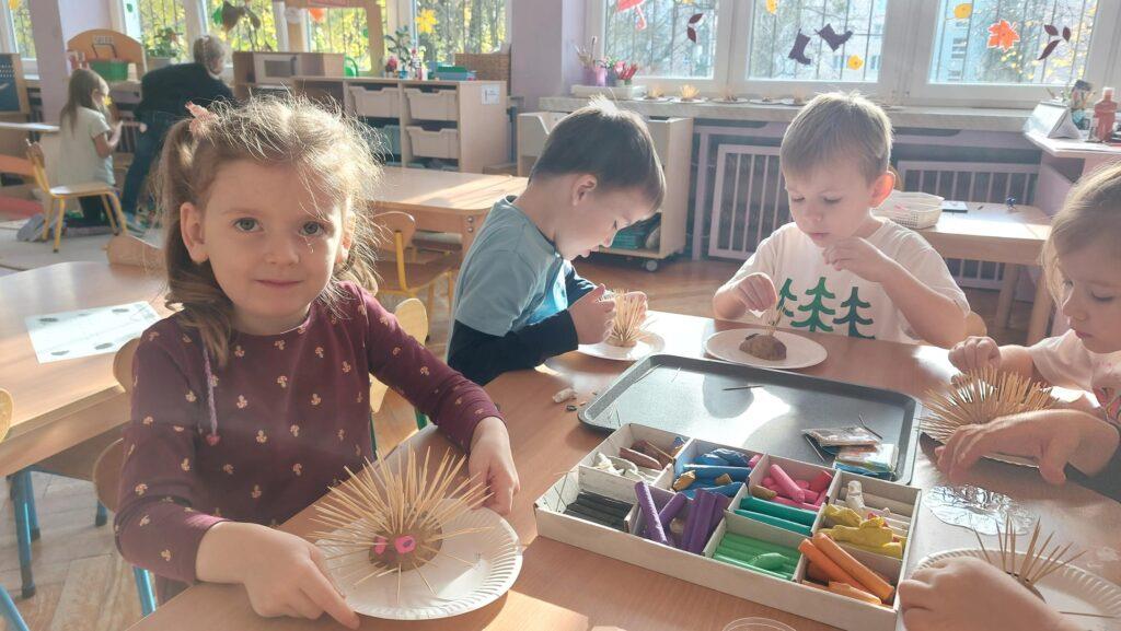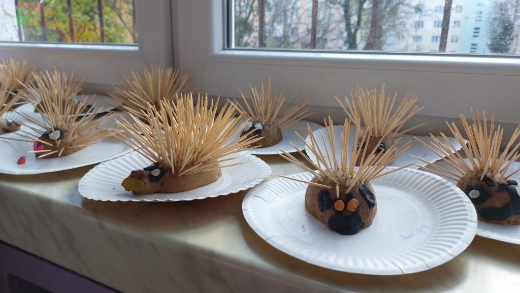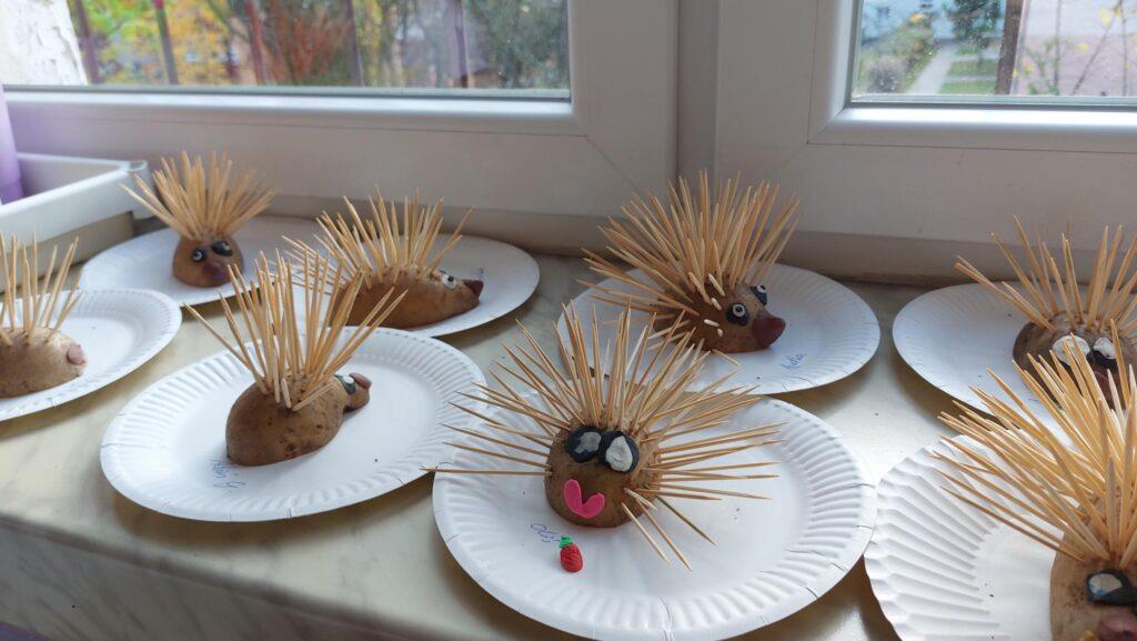 13 listopada obchodziliśmy w naszej grupie Dzień Jeża. Była to świetna okazja, by uświadomić najmłodszym jaką rolę w środowisku pełnią jeże, co im zagraża i jak im pomóc. Dzieci poszerzyły wiadomości dotyczące środowiska naturalnego jeży, ich wyglądu, sposobu poruszania się, odżywiania oraz w jaki sposób przygotowują się do zimy. Nie zabrakło w tym dniu zabaw matematycznych i ruchowych, które Zajączki uwielbiają. Czytaliśmy książki, których bohaterami były jeżyki oraz wykonaliśmy ciekawe prace plastyczne: grupowego jeża oraz jeżyki z ziemniaków i wykałaczek. Ten dzień przyniósł dzieciom wiele radości.