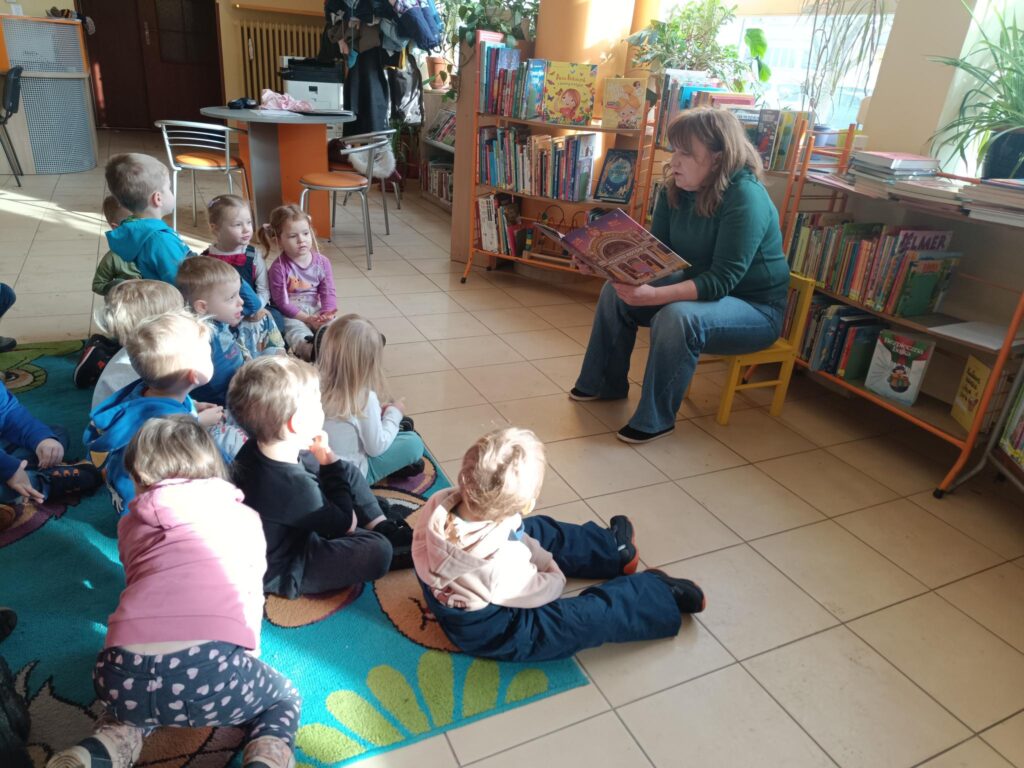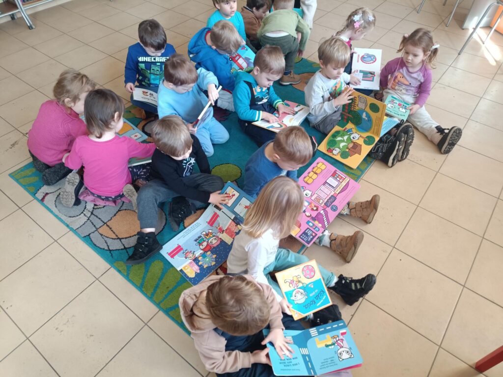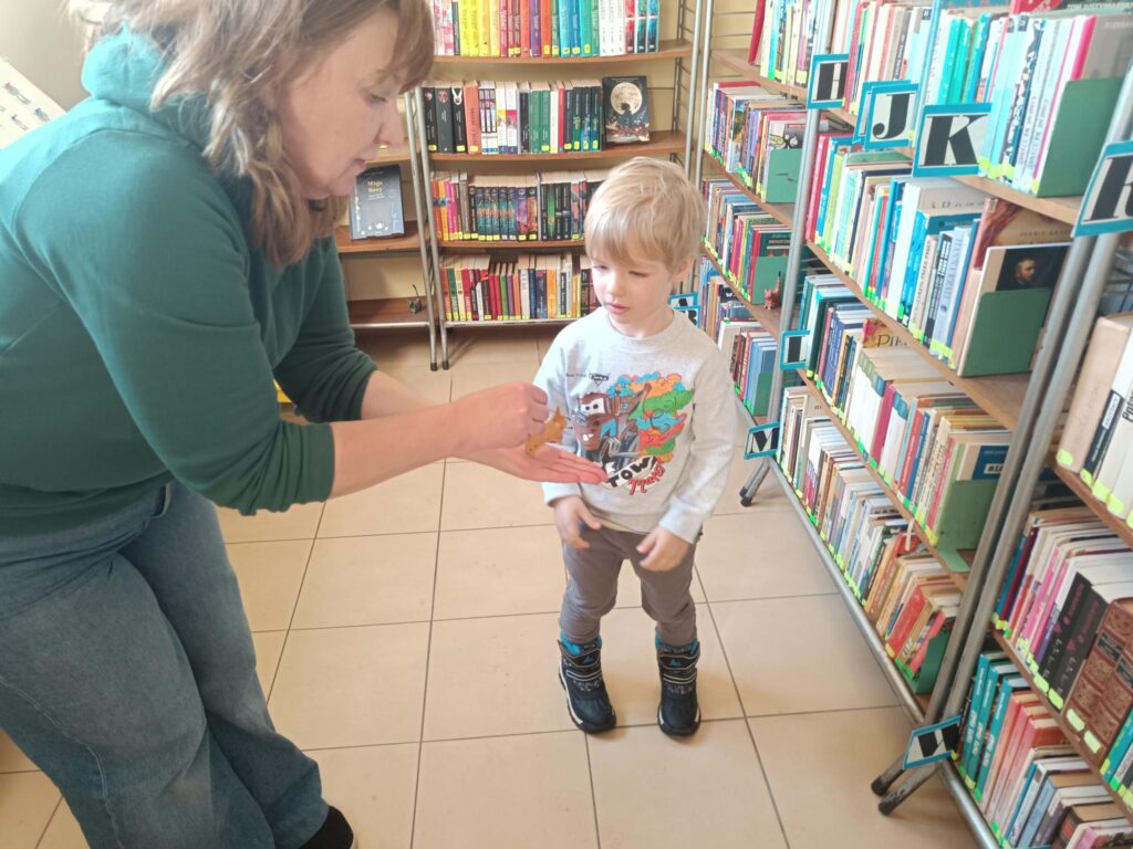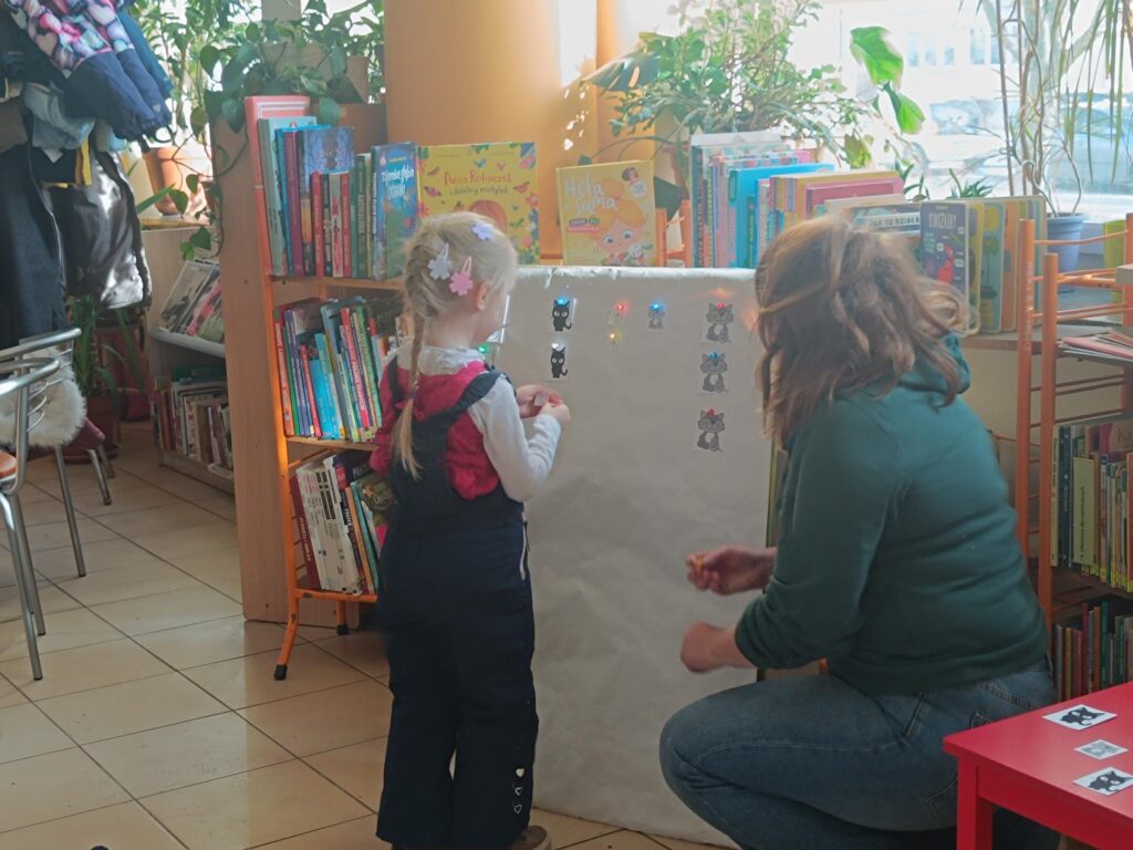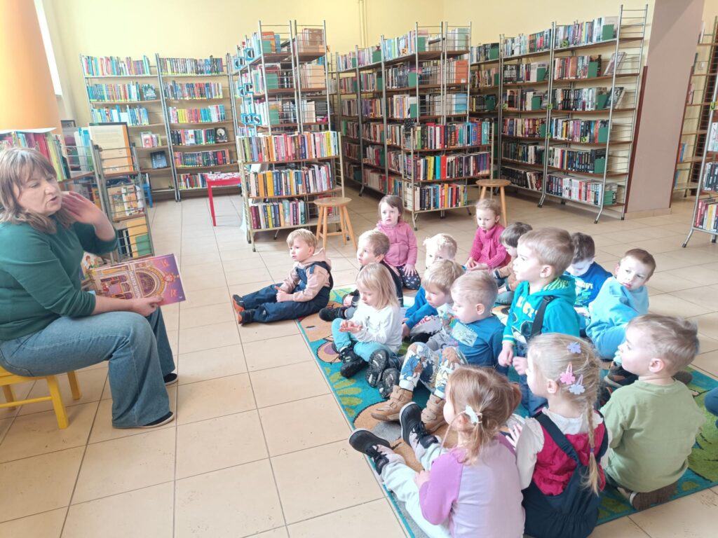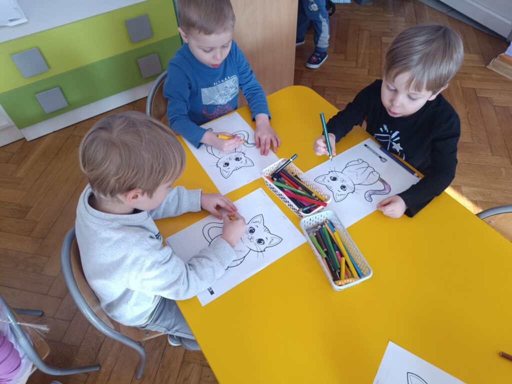 W piątek 21 lutego wybraliśmy się do zaprzyjaźnionej już biblioteki na zajęcia z okazji światowego dnia kota. Wspólnie wysłuchaliśmy utworu o przecudnych choć trochę niesfornych trzech kotkach. Dzieci zapoznały się z kocimi obyczajami oraz sposobem pielęgnacji i opieki jakiej wymagają. Następnie poszukiwaliśmy kotków, które były pochowane pomiędzy książkami. Przeliczaliśmy i określaliśmy wielkości różnych kotków. Oglądaliśmy książeczki o naszych tajemniczych zwierzątkach. Na pożegnanie otrzymaliśmy kolorowankę, którą zabraliśmy do przedszkola.