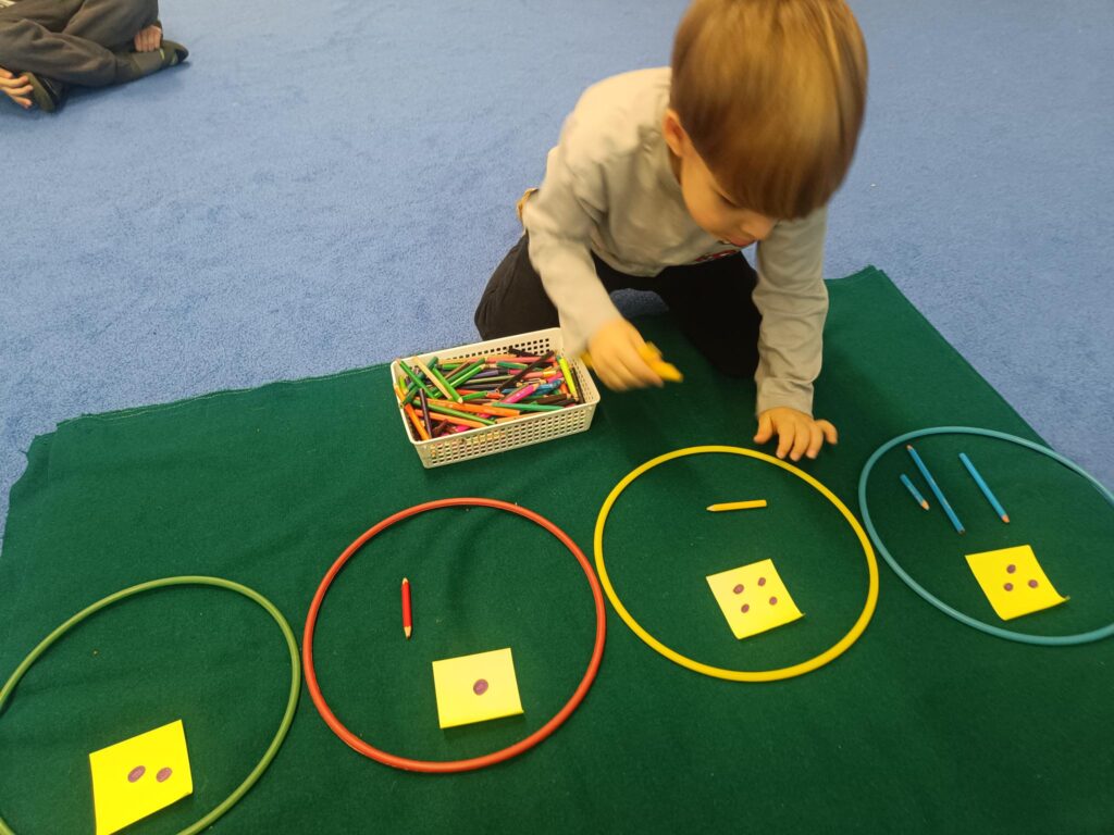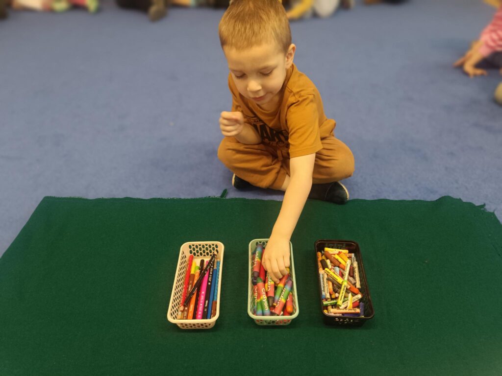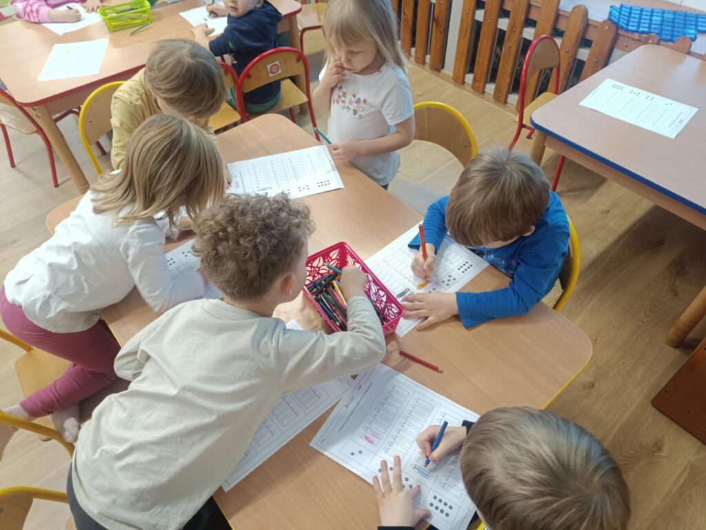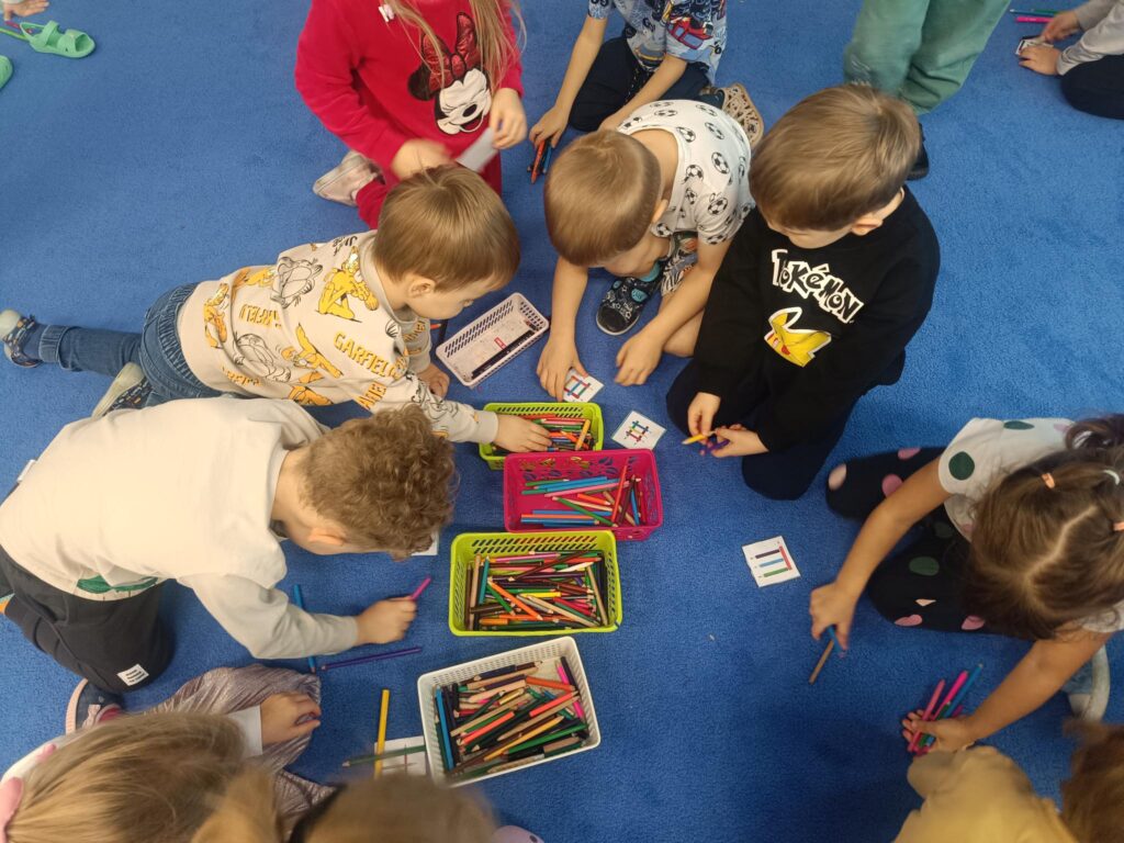 Pod koniec listopada przedszkolaki wspólnie świętowały „Dzień Kredki”. Podczas zajęć dzieci poznały różne rodzaje kredek – ołówkowe, świecowe, pastelowe i akwarelowe. Wysłuchały ciekawego opowiadania o kredce, które pokazało, że każda kredka ma swoją historię i znaczenie. Dzieci wysłuchały piosenki pt. „Kolorowe kredki”. Celem zabawy było zapoznanie i utrwalenie kolorów, kształcenie sprawności manualnych, doskonalenie umiejętności liczenia oraz reakcji na sygnał dźwiękowy. Na koniec uczestniczyły w zespołowym malowaniu kredkami, tworząc wspólne, kolorowe dzieła sztuki. Był to bardzo wesoły i kolorowy dzień!