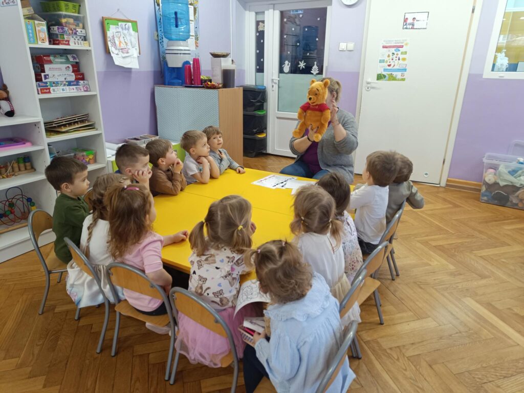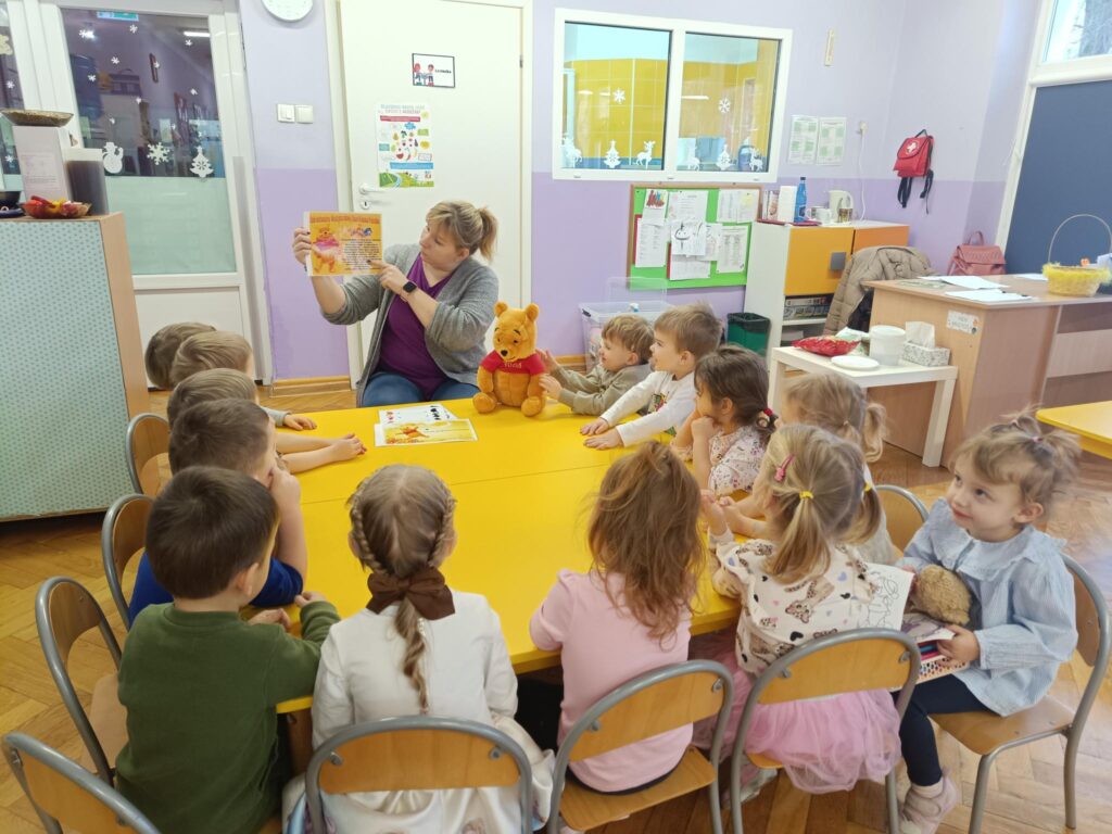 Dnia 17 stycznia grupa Misiów świętowała Międzynarodowy Dzień Kubusia Puchatka. Tego niezwykle przyjaznego, ale nieco niezdarnego puchatego misia, kochającego miodek, znają i uwielbiają dzieci na całym świecie. Kubuś w prosty sposób uczy wielu życiowych mądrości oraz pokazuje, że warto cieszyć się z nawet najmniejszych rzeczy. Jest życzliwy dla innych, a przyjaźń i pomaganie są dla niego bardzo ważne. Przedszkolaki miały okazję dowiedzieć się jaka była historia powstania książki o przygodach Puchatka. Próbowaliśmy przysmak naszego ulubieńca. Potem wybraliśmy się do zaprzyjaźnionej biblioteki na wspólną zabawę z naszym przemiłym Kubusiem i jego przyjaciółmi. Były różne zabawy, nie zabrakło również czytania książeczki o Puchatku. To był prawdziwie Kubusiowy dzień! Uśmiech zagościł na buzi każdego przedszkolaka, co można zauważyć na zdjęciach naszej galerii.