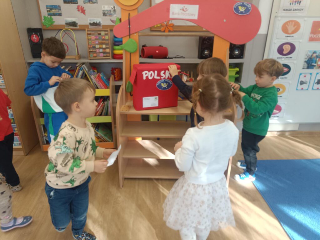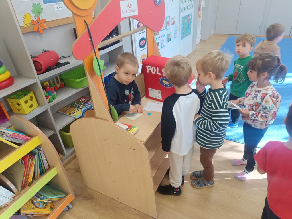 20 października w naszej grupie obchodziliśmy Dzień Listonosza. Dzieci poznały znaczenie symboli Poczty Polskiej oraz dowiedziały się o ciekawej pracy listonosza doręczającego listy, przesyłki i paczki prosto do adresatów. Wysłuchały wiersza „ Pan Listonosz”. Poznały drogę listu „Od nadawcy do adresata”, oglądały przykładowe listy. Wcieliły się również w rolę pracownika poczty, sprzedając koperty i znaczki. Następnie tworzyły kartkę pocztową oraz naklejały znaczki. Po południu przedszkolaki wybrały się do Urzędu Pocztowego, aby wysłać list. Dzień był pełen wrażeń oraz dobrej zabawy.