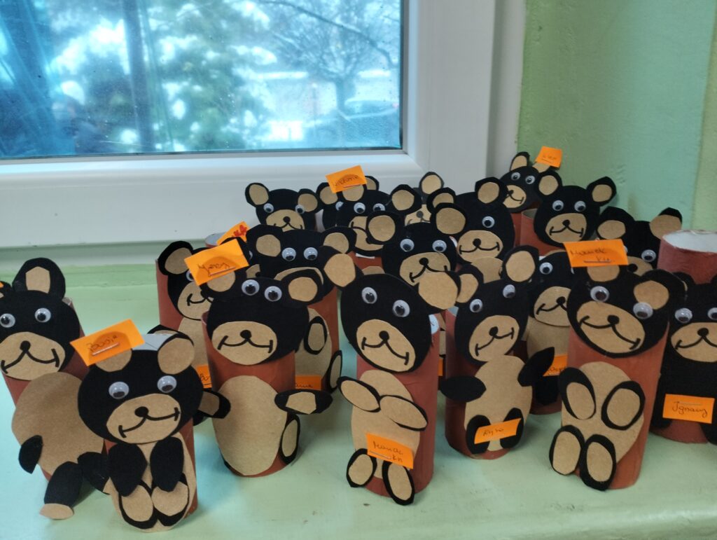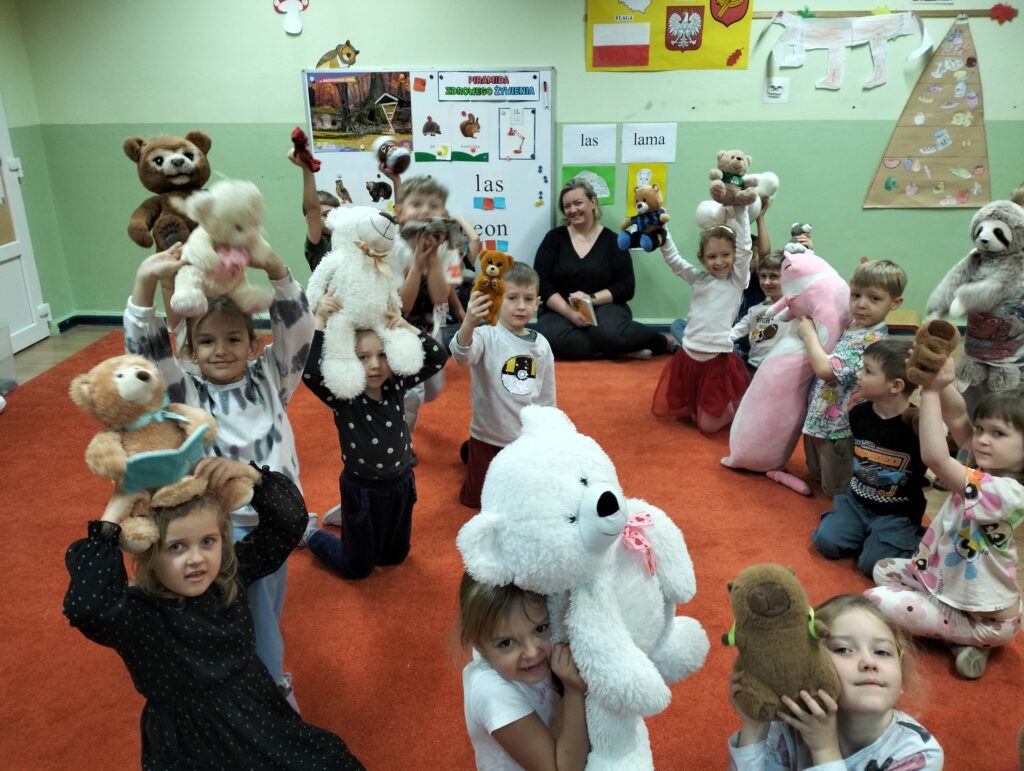 25 listopada swoje święto obchodzi Pluszowy Miś, najmilsza zabawka, najlepszy przyjaciel dzieci i niezastąpiona przytulanka przy zasypianiu. Tego dnia wszystkie dzieci przyniosły do przedszkola swoje ukochane przytulanki. Na dzieci i ich misie czekało wiele atrakcji. Sowy poznały historię święta, próbowały misiowych przysmaków, bawiły się przy misiowych piosenkach. Nie zabrakło też konkursów, quizu i zabaw matematycznych. Na koniec Sowy wykonały swoje małe misie z papierowych rolek. To był bardzo udany dzień 🙂