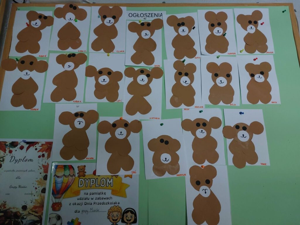 25 Listopada przypada Dzień Pluszowego Misia. Dzieci z grupy Misiów wzięły udział w obchodach tego ważnego święta. Każde dziecko przyszło do przedszkola ze swoim „milutkim przyjacielem”. Obecne były misie małe, średnie, duże, brązowe, białe, niebieskie, bajkowe. Pluszowe misie uczestniczyły we wspólnych zabawach i tańcach z dziećmi. Przedszkolaki wykonały wiele misiowych zadań, z którymi poradziły sobie znakomicie! Ten dzień wywołał u dzieci wiele uśmiechów i radości.
