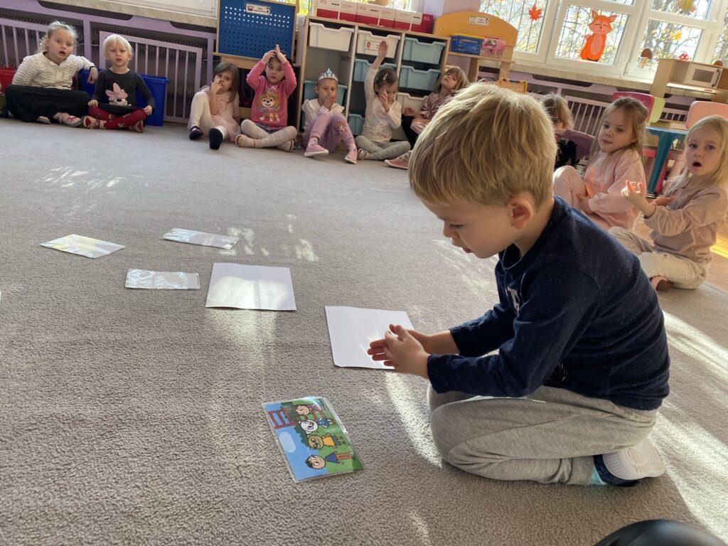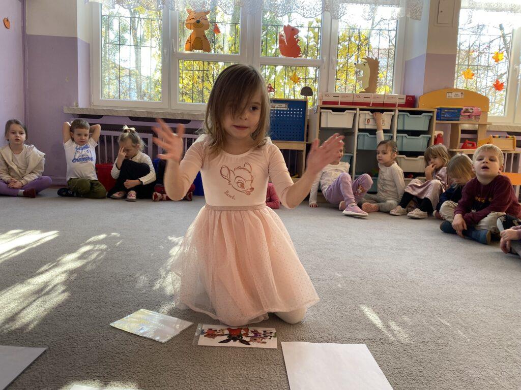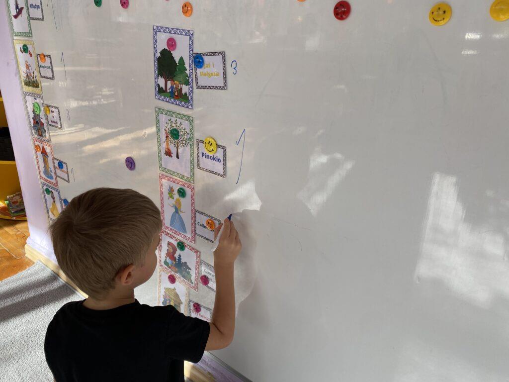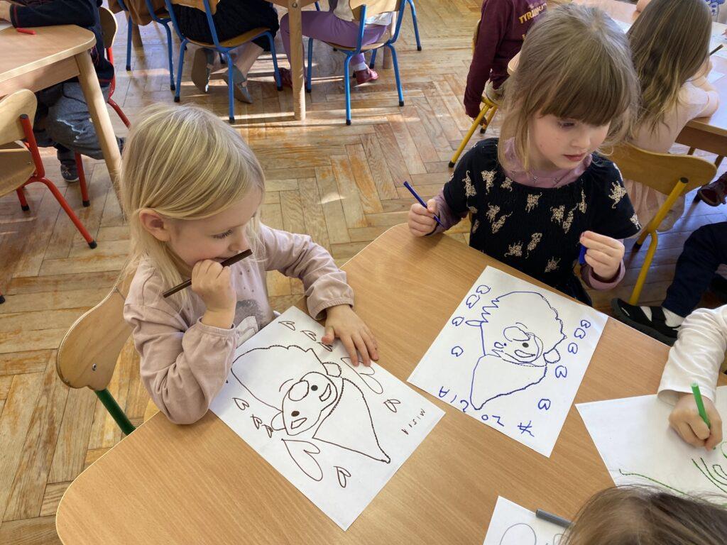 „Podczas Dnia Postaci z Bajek grupa Zajączków przypominała sobie wszystkie bajki, jakie czytaliśmy lub oglądaliśmy. Każdy miał okazję opisać swoją ulubioną postać z bajki. Tworzyliśmy zagadki – graliśmy w kalambury o tej tematyce. Dokonywaliśmy analizy sylabowej na tytułach bajek. Postacie z bajek służyły nam również przy zabawach matematycznych.”