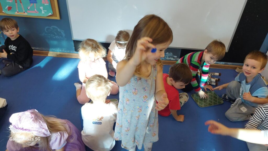 Żabki i Biedronki wspólnie świętowały Dzień Postaci z Bajek, uczestnicząc w „bajkowych” zabawach. Opowiadały o ulubionych bajkowych bohaterach i brały udział w wesołych zabawach tematycznych. Wspólnie rozwiązywaliśmy bajkowe zagadki dotyczące Reksia, Czerwonego Kapturka, Królewny Śnieżki, Kubusia Puchatka i bajki Frozen. Degustowaliśmy miodek, szliśmy ścieżką do domu Babci Kapturka, bawiliśmy się sportowo, muzycznie i sensorycznie. Tańczyliśmy przy znanych piosenkach z filmów animowanych oraz zdobywaliśmy „diamenty” zamrożone w kulkach lodu przez Else. Kolorowaliśmy ulubione postacie z bajek i relaksowaliśmy się z naszymi ulubionymi książkowymi bohaterami. Dzień Postaci z Bajek to wspaniała zabawa oraz okazja, by przypomnieć dzieciom o wartościach i morałach, jakie niosą ze sobą bajki. Małgorzata Witkowska Dorota Żułtowska Joanna Owczarek