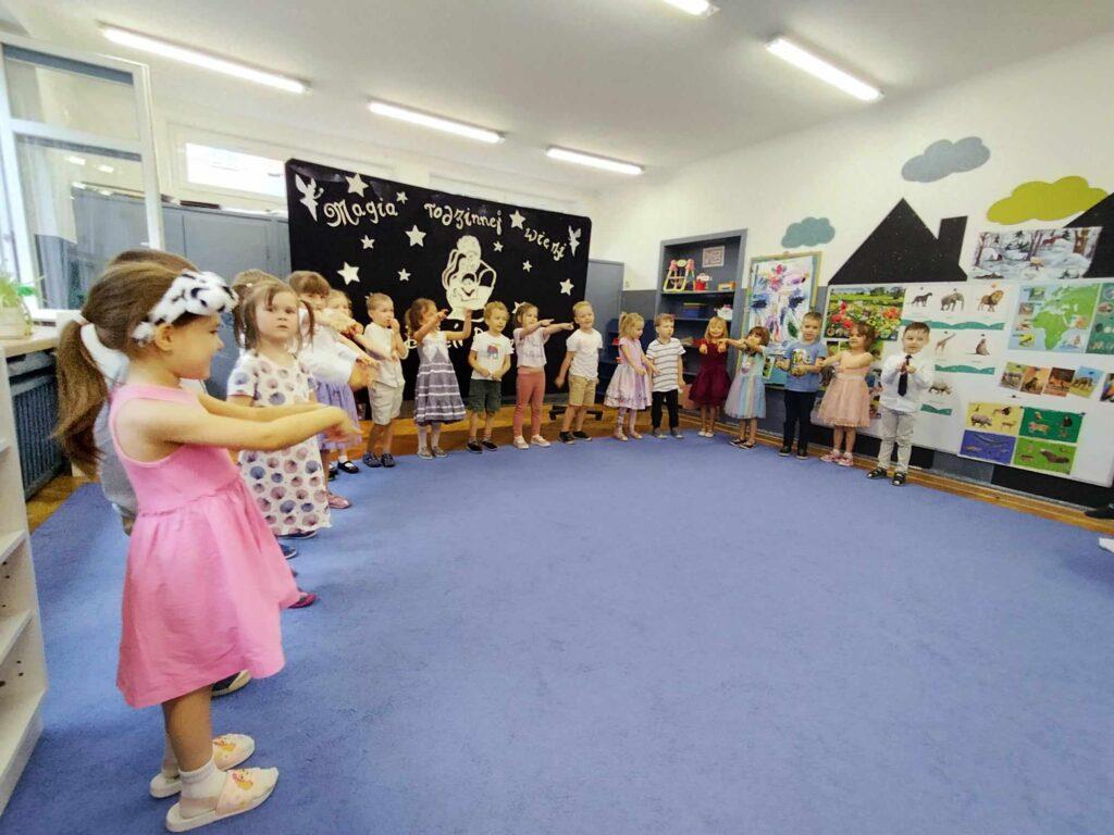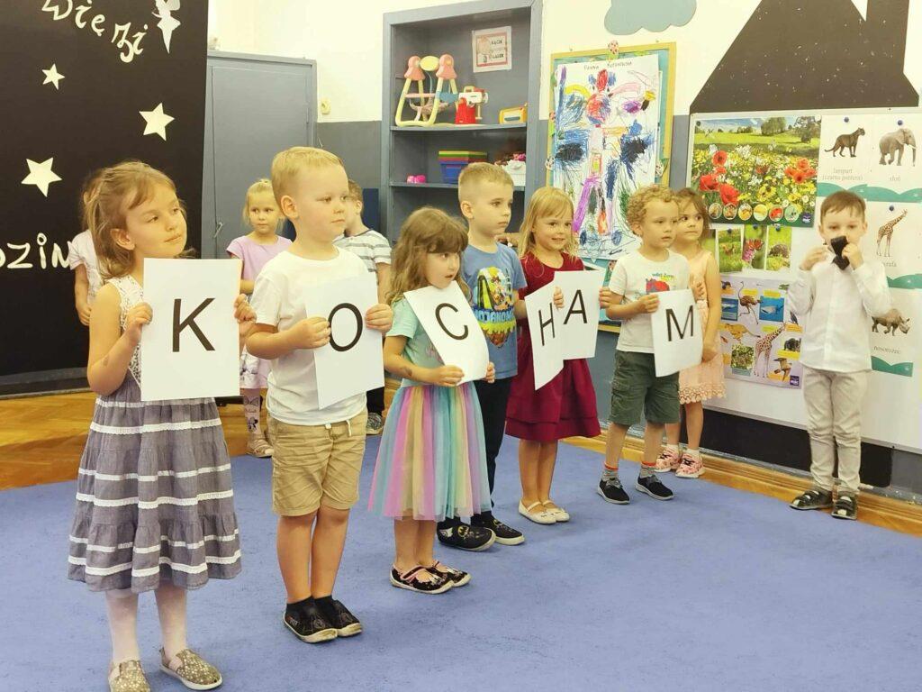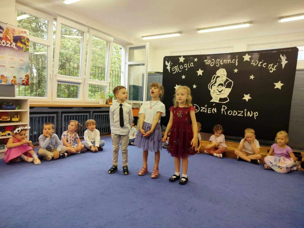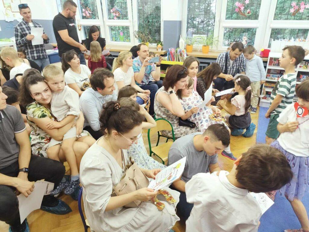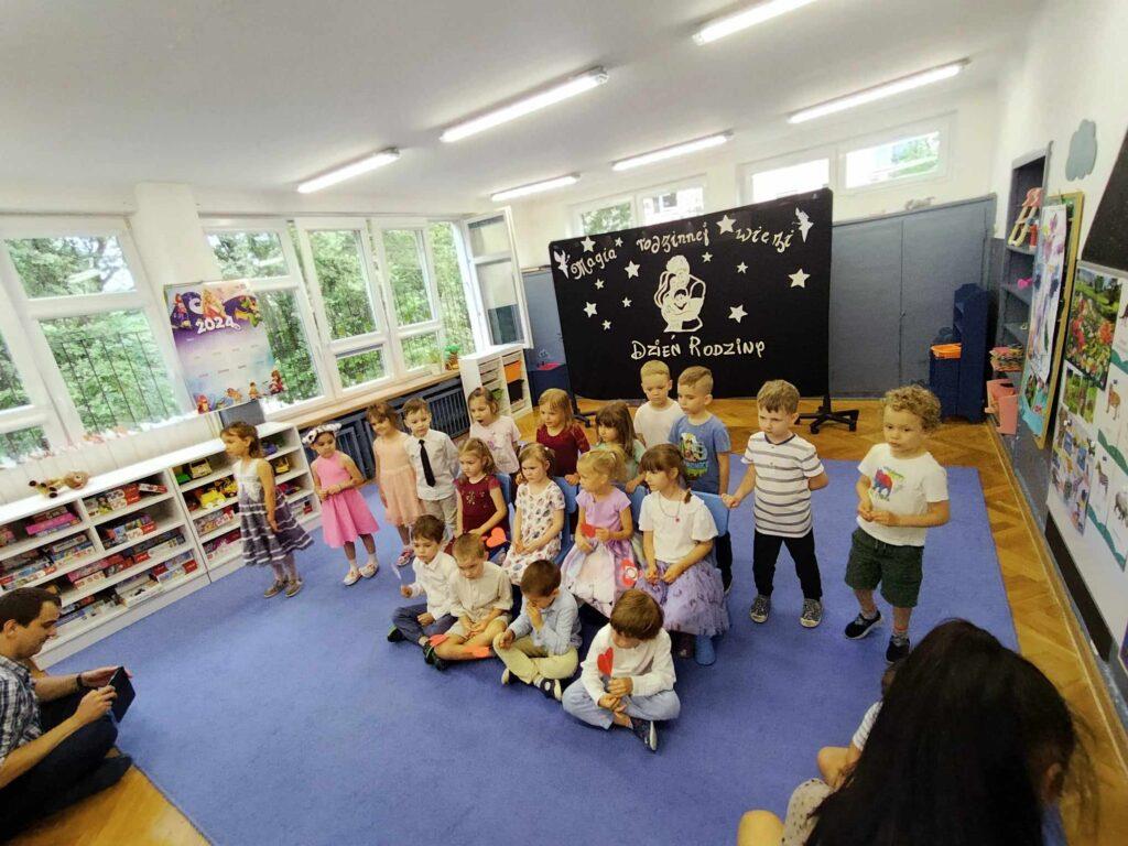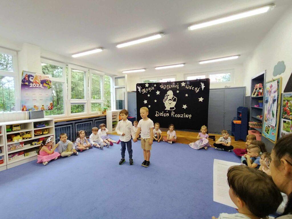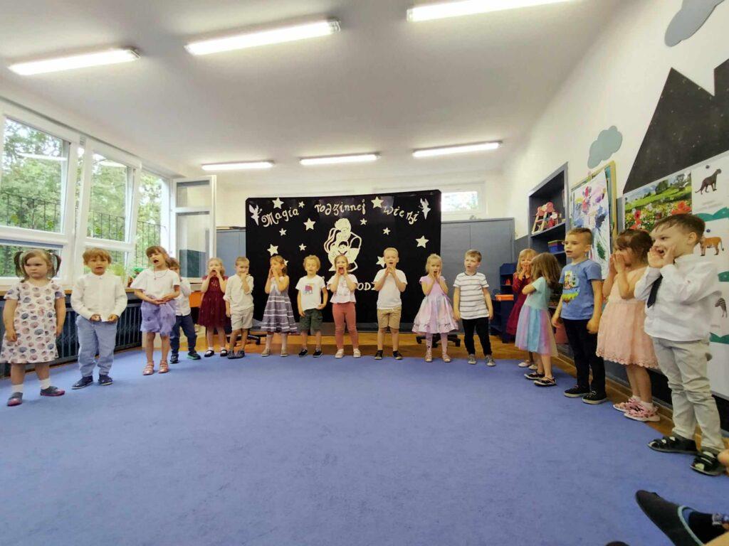 22. maja odbyła się w naszej grupie uroczystość z okazji Dnia Rodziny. Spotkaliśmy się, aby świętować nadchodzący Dzień Mamy oraz nieco bardziej odległy Dzień Taty. Dzieci przygotowały krótki program artystyczny podczas, którego wierszem i piosenką mówiły, jak wspaniałych mają rodziców i jak bardzo dziękują im za cały trud wychowania. Po występie Biedronki wręczyły swoim rodzicom własnoręcznie przygotowane podkowy na szczęście oraz laurki z wywiadami o swoich rodzicach.