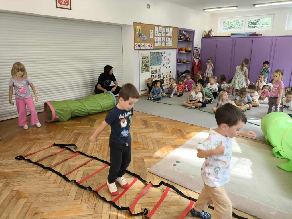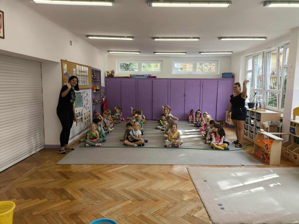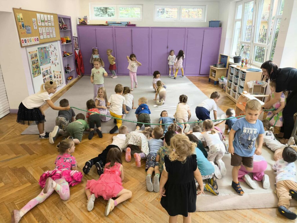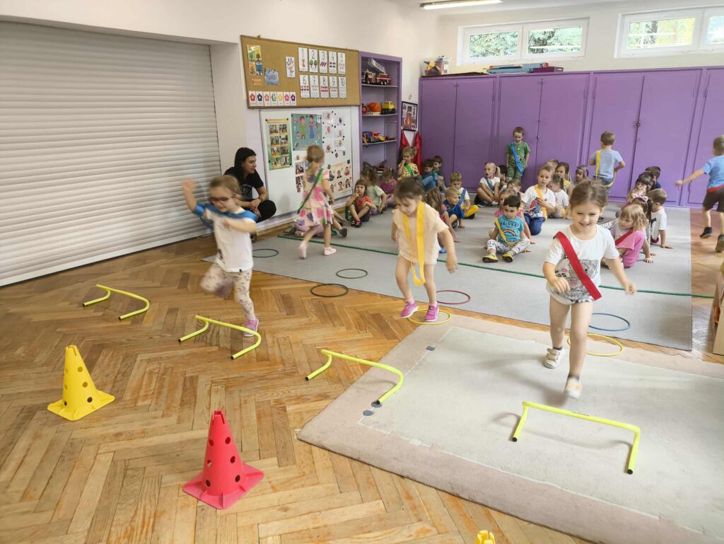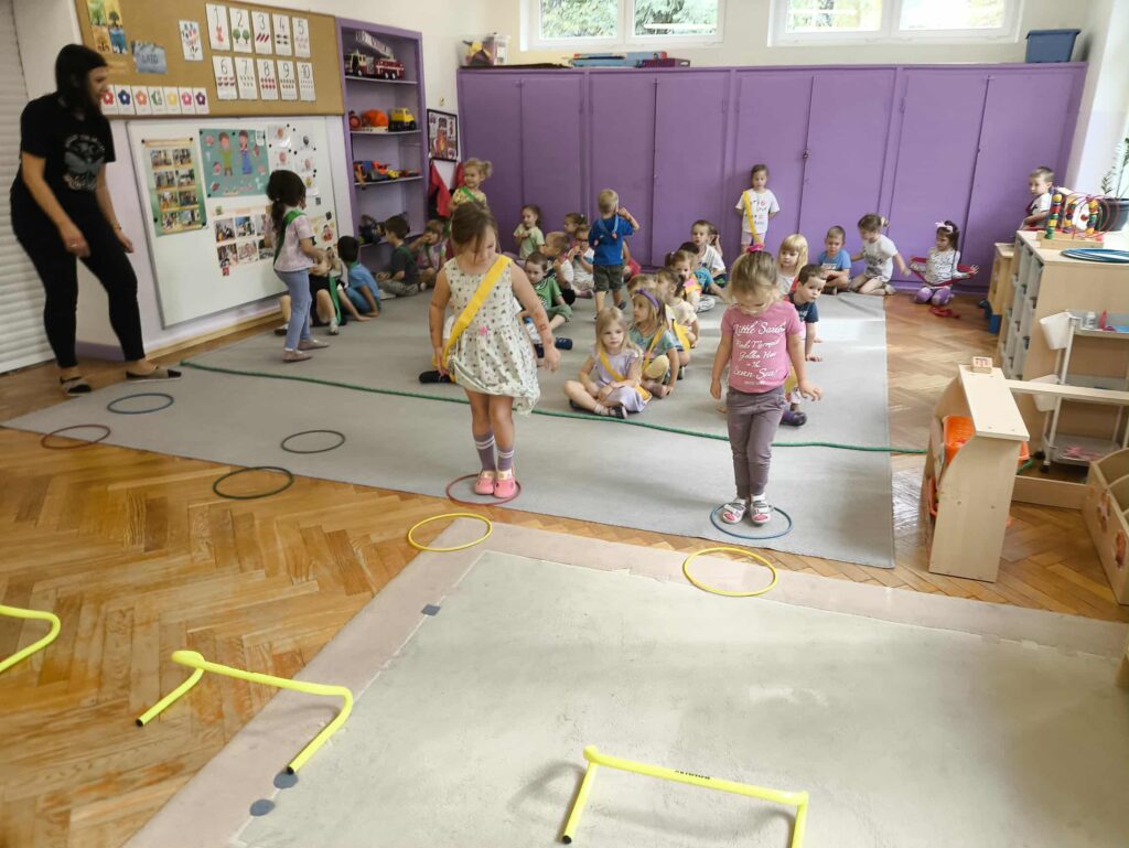 Sport to zdrowie, każdy przedszkolak Ci o tym powie! 14 września obchodzimy Narodowy Dzień Sportu. Z tej okazji dzieci z grupy Biedronek i Zajączków spotkały się aby wspólnie celebrować ten dzień. Rozpoczęliśmy od krótkiej rozgrzewki przy której świetnie się bawiliśmy. Następnie zostaliśmy podzieleni na cztery zespoły i rozpoczęliśmy sportowe rywalizacje. Panie przygotowały dla nas konkurencje, które wymagały od nas skupienia oraz szybkości. Na koniec czekał na nas tor przeszkód oraz ulubiona przez przedszkolaków zabawa Limbo. To był bardzo aktywny i wesoły dzień 🙂 Joanna Owczarek Dagmara Rogóż