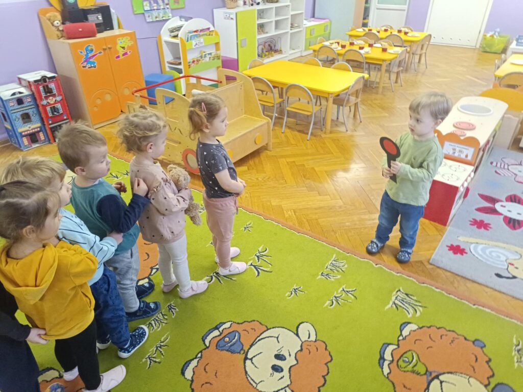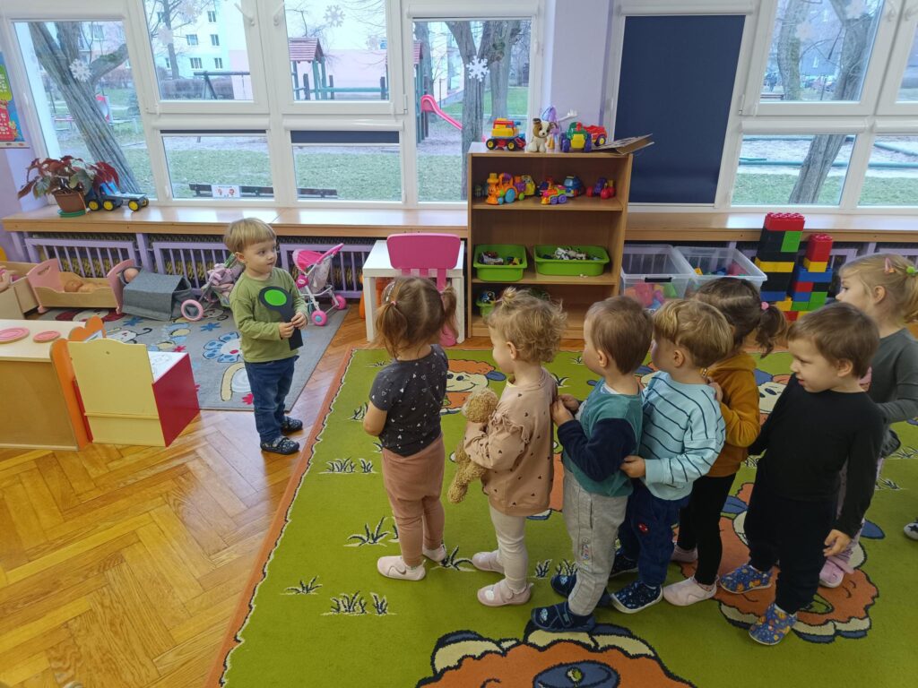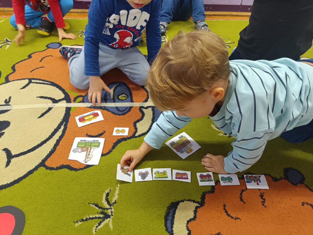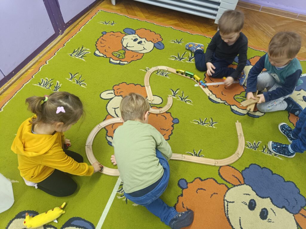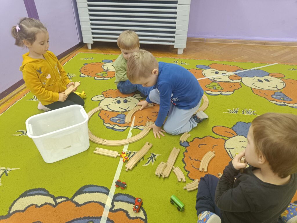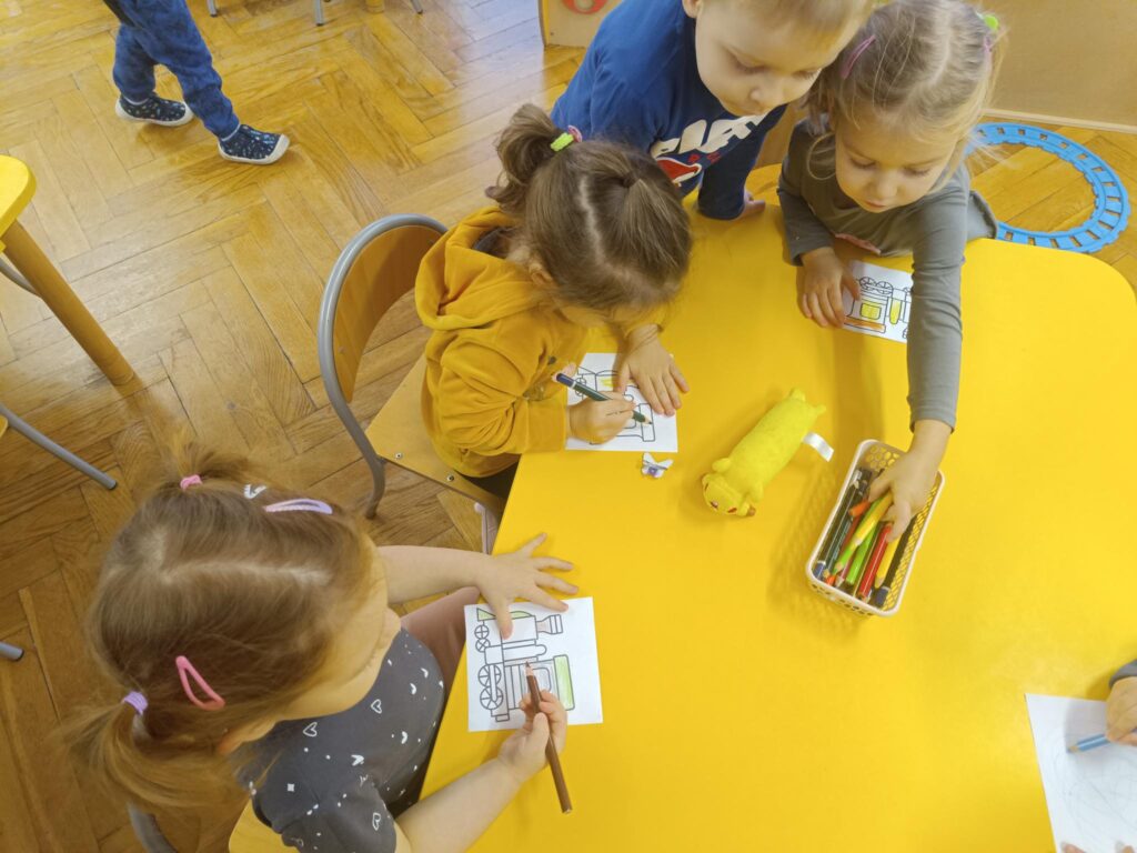 W listopadzie obchodziliśmy Dzień Tramwajarza i Kolejarza. Podczas zajęć poznaliśmy nie tylko na czym polega praca kolejarza, czy motorniczego, ale też jakie zasady bezpieczeństwa obowiązują w pociągu, na peronie, w tramwaju czy na przystanku. Dzieci dzieliły się swoimi spostrzeżeniami i opowiadały o podróżach pociągiem i tramwajem. Wiele radości sprawiły im zabawy konstrukcyjne- budowanie drewnianych torów i swobodne zabawy nimi. Misie wysłuchały wiersza „Lokomotywa” Juliana Tuwim, a następnie ćwicząc pamięć próbowaliśmy odnaleźć co znajduje się w wagonach. Uczestniczyliśmy w zabawach ruchowych przy muzyce oraz wybraliśmy się w podróż pociągiem.