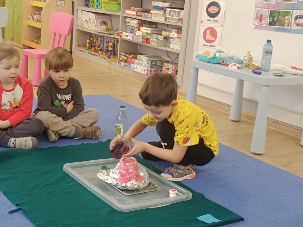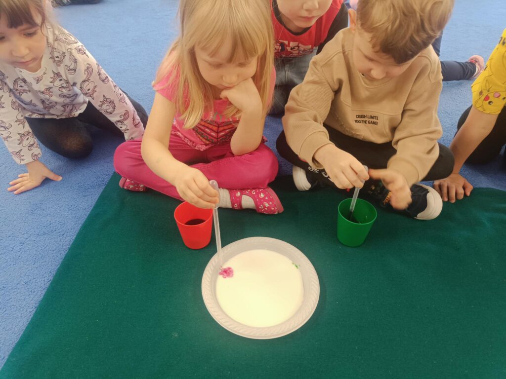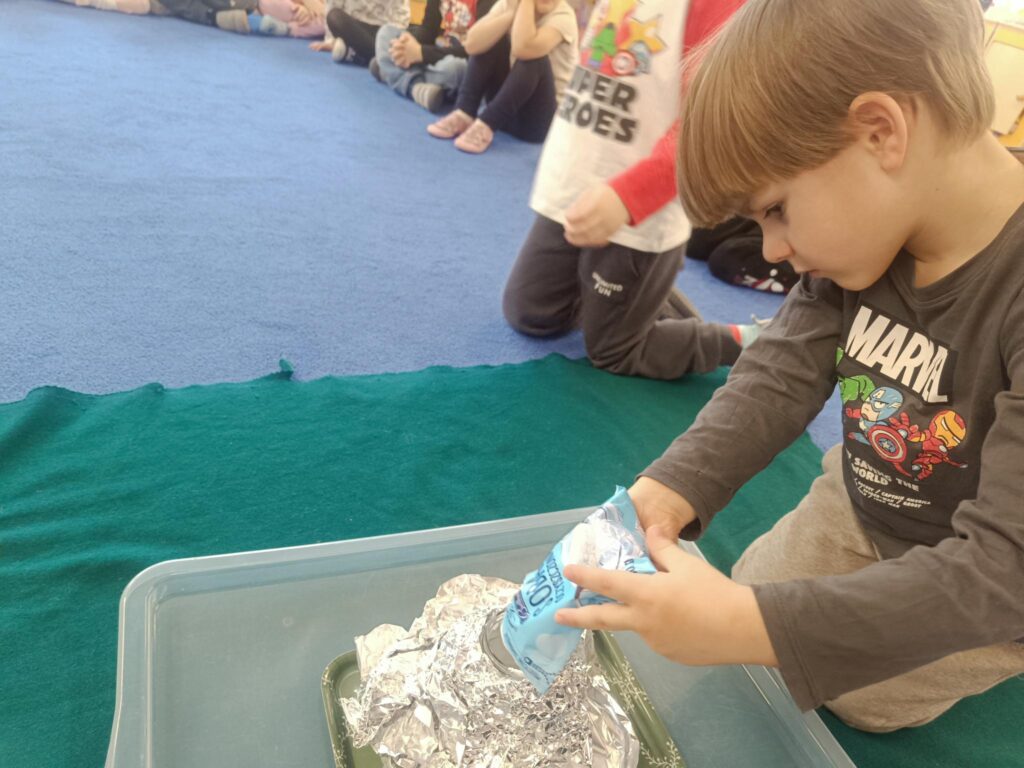 Za nami bardzo przyjemny i odkrywczy tydzień. Eksperymenty to zawsze wielka naukowa przygoda dla przedszkolaków. Dzieci mogły je przeprowadzać w sposób samodzielny obserwując przy tym reakcje jakie zachodzą. Eksperymenty są bardzo ważne w zaspokajaniu naturalnej ciekawości przez dzieci w procesie poznawania otaczającego świata. Pozwalają na doświadczanie nowych wrażeń, odkrywanie nieznanych dotychczas właściwości przedmiotów i zjawisk, prowadzenie obserwacji oraz wyciąganie trafnych wniosków.