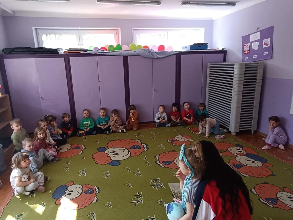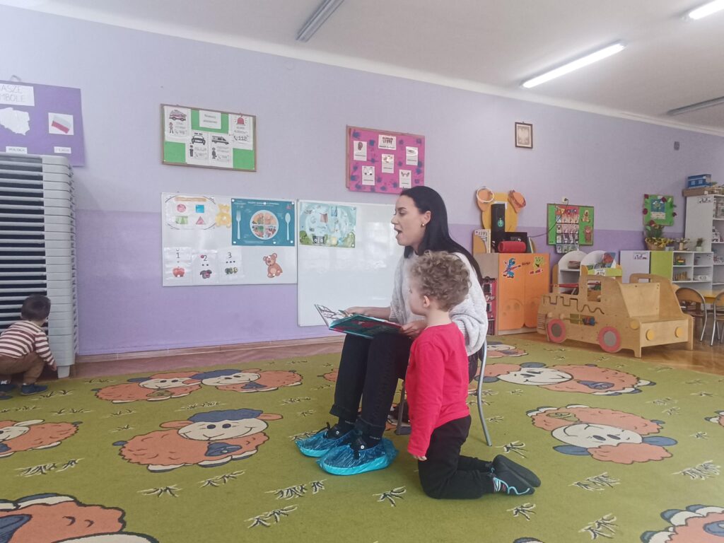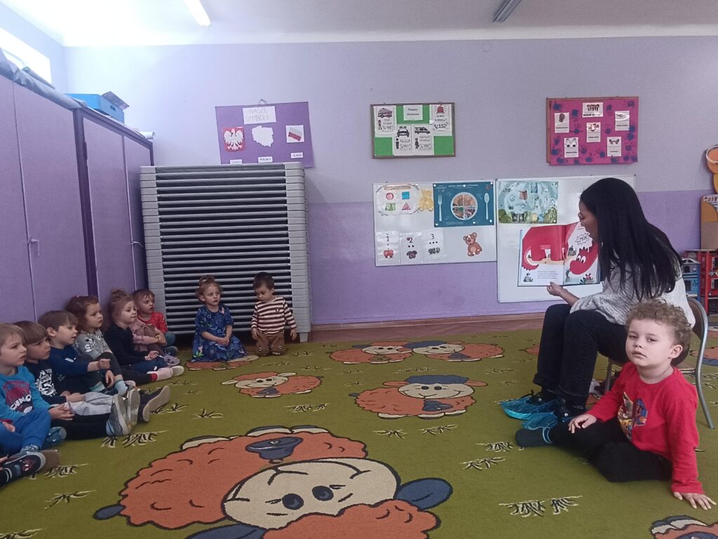Za nami kolejne czytanie w grupie misiów. Odwiedziły nas mamy: Wiktorii, Kuby i Feliksa. Misie z ogromnym zaciekawieniem wysłuchały przeczytane książeczki. Mama Wiktorii przeczytała nam książkę pt. ,,Złotowłosa i trzy misie”. Opowieść o małej dziewczynce, która szuka swojego miejsca . Pewnego dnia trafia do domu trzech misiów. Próbuje trzech owsianek (misek owsianki), trzech krzeseł i trzech łóżek, zanim znajdzie po jednym z każdego, które idealnie do niej pasuje. Mama Kuby przeczytała książeczkę ,,Chcę być dinozaurem”. Opowieść o przyjaźni kurczaczka Czesia i dinozaura Stefana to urocza, pełna humoru historia, przekazująca, że ważne jest bycie sobą, ponieważ przyjaciele kochają nas właśnie za to, jacy jesteśmy. Z kolei mama Feliksa przeczytała ,,Kociaki łobuziaki i mydło brudzidło”. Książka opowiada o Bazylku, kocim brudasie, który za nic nie chce się umyć. Jego futerko to prawdziwa kolekcja różnych substancji – od kurzu i kłaków przez resztki jedzenia aż po farbę.