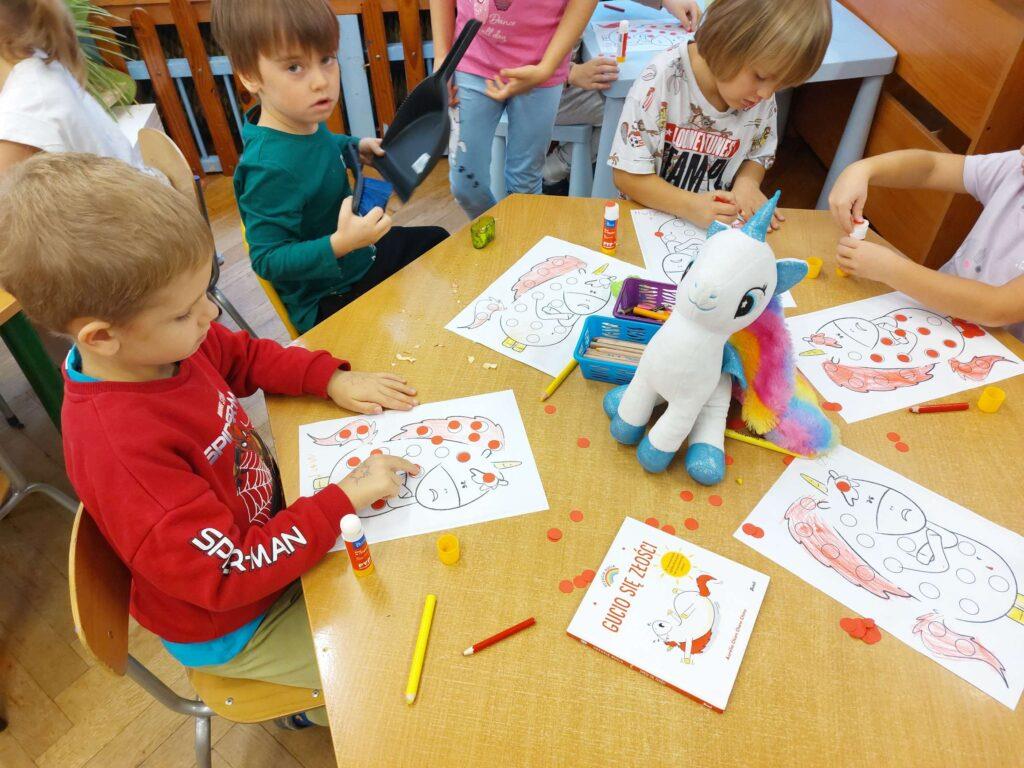W ramach Międzynarodowego Projektu Edukacyjnego „Kolorowe Uczucia Gucia” Sowy poznały kolejną emocję- ZŁOŚĆ . Po wysłuchaniu opowiadania „Gucio się złości” wyjaśniliśmy sobie czym jest złość, co ją wywołuje i jak sobie z nią radzić. Następnie ćwiczeniami oddechowymi przegoniliśmy złość i wykonaliśmy pracę plastyczną.