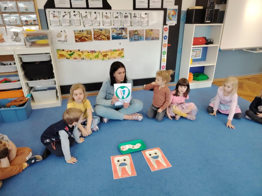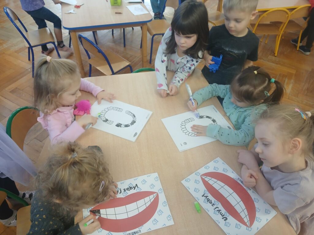 Zapoznaliśmy się z podstawowymi zasadami dbania o higienę jamy ustnej. Wiemy, że zęby są częścią układu pokarmowego, są ważne i zbierają się na nich bakterie, które trzeba usunąć. Rozmawialiśmy o tym, że zdrowe jedzenie to zdrowe zęby i dentysta pomaga w dbaniu o zęby.