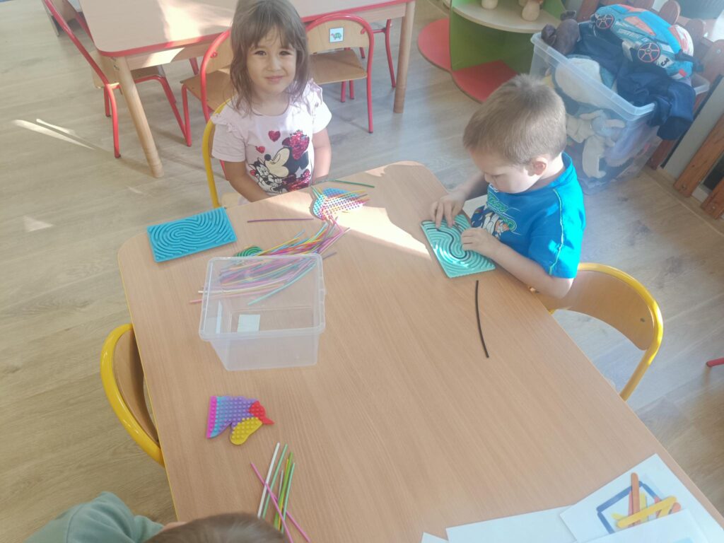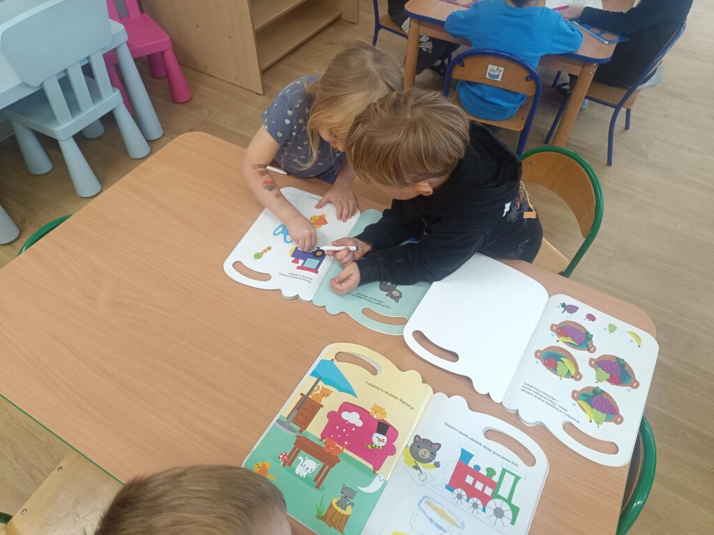 ,,Pracowite rączki w zabawie” to innowacja pedagogiczna realizowana w grupie ,,Żabki” raz w tygodniu. Ma na celu wzbogacenie programu nauczania o nowe treści, formy i metody służące rozwijaniu motoryki małej, uwzględniając cały rozwój dziecka w wieku przedszkolnym. Usprawnianie także motoryki dużej w zakresie sprawności, koordynacji, równowagi. Innowacja jest reakcją na aktualne trudności i wyzwania rozwojowe dzieci. Aktywności, które są proponowane w ramach innowacji zakładają doświadczanie przez dzieci pozytywnych, motywujących je przeżyć, a także odnoszenie indywidualnych sukcesów. Dzieci ćwiczą opanowywane umiejętności, na różne sposoby, w różnorodnych aktywnościach, w zmiennych warunkach tak, aby mogły one ulec generalizacji. Zajęcia prowadzone są w radosnej i pełnej życzliwości atmosferze.