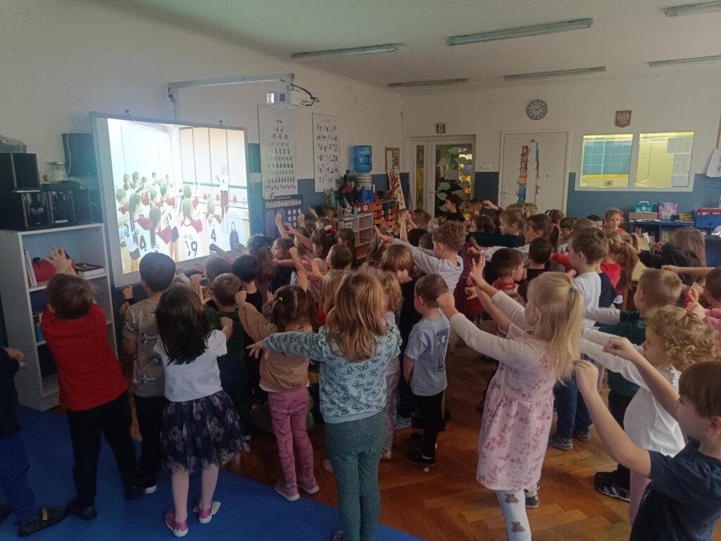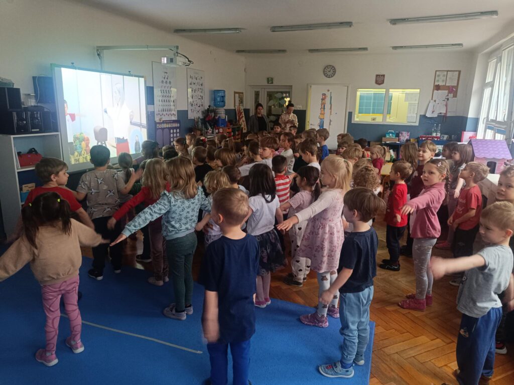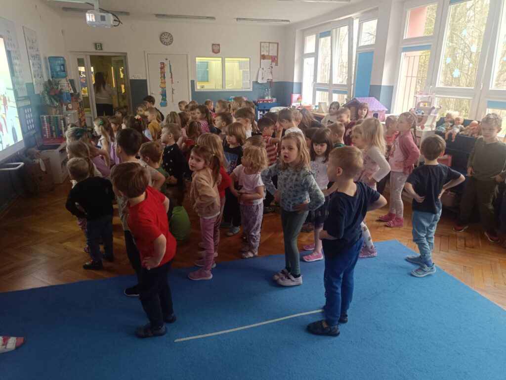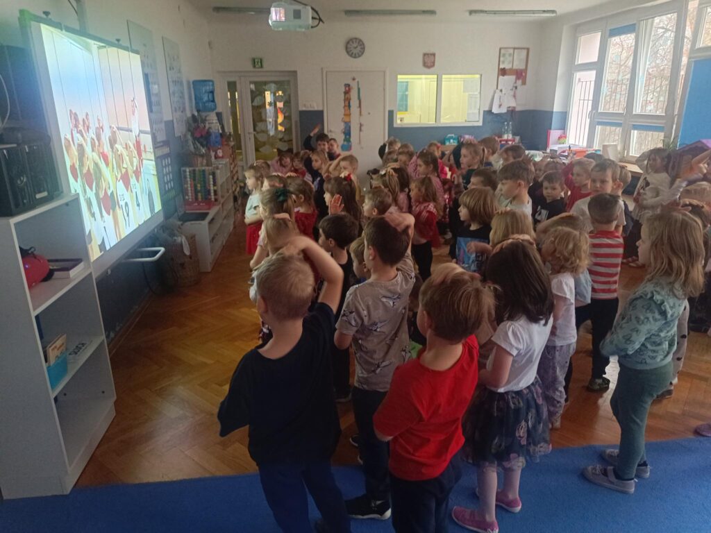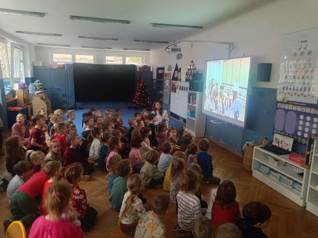 W czwartek, 18 grudnia dzieci z grupy: Żabek, Biedronek, Zajączków i Sów wzięły udział w integracyjnym WF-ie. W sali Biedronek na tablicy multimedialnej połączyliśmy się on-line z Fabryką Świętego Mikołaja. Przez pół godziny dzieci z całej Polski wspólnie ćwiczyły, bawiły się i odkrywały tajemnice Świątecznej Fabryki. Na koniec czekały nas tańce i świąteczne bajki.