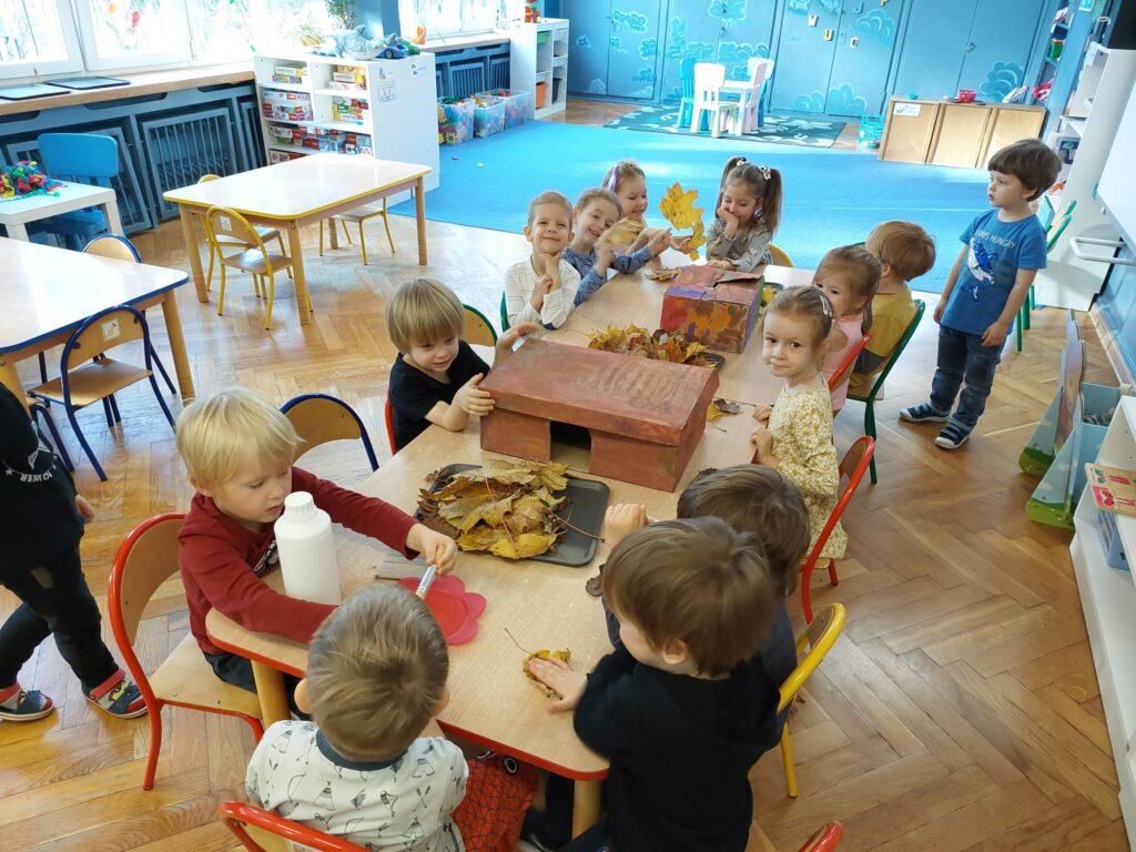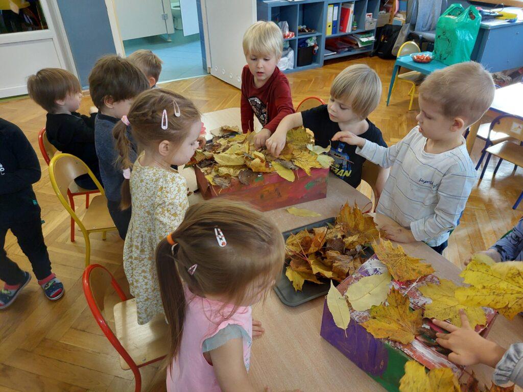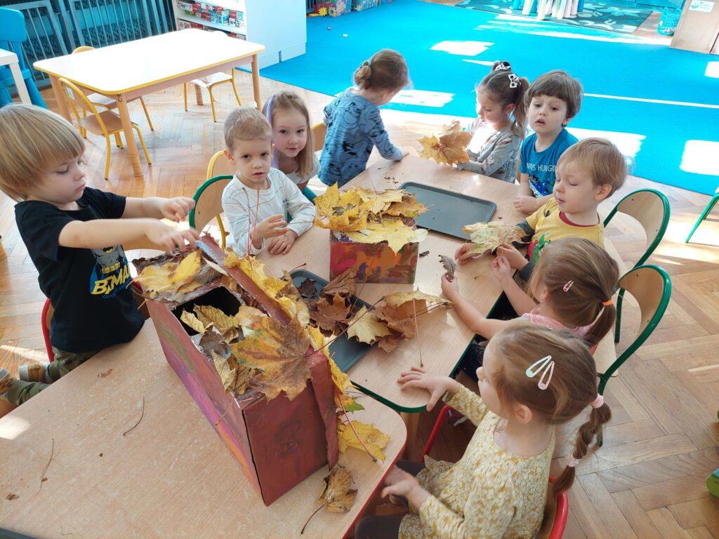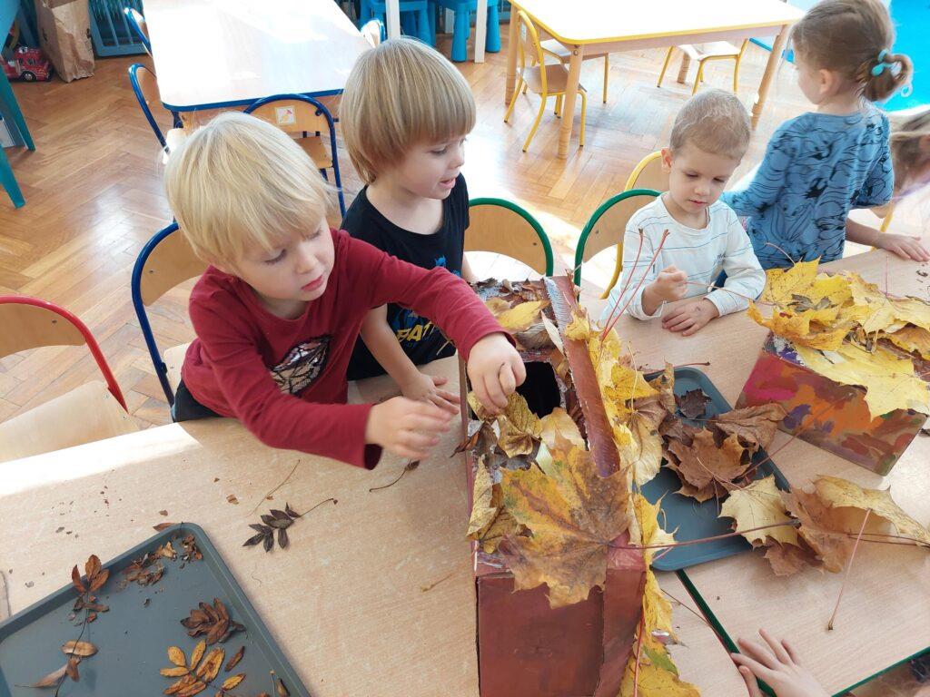 Dzieci z grupy Biedronek wykonały kolejne zadanie projektowe pt. „Jeżowy domek”. Przedszkolaki z dużym zaangażowaniem przystąpiły do zadania. Najpierw pomalowały farbami kartony, a następnie ozdobiły je jesiennymi liśćmi. Powstały przepiękny domki, w których niejeden jeż z chęcią by zamieszkał w zimowe dni ?
