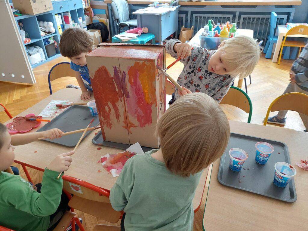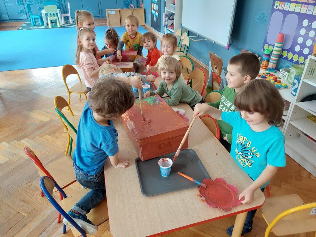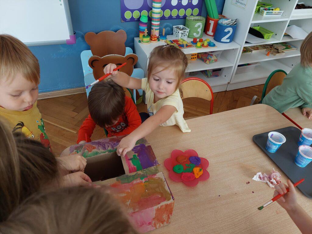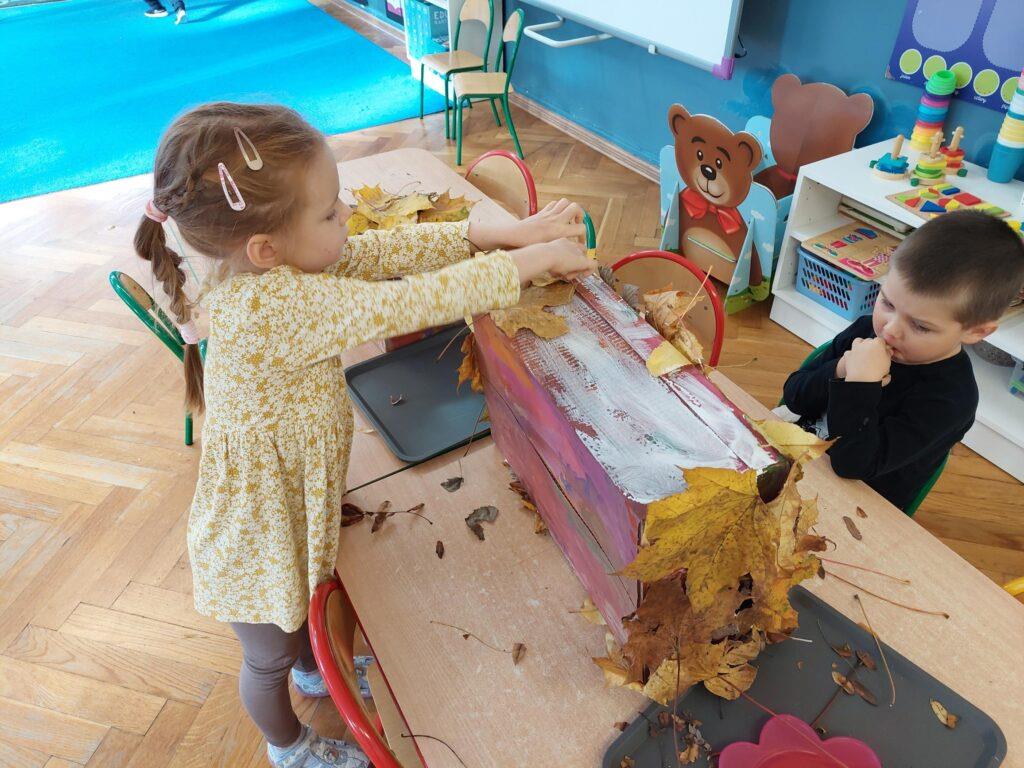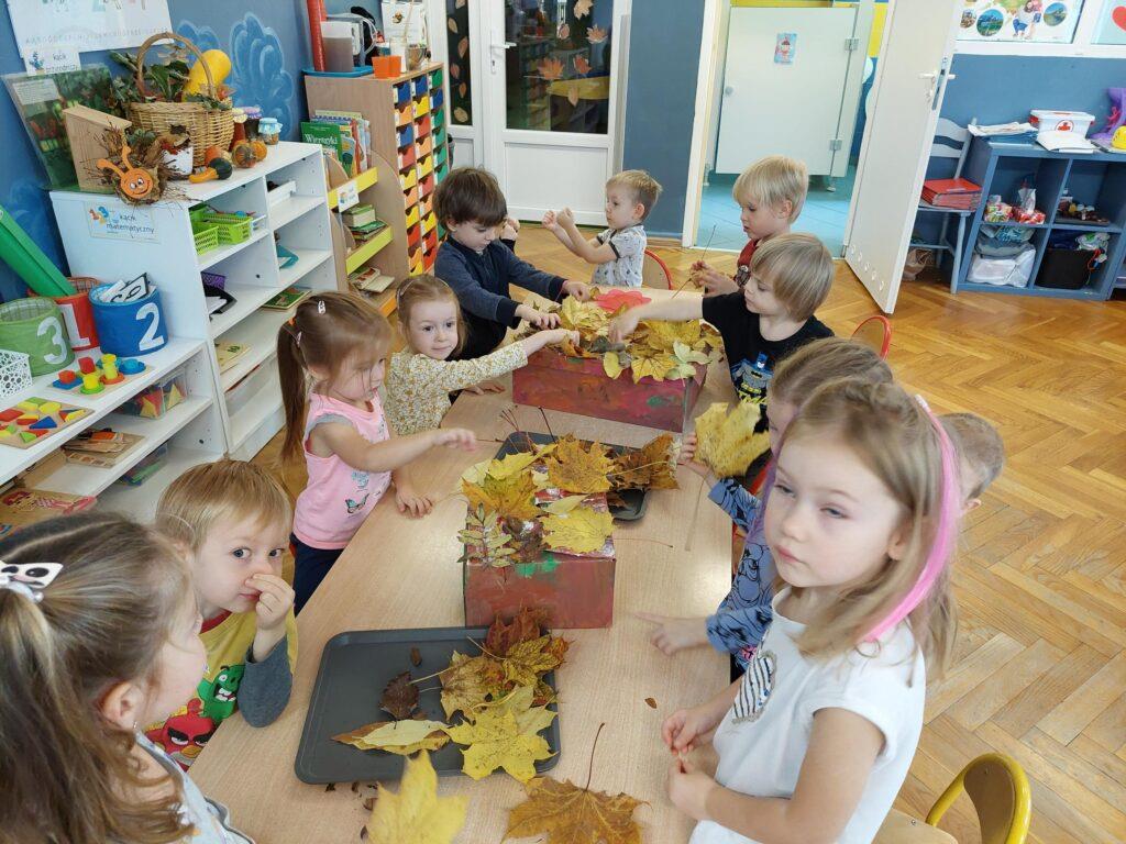 Dzieci z grupy Biedronek wykonały kolejne zadanie projektowe pt. „Jeżowy domek”. Przedszkolaki z dużym zaangażowaniem przystąpiły do zadania. Najpierw pomalowały farbami kartony, a następnie ozdobiły je jesiennymi liśćmi. Powstały przepiękny domki, w których niejeden jeż z chęcią by zamieszkał w zimowe dni ?