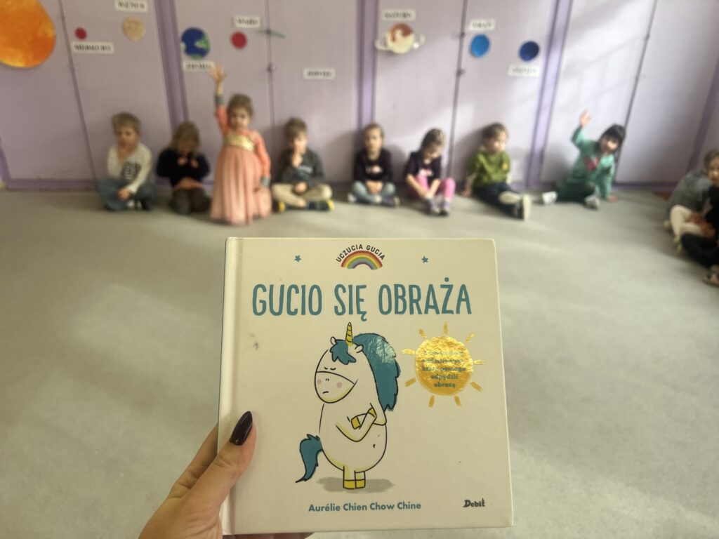 W kolejnej części Kolorowych Uczuć Gucia, tytułowy Gucio obraża się. Zajączki podzieliły się ze sobą sytuacjami, w jakich to one się obrażają. Razem podjęliśmy dyskusję o tym, w jaki sposób lepiej byłoby reagować na dane sytuacje. Poznaliśmy oddechowy sposób Gucia na odganianie chmur obrazy i go przetestowaliśmy.