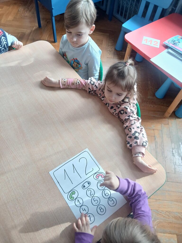 Kolejne bajki, które wysłuchaliśmy były o lęku przed ciemnością i bezpieczeństwie w domu. Dzieci wysłuchały bajki o dzielnym piesku Bąbelku, który pokonał swój strach i przestał bać się ciemności. Drugą bajką, była bajka o Julce, która musiała zmierzyć się z niełatwym zadaniem. Po wysłuchaniu bajki uczyliśmy się zapamiętać numer alarmowy 112.