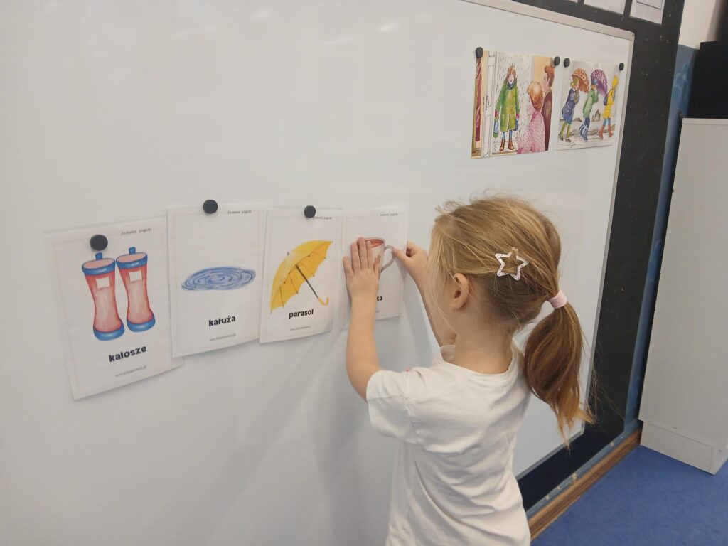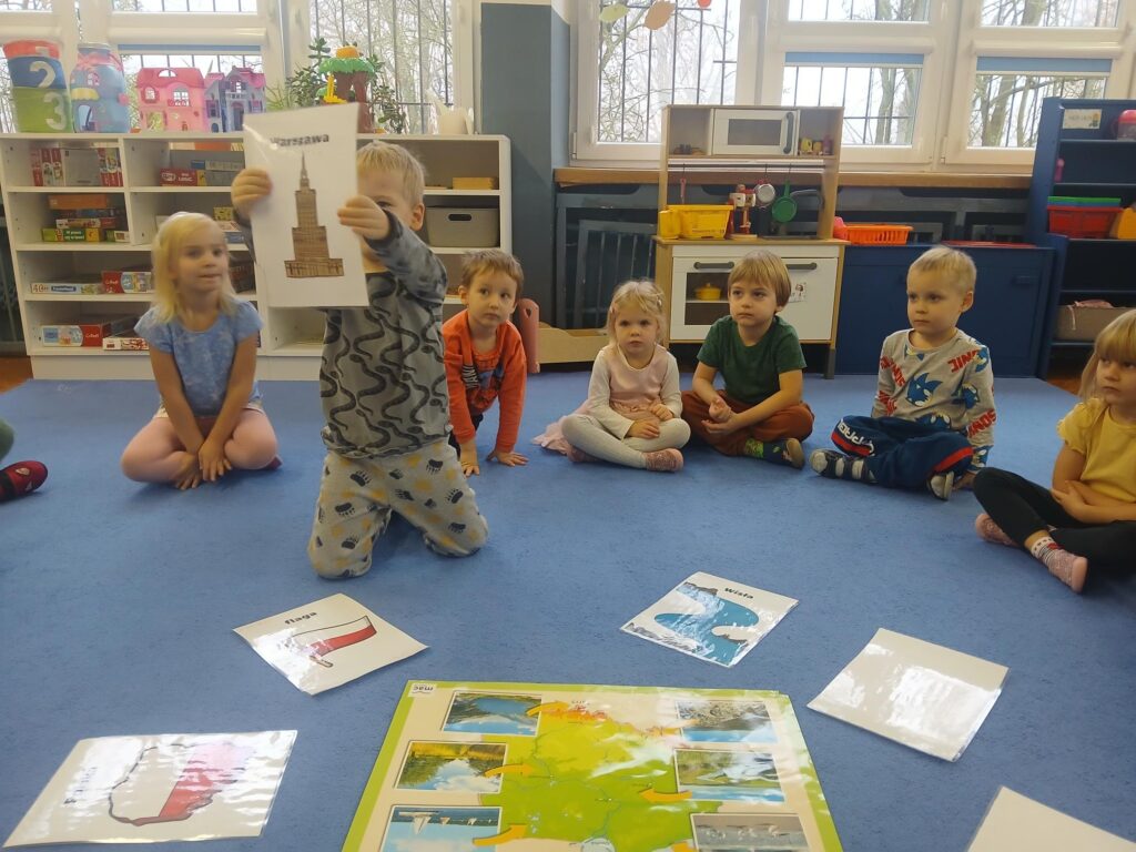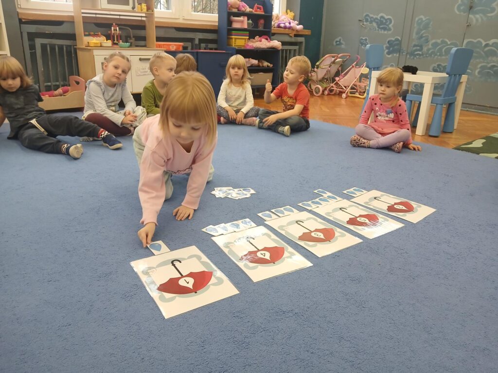 W listopadzie rozmawialiśmy o jesiennej pogodzie, o tym jak się ubrać, gdy pada deszcz. Bawiliśmy się przy deszczowych piosenkach i rozwiązywaliśmy matematyczne zadania. Porozmawialiśmy też o Polsce, o symbolach, które wyróżniają nasz kraj. Poruszyliśmy również temat urządzeń elektrycznych, z których korzystamy na co dzień, a także patrzyliśmy jak się zmieniały się te sprzęty na przestrzeni lat.