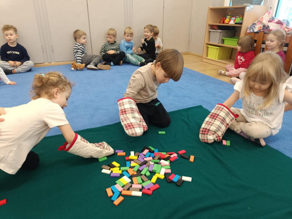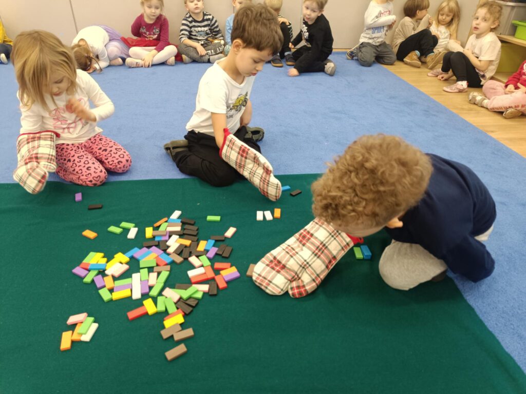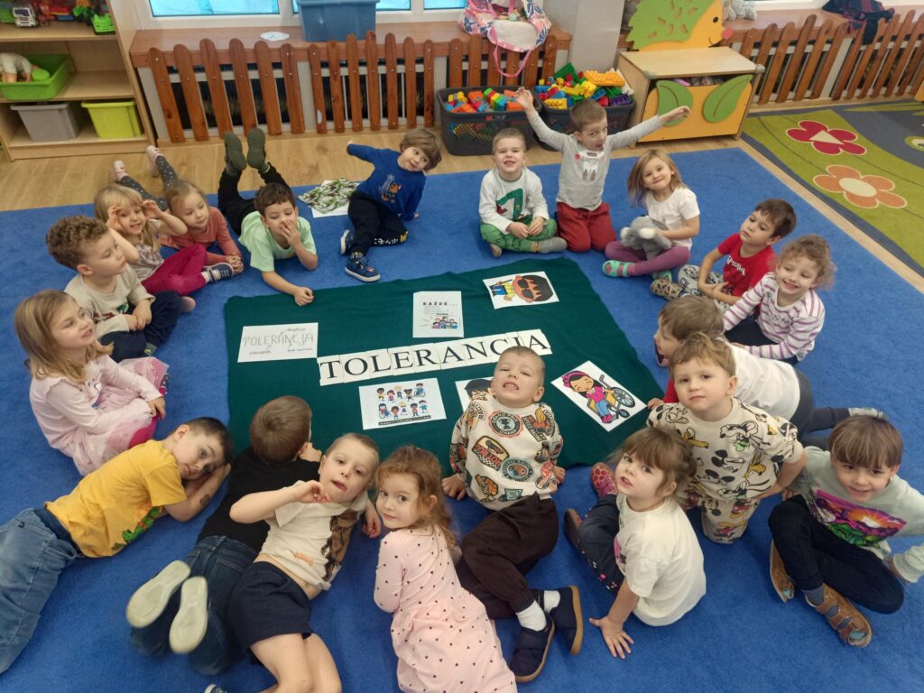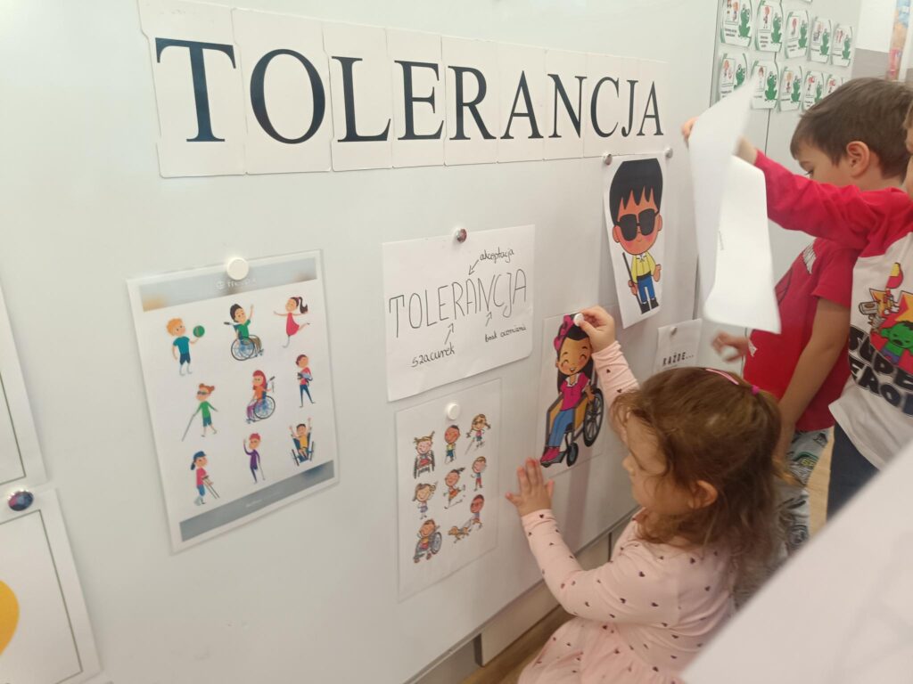 3 grudnia obchodziliśmy Dzień Osoby Niepełnosprawnej. W tym dniu dzieci uczestniczyły w specjalnych zajęciach, których celem jest uczenie empatii, rozwijanie poczucia akceptacji i chęci niesienia pomocy niepełnosprawnym kolegom poprzez polisensoryczne doświadczanie inności na sobie. Dzieci w formie zabawy doświadczały jak trudno na co dzień radzić sobie, gdy nie widzimy, nie słyszymy lub kiedy mamy trudności w poruszaniu się. Dzieliły się swoimi spostrzeżeniami, a przede wszystkim czerpały radość i satysfakcję ze wspólnej zabawy. To były wyjątkowe doświadczenia. Dzięki nim przedszkolaki wiedzą, z jakimi trudnościami na co dzień borykają się osoby z niepełnosprawnościami, jak ważna jest ich akceptacja i tolerancja. Jaką potrzebną rolę w ich życiu pełni pies przewodnik, język migowy czy pismo Braille’a. Taka wiedza uczy dzieci empatii, wrażliwości i zrozumienia drugiego człowieka.