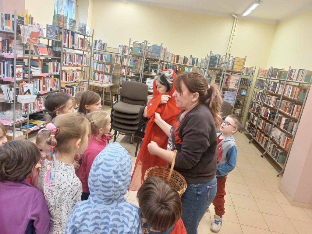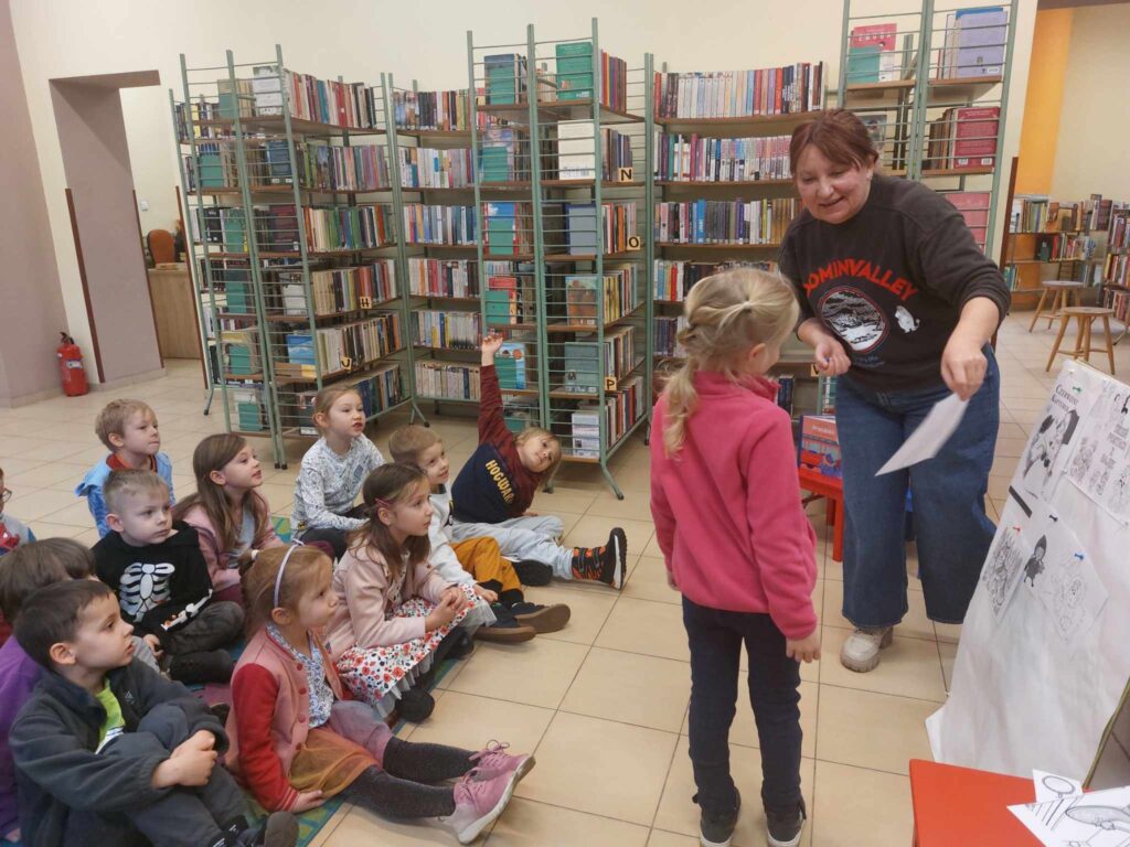 Z okazji Miedzynarodowego Dnia Postaci z Bajek udaliśmy się z wizytą do naszej Biblioteki. Na miejscu mieliśmy okazję wysłuchać framgentów znanych wszystkim bajek i baśni. Pani Małgosia z biblioteki przygotowała dla nas wiele ciekawych zadań i zabaw. Bawiliśmy sie w kole, wykorzystując zaczarowane jabłko, dopasowywaliśmy atrybuty do różnych bajek, odgadywaliśmy ich tytuły, bawiliśmy się w Kopciuszka rozdzielając groch od kaszy. Szukaliśmy ukrytych w Bibliotece bajkowych skarbów. Ze wszystkimi zadaniami Sowy poradziły sobie doskonale. Bardzo dziekujemy za spotkanie. Małgorzata Reksulak Małgorzata Witkowska