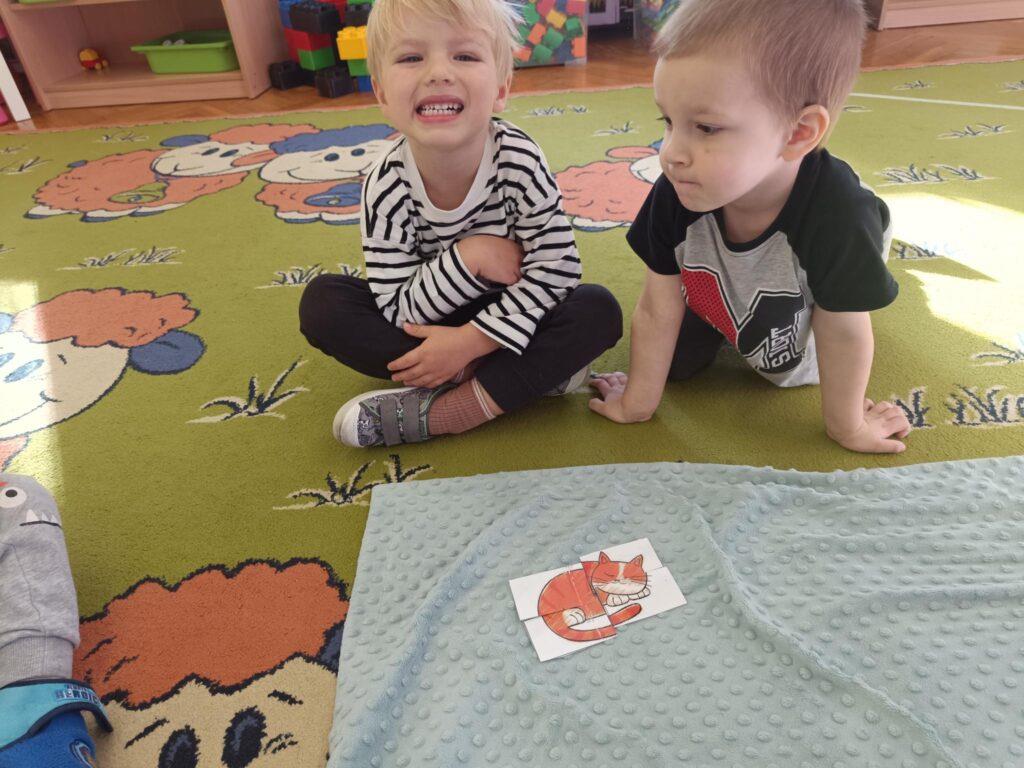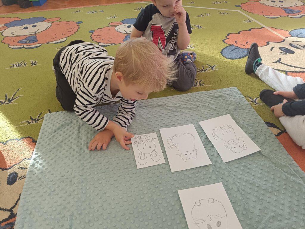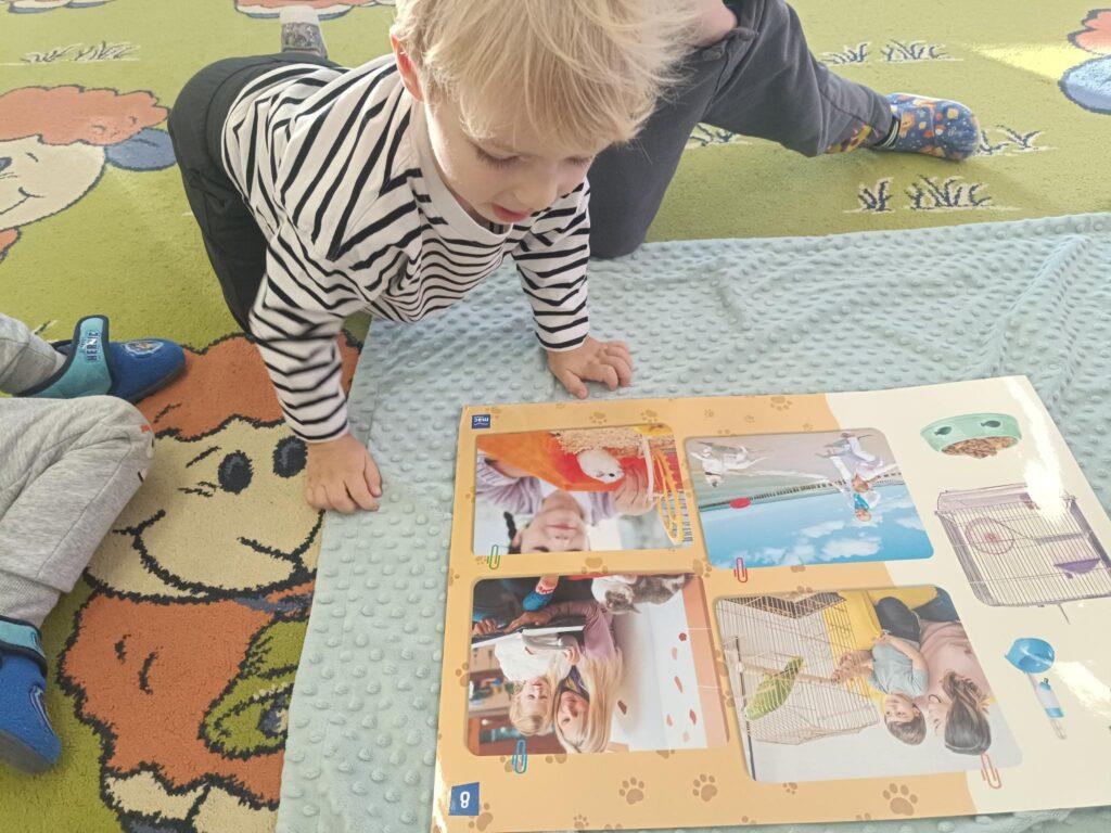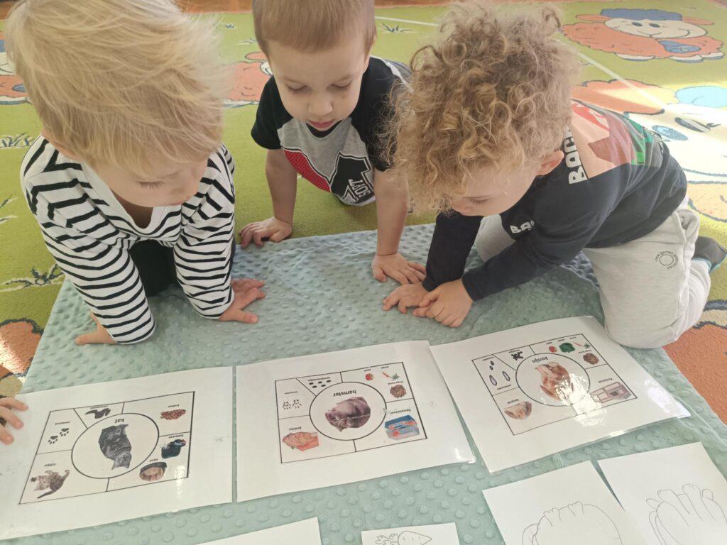 do weterynarza na szczepienia, bawić się, chodzić na spacery. Opowiadaliśmy o swoich zwierzątkach domowych. Rozwiązywaliśmy zagadki z nimi związane, rozwijaliśmy wrażliwość słuchową w zabawach związanych z rozpoznawaniem głosów zwierząt i naśladowaniem ich.