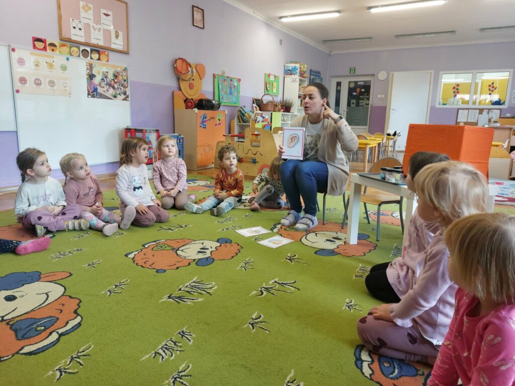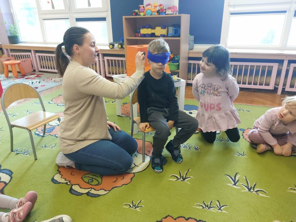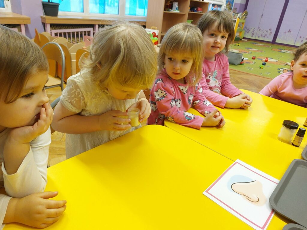 5 zmysłów mam i wszystkie znam! – słowa tej piosenki towarzyszyły nam w ostatnich tygodniach, podczas których nasze najmłodsze przedszkolaki uczestniczyły w zabawach rozwijających zmysły. Misie dowiedziały się, że zmysły to takie nasze okno na świat – dzięki nim go poznajemy: widzimy, słyszymy, czujemy, smakujemy i wąchamy. Podczas zajęć rozwiązywały zagadki słuchowe, zagadki dotykowe oraz węchowe. Było dużo dobrej zabawy.