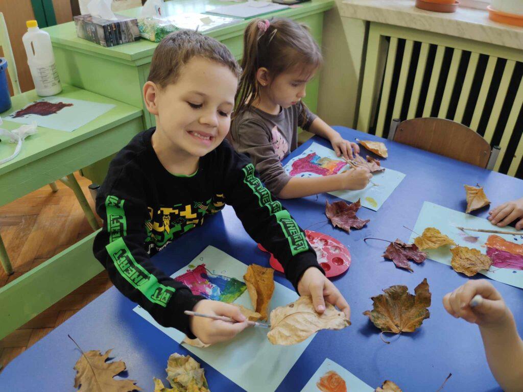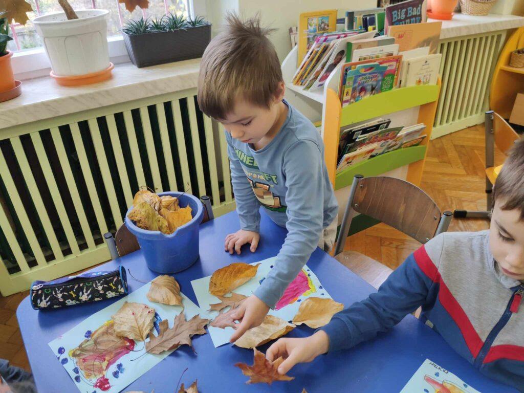 Dzieci z grupy Wiewiórek wykonały pierwsze zadanie z projektu ,,Jestem małym przyjacielem przyrody”. Powstały nam piękne jesienne kompozycje z jesiennych liści 🙂