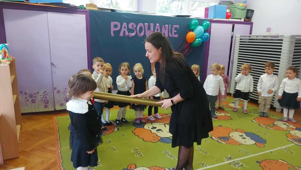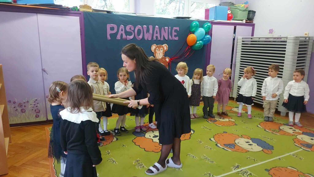 Pasowanie na przedszkolaka to wyjątkowa uroczystość, która w grupie Misiów odbyła się 21 października. W tym dniu Misie oficjalnie stały się przedszkolakami. Uroczystość rozpoczęła się od krótkiej części artystycznej, w której najmłodsze przedszkolaki zaprezentowały swoje umiejętności, dając tym samym dowód na to, że potrafią już naprawdę dużo. Dzieci obiecały: zgodnie bawić się w przedszkolu, przychodzić każdego dnia z uśmiechem, słuchać pani, dbać o zabawki oraz zjadać wszystko z talerzyka.