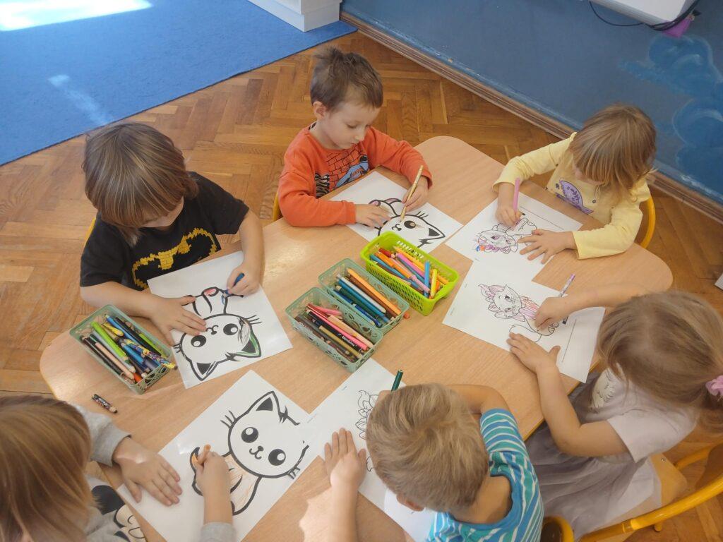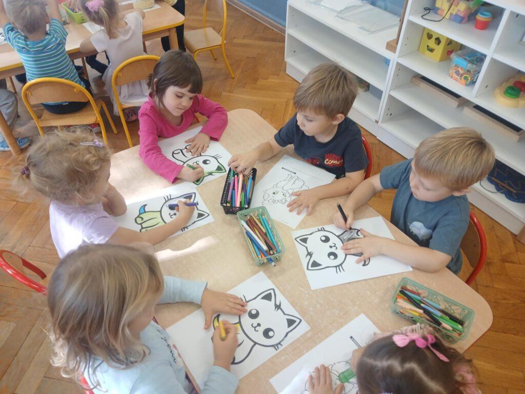 Biedronki wysłuchały bajki pt: ,,Kocia złośnica idzie do przedszkola” i pokolorowały postać małej kotki oraz bajkę o szarym, nieśmiałym słowiku, który w rzeczywistości okazał się odważny.